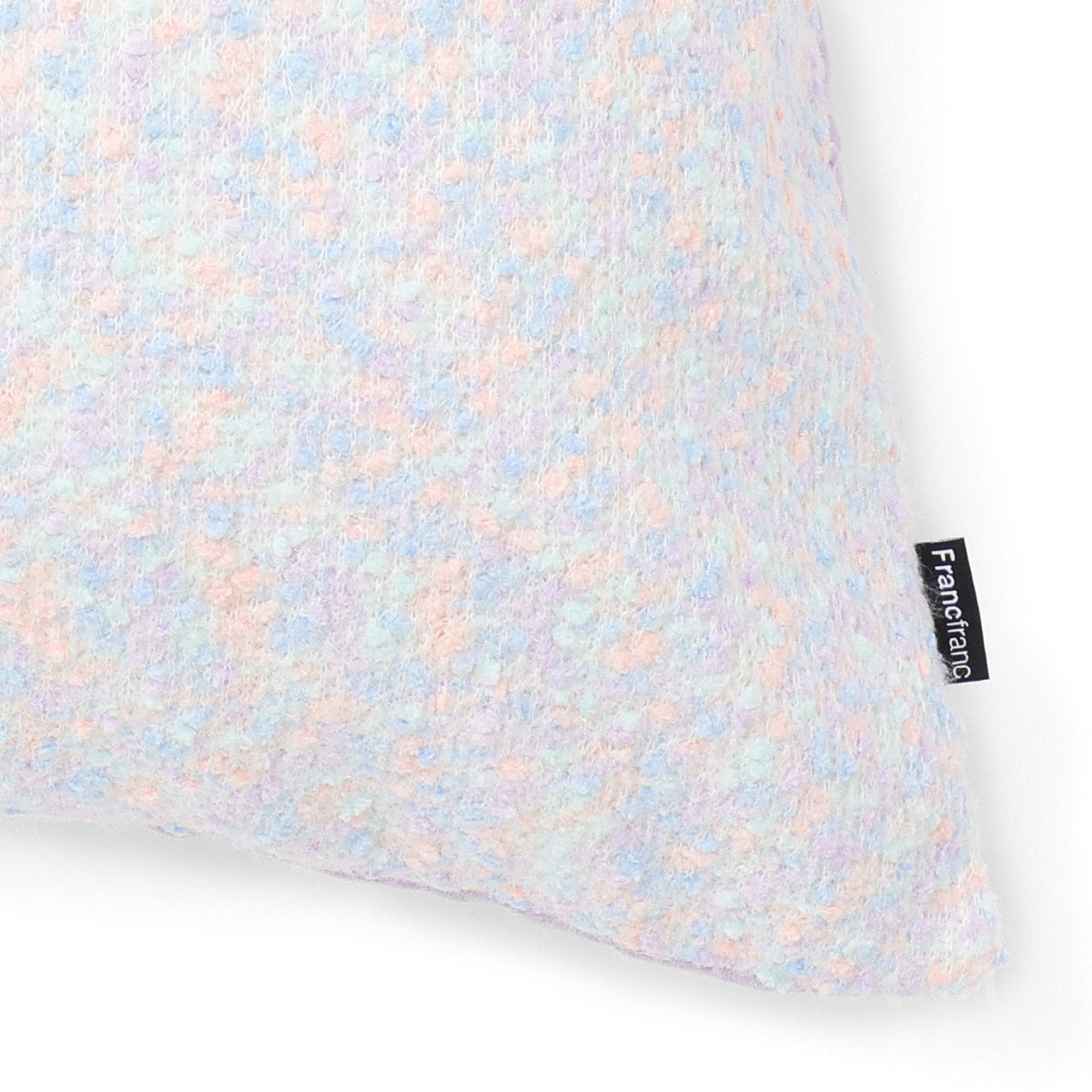 カラフルなネップ状の糸を織り交ぜ、表面に豊かなテクスチャー感を持たせたクッションカバーです。ミルキーカラーを採用することで、柔らかく温かみのある印象に仕上がり、どこか優しい雰囲気が漂います。