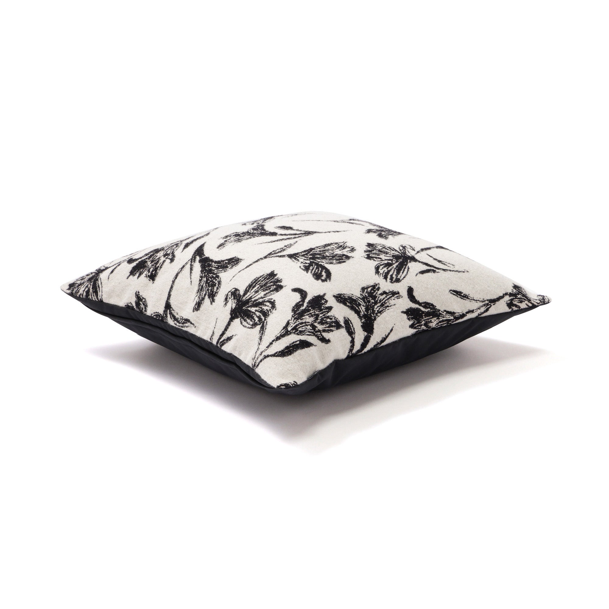 花をモチーフに、ジャガード織で柄を表現したクッションカバーです。やわらかな風合いの生地と細やかなラインが調和し、ほどよい温かみと上品さを感じさせる仕上がりです。