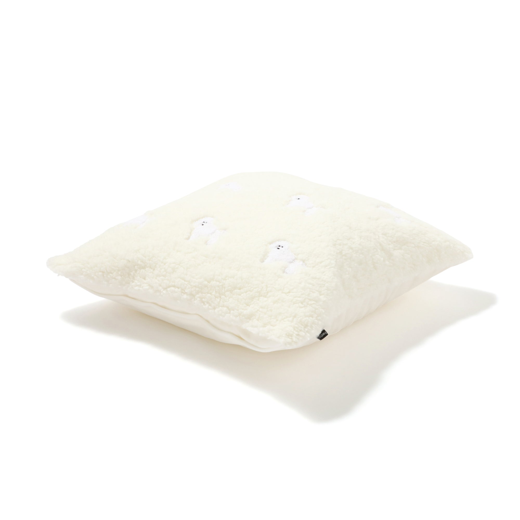 犬の刺繍を施した可愛らしいクッションカバーです。ふわふわのファー生地と犬の刺繍がマッチして絶妙な大人かわいさを演出します。