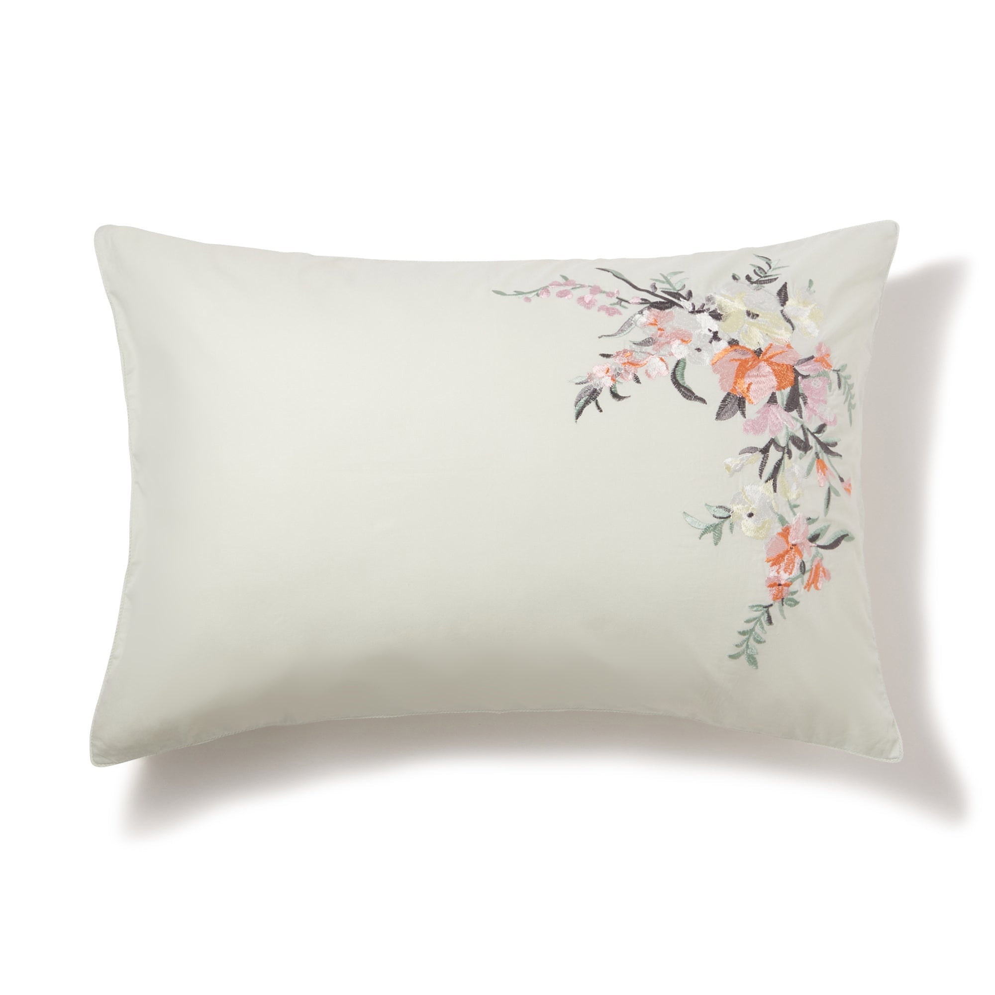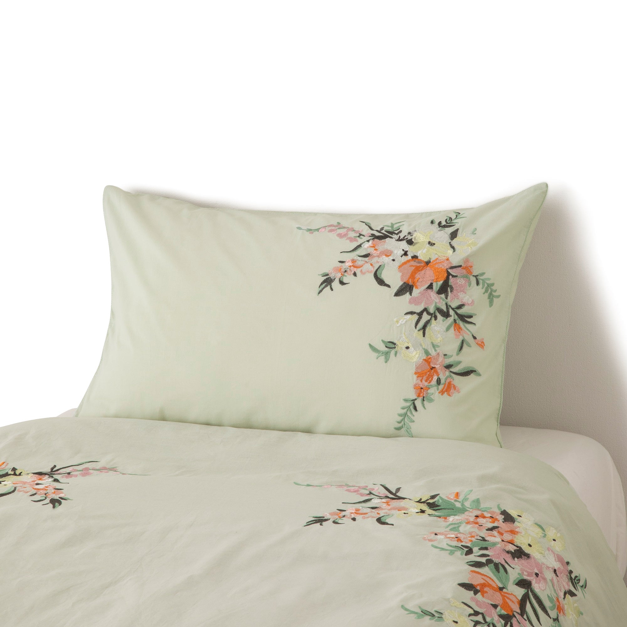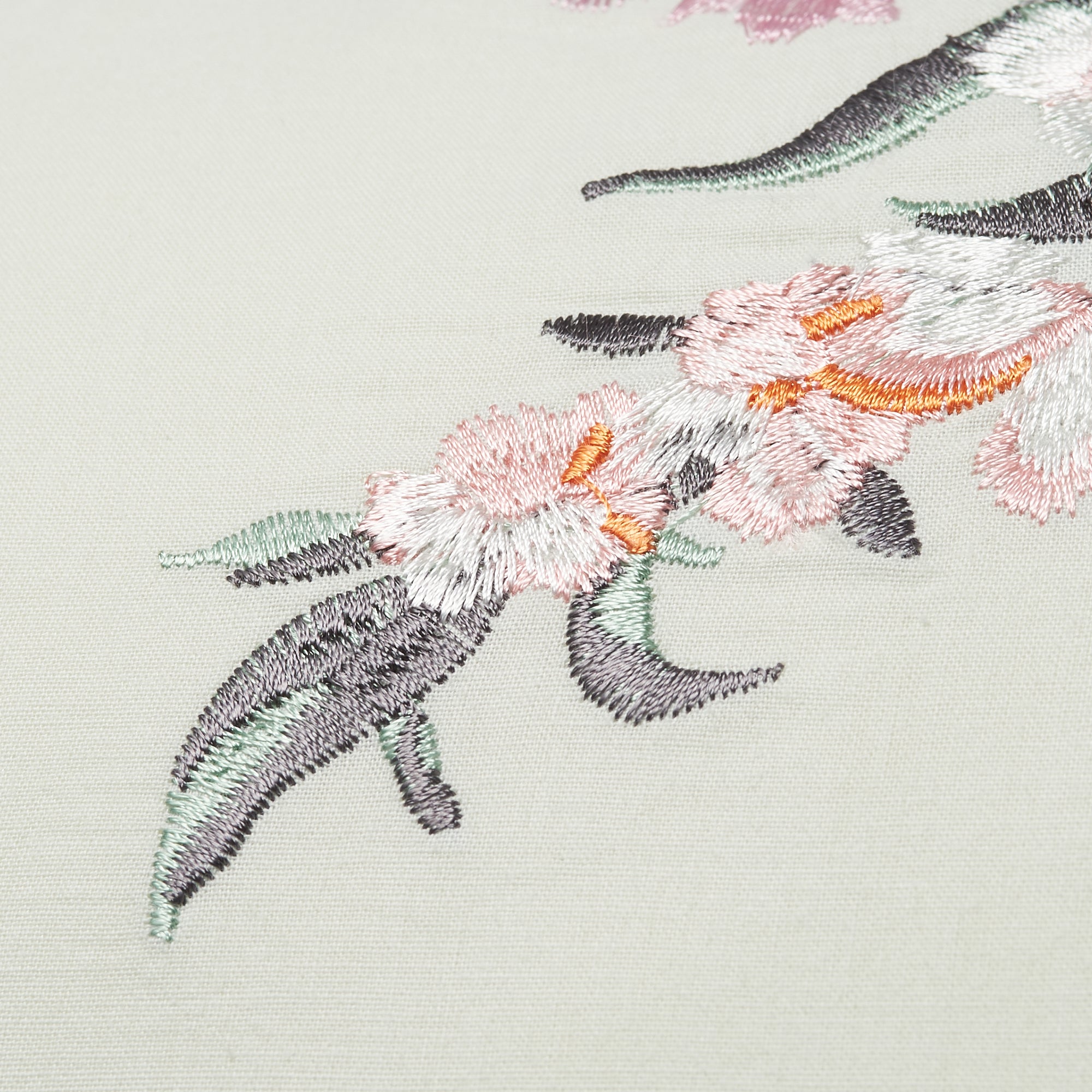 エレガントな花柄を刺繍で表現し、トレンドを取り入れた上品で華やかなまくらカバーです。密度の高い刺繍を施し高級感のある仕上がりです。ざっくりした生地感のため肌触りはマットな質感でさらっとしており、暖かくなる季節にぴったりです。ウッド系家具などと合わせて、スローやクッションカバーで差し色を入れるとコーディネートがまとまります。