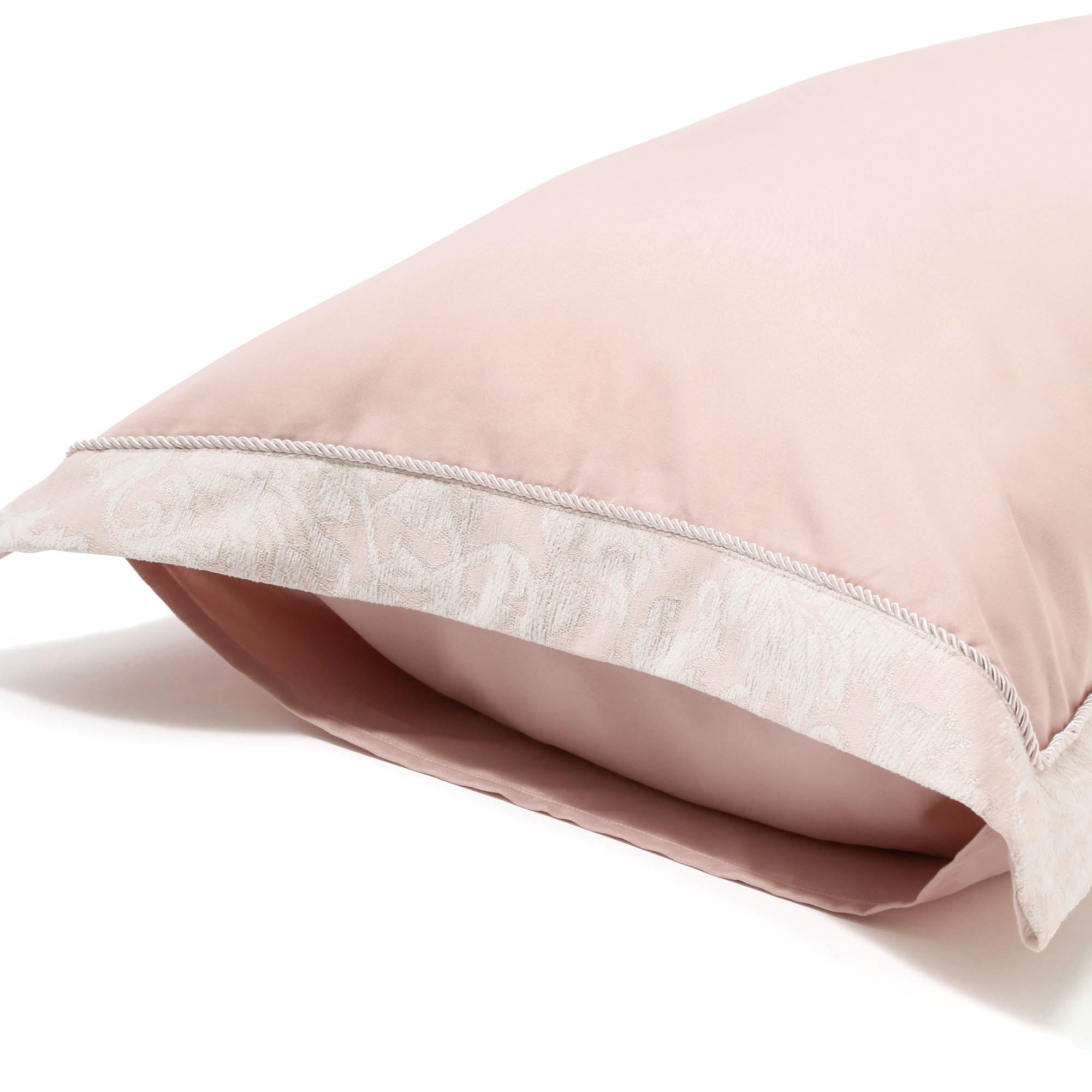 ジャガード織りでオーナメント柄をあしらった高級感のあるデザインのまくらカバーです。モール糸とメタリック糸を織り込んでいるので、生地に奥行き感が生まれ、高級感のある仕上がりです。素肌の当たる部分は滑らかな肌触りなので、心地よく眠りにつくことができます。