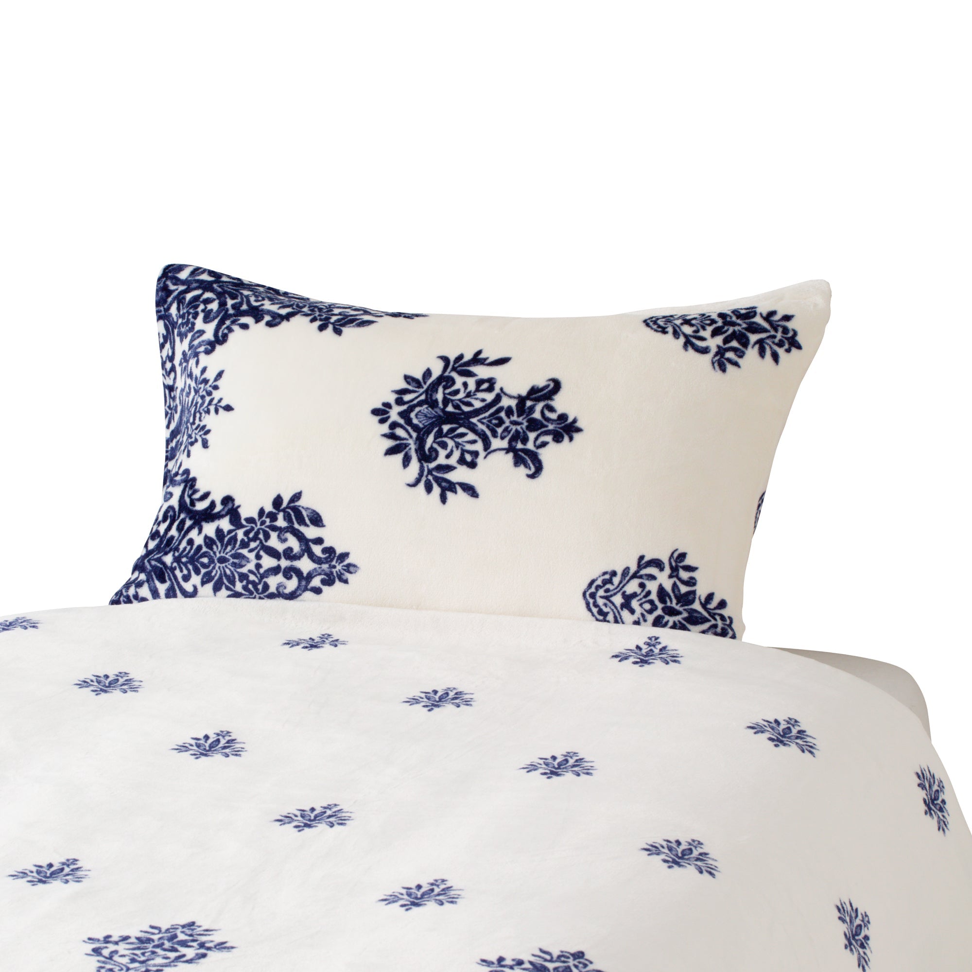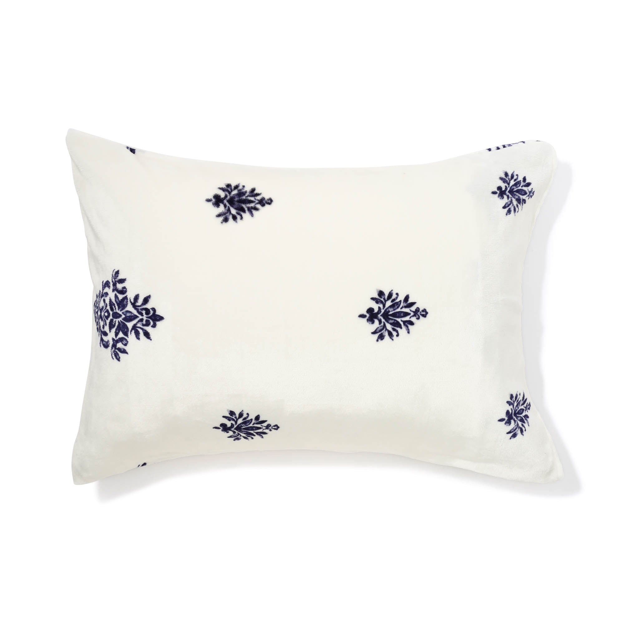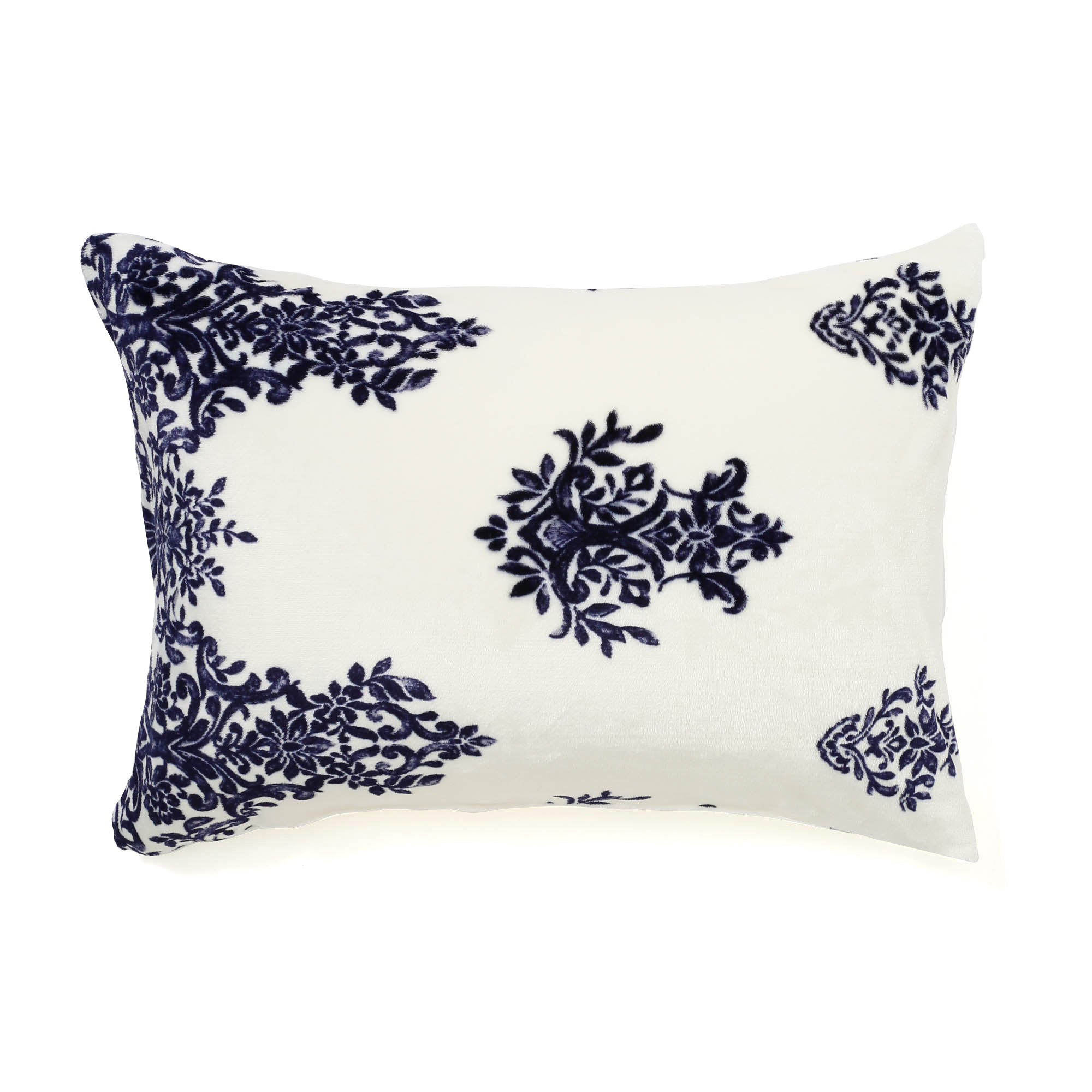 マイクロファイバー素材を使った、肌触り滑らかなあったか素材のまくらカバーです。滑らかな触り心地は、肌寒い季節にホッと癒される優しさです。大胆にプリントしたレース柄が女性らしいデザインで、お部屋の主役になりそうなアイテムです。