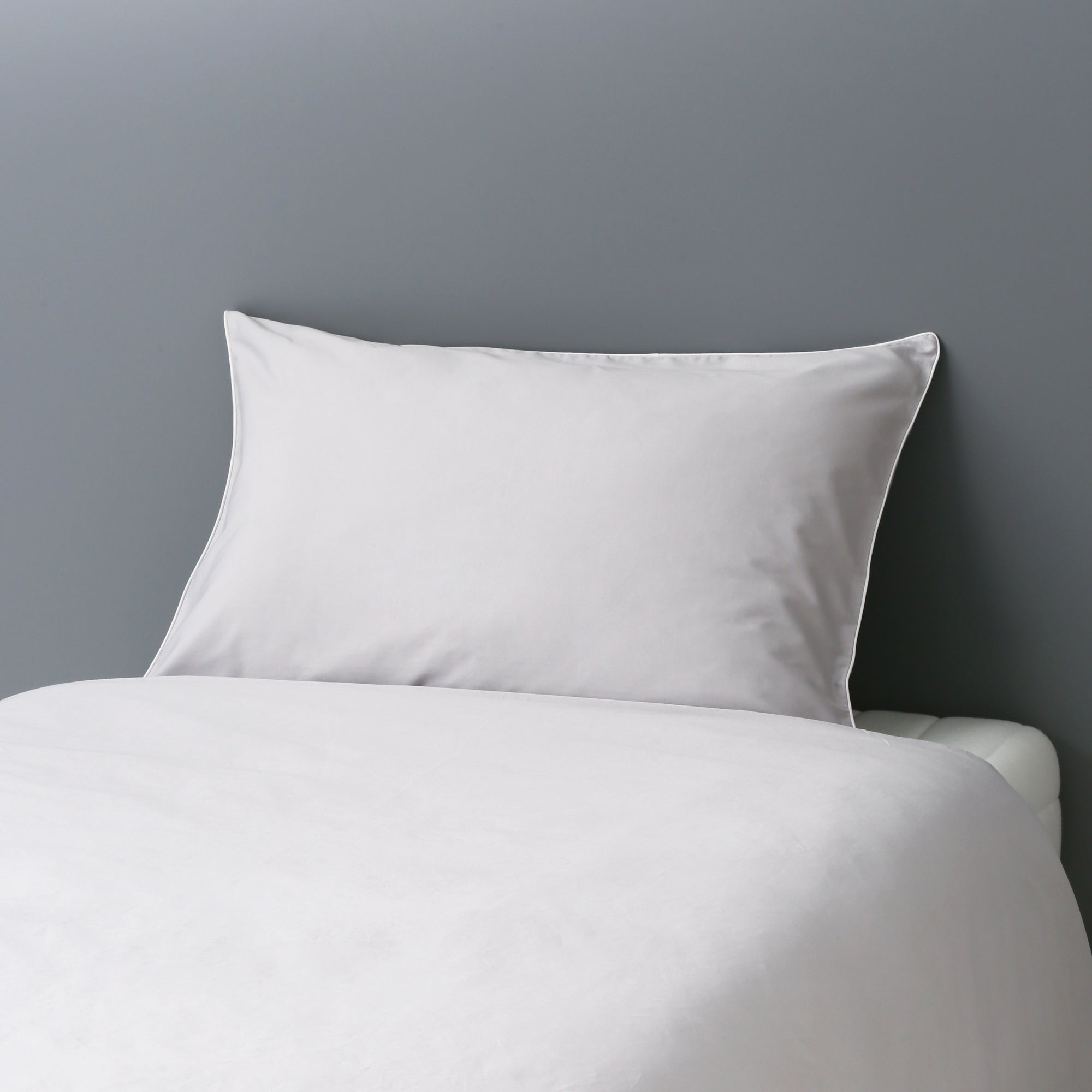 目の細かいコットンを贅沢に使用した、ホテルライクな清潔感のある寝装品です。通常はポリエステル素材が使われることの多いパイピング部分にも同素材のコットンを採用しました。柔らかな感触はコットン100%だからこそ感じられる特別なものです。シンプルだからこそ際立つ上品な光沢感がすっきりと洗練された上質な安らぎ空間を演出します。お手持ちの寝装品にも合わせやすいデザインです。