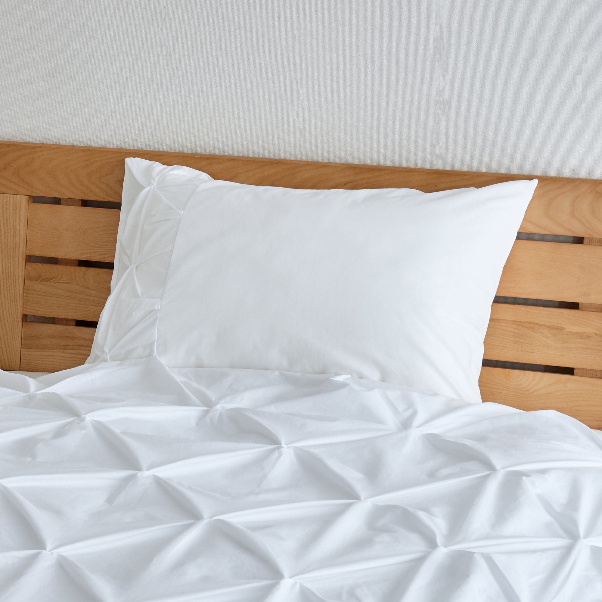縫製のテクニックをデザインに取り入れたまくらカバーです。単色無地の生地ですが、ダイヤ型にタックを入れ、立体的でモダンなデザインに仕上がりました。掛け布団カバーと合わせてお使いいただけます。