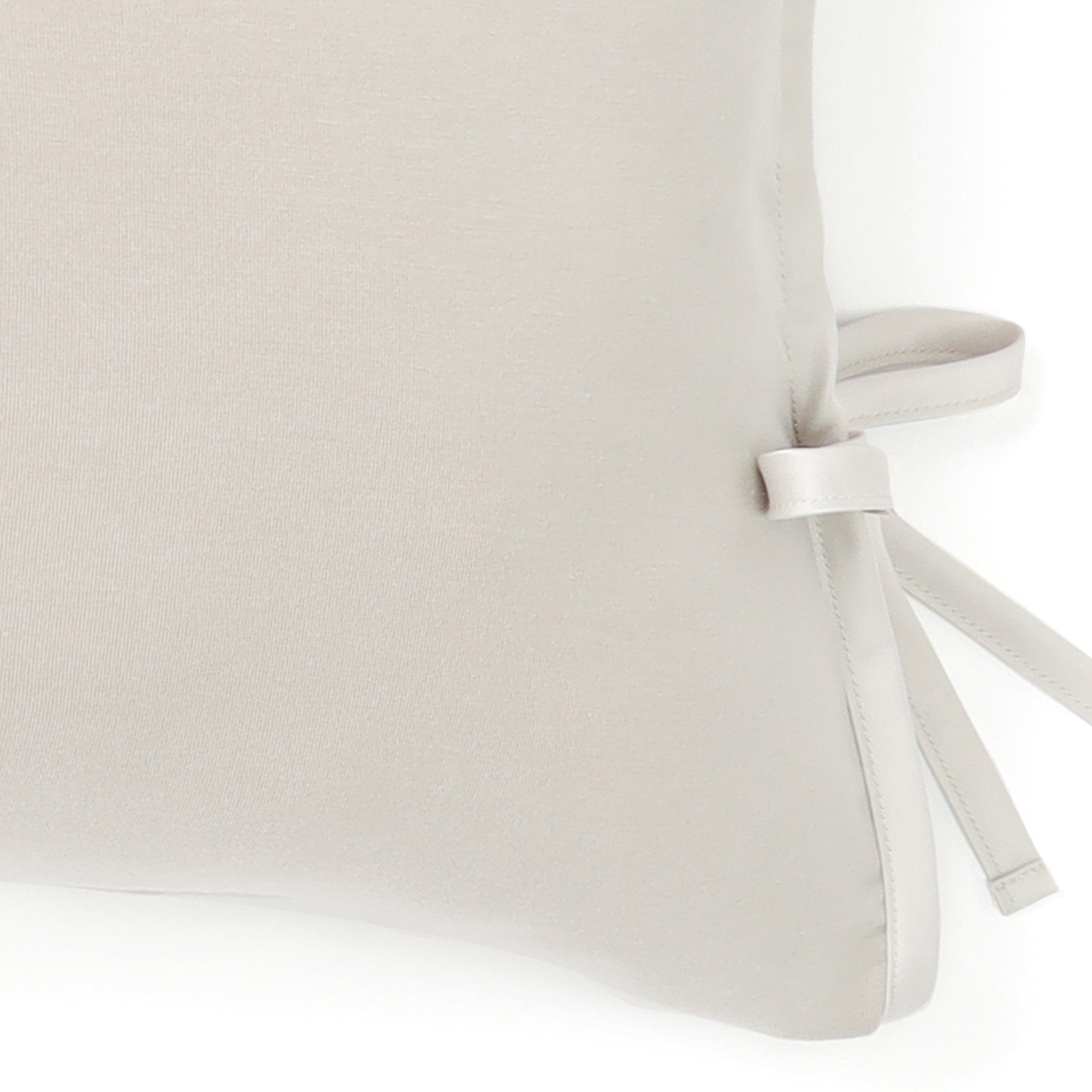 肌触りが心地よい、CICA加工を施したまくらカバーです。本体生地には吸放湿性に優れたレーヨンを使用しており、なめらかでやわらかな肌触りが魅力です。さらに、肌着にも使われるニット生地を採用しているため、素肌に直接触れても心地よく、一日を締めくくるリラックスタイムにぴったりです。さりげない光沢が美しいサテンリボンをあしらい、シンプルながらも上品なアクセントを加えました。※生地にツボクサから抽出された有効成分が配合された、CICA加工を施しています。ツボクサエキスは、優れた抗酸化作用、傷跡ケア、皮膚再生保護の効果があるといわれており、多くのクリームやバームなどの化粧品にも使用されています。