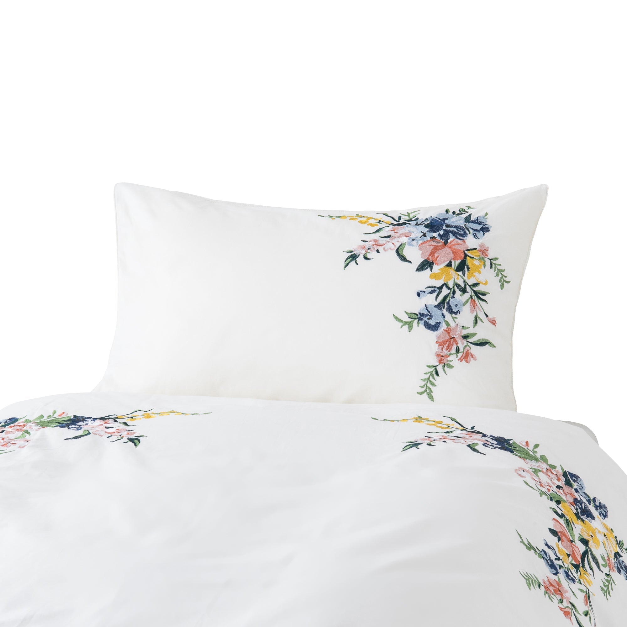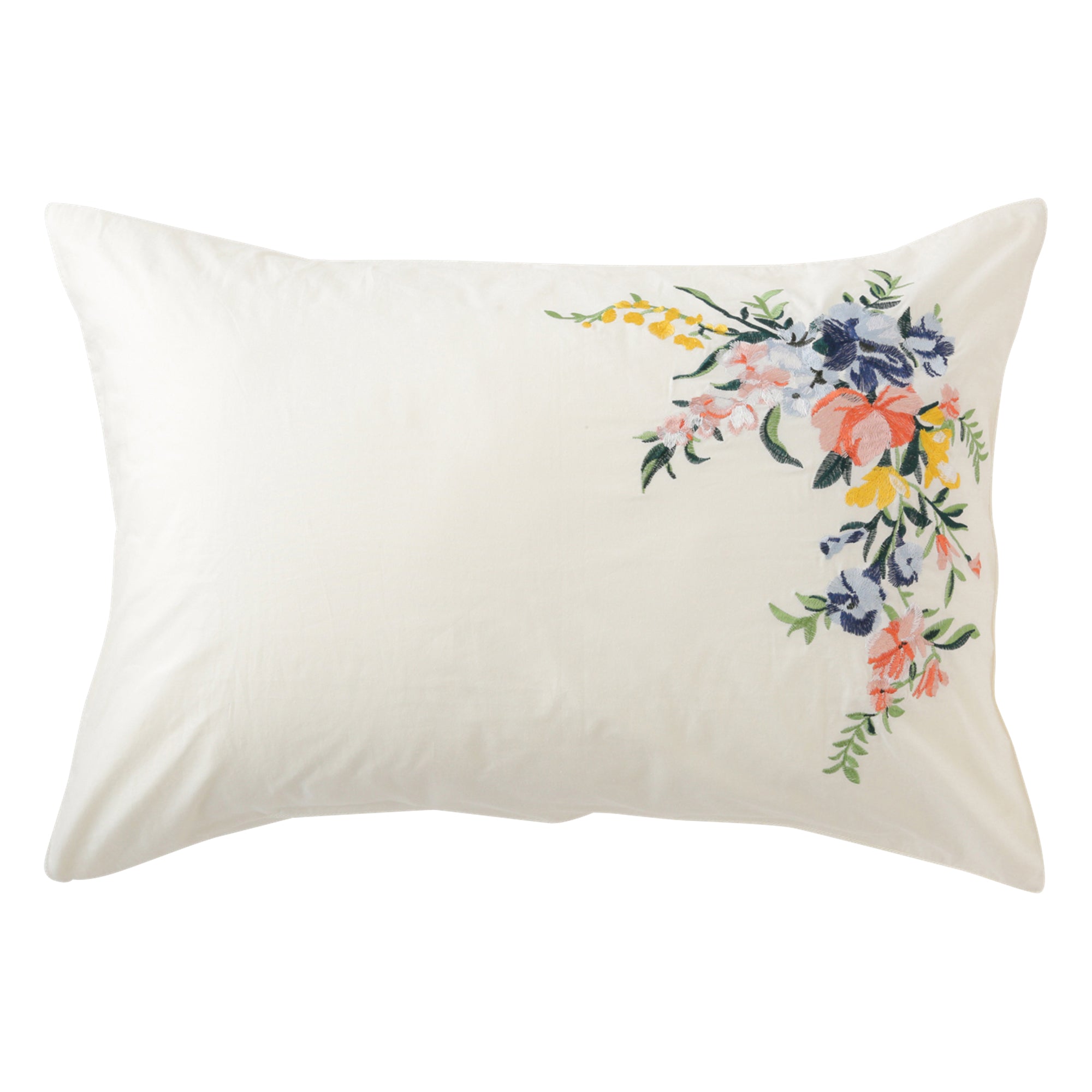 エレガントな花柄を刺繍で表現し、トレンドを取り入れた上品で華やかなまくらカバーです。密度の高い刺繍を施し高級感のある仕上がりです。ざっくりした生地感のため肌触りはマットな質感でさらっとしており、暖かくなる季節にぴったりです。ウッド系家具などと合わせて、スローやクッションカバーで差し色を入れるとコーディネートがまとまります。