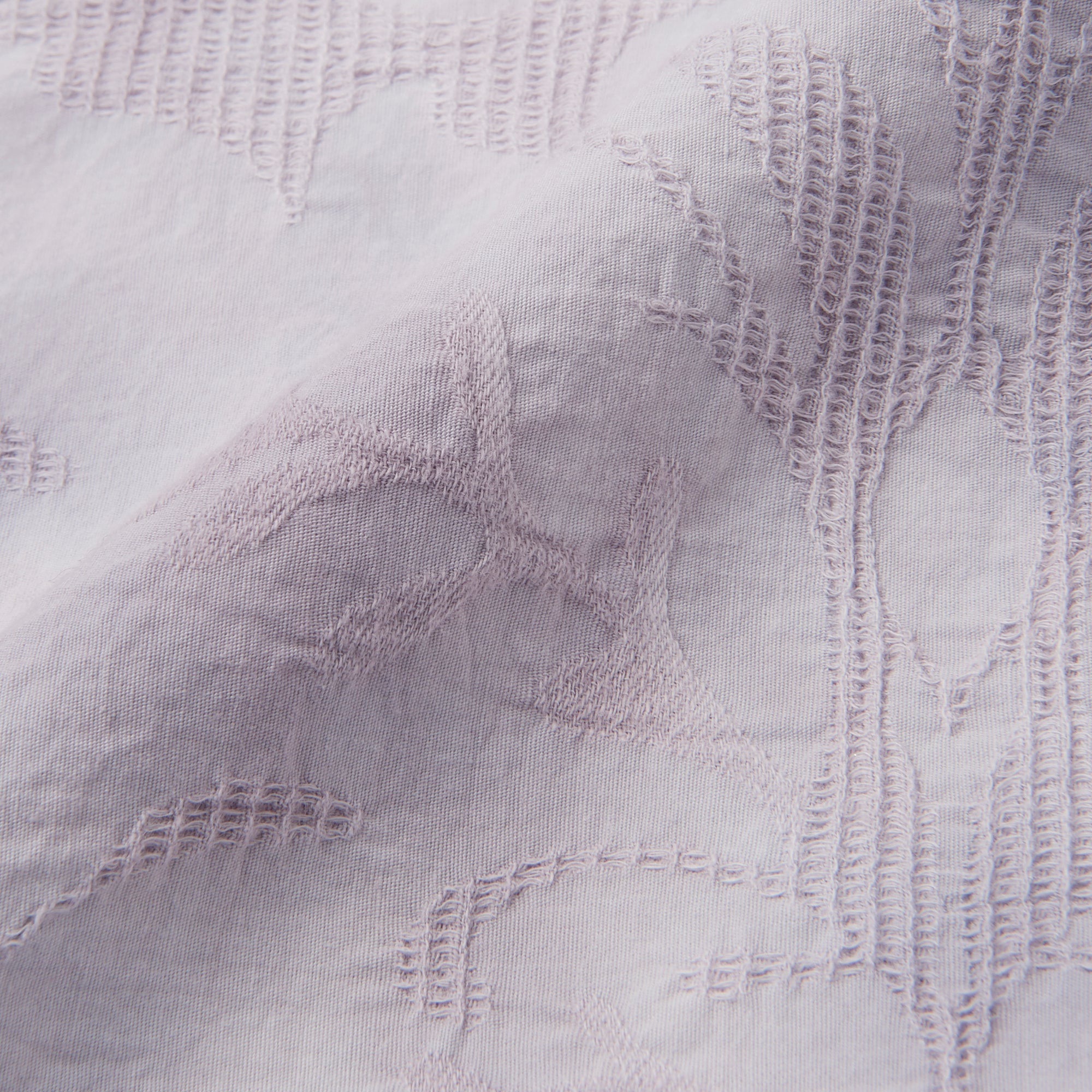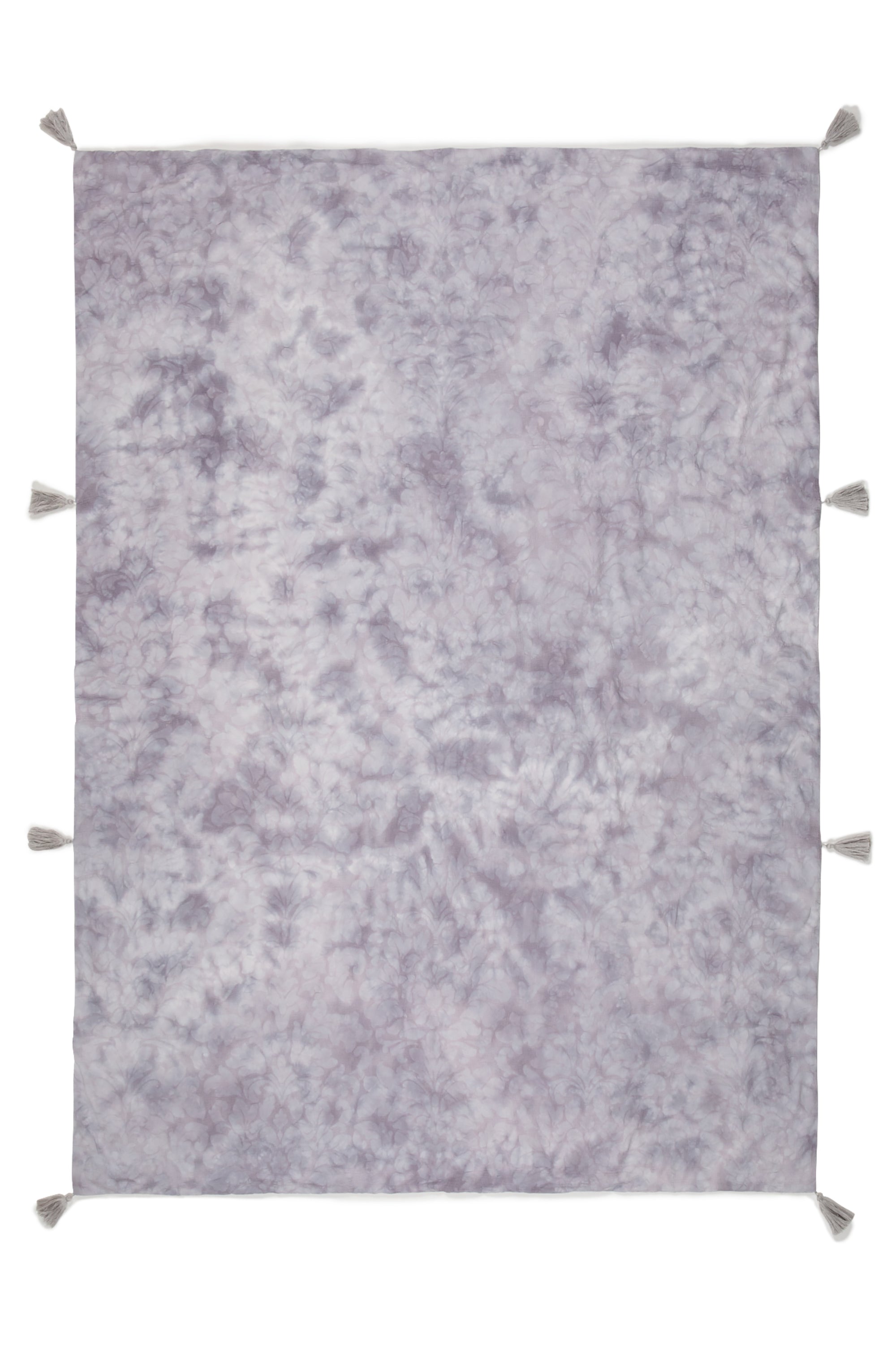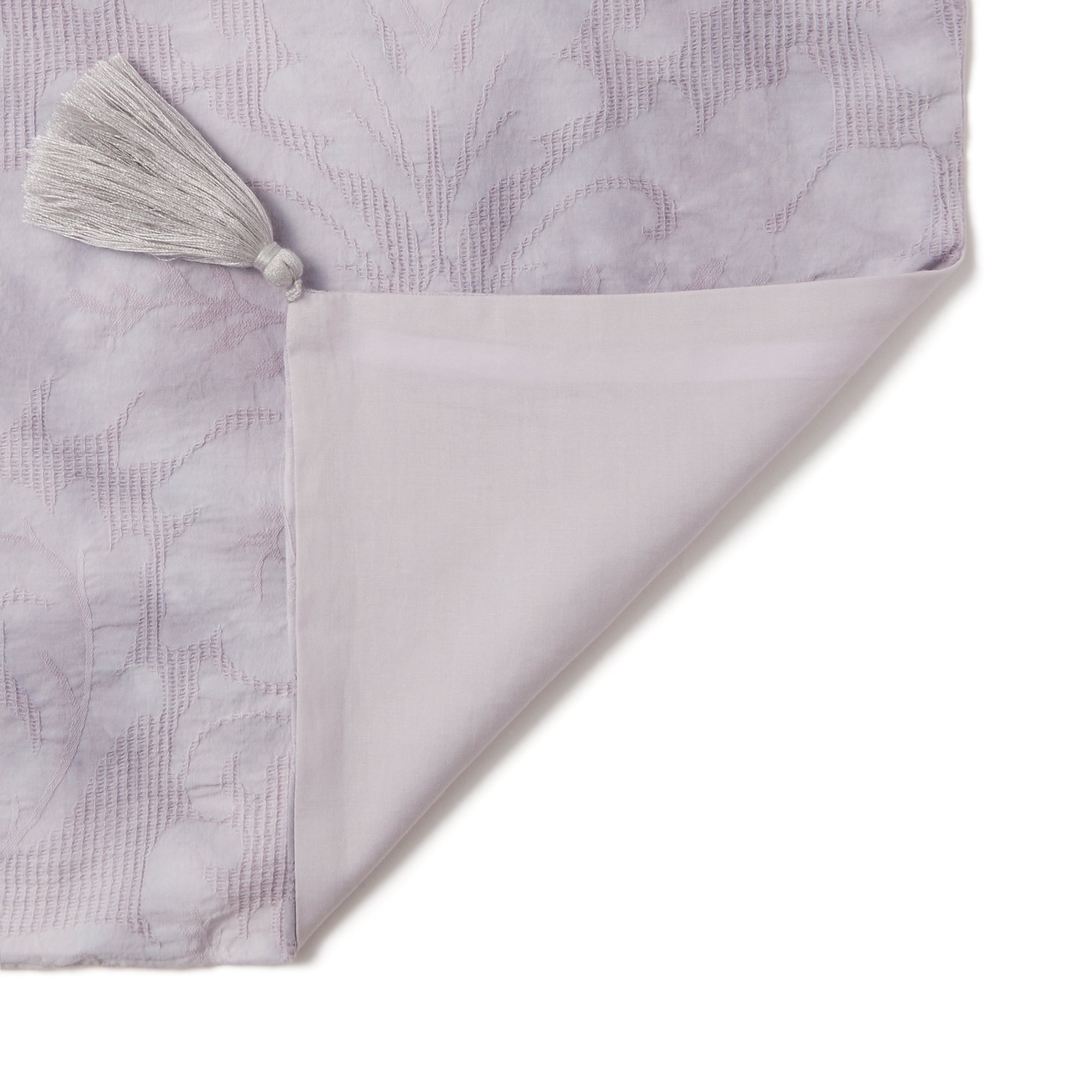 生地自体にワッフル織で花柄を織り込んだフェミニンな掛け布団カバーです。淡いグレーのダイダイ染めがフェミニンなデザイン。爽やかでかわいらしいタッセルもポイントです。