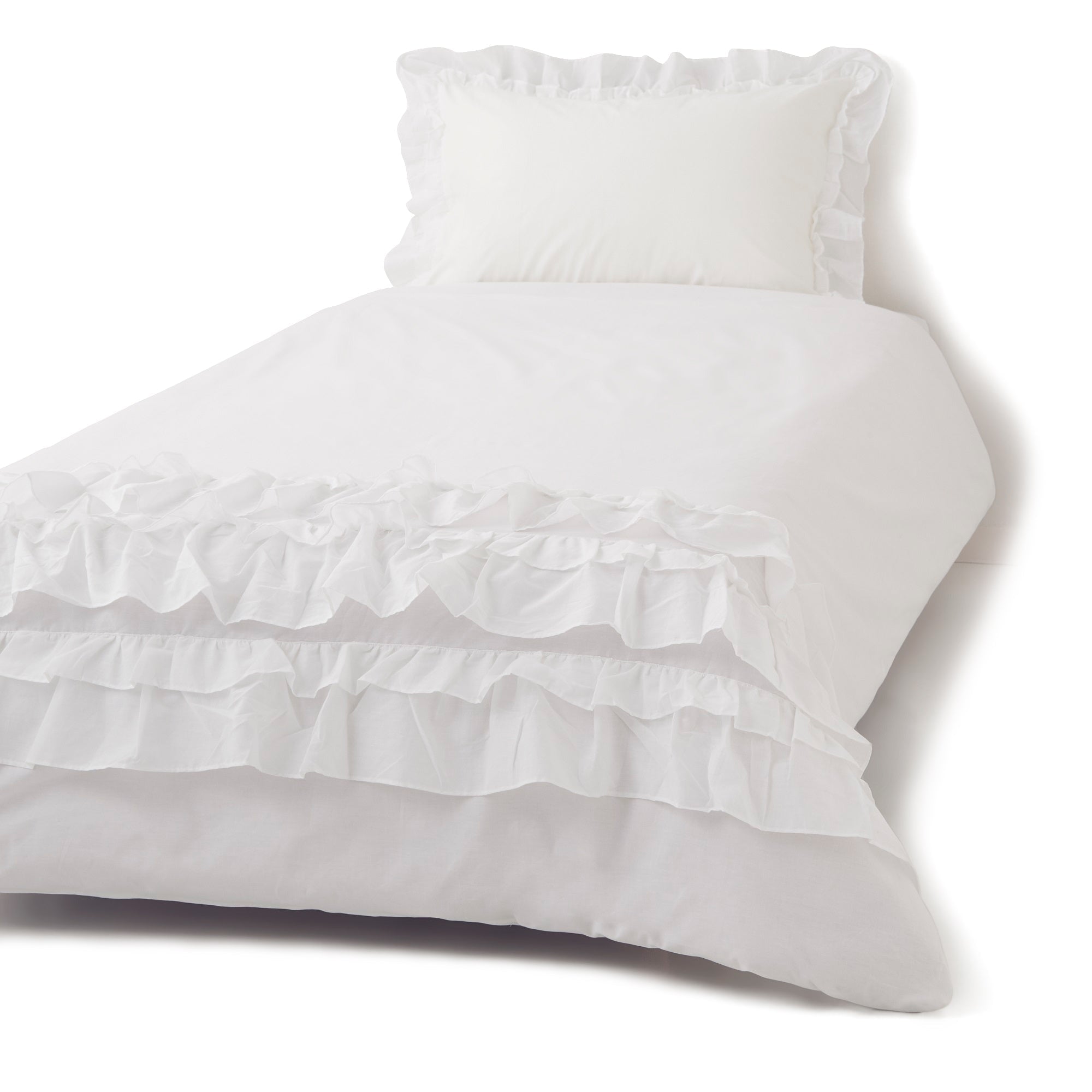 透け感があるフリルをあしらったフェミニンな掛け布団カバーです。シンプルだけどかわいいお部屋がお好みの方に。