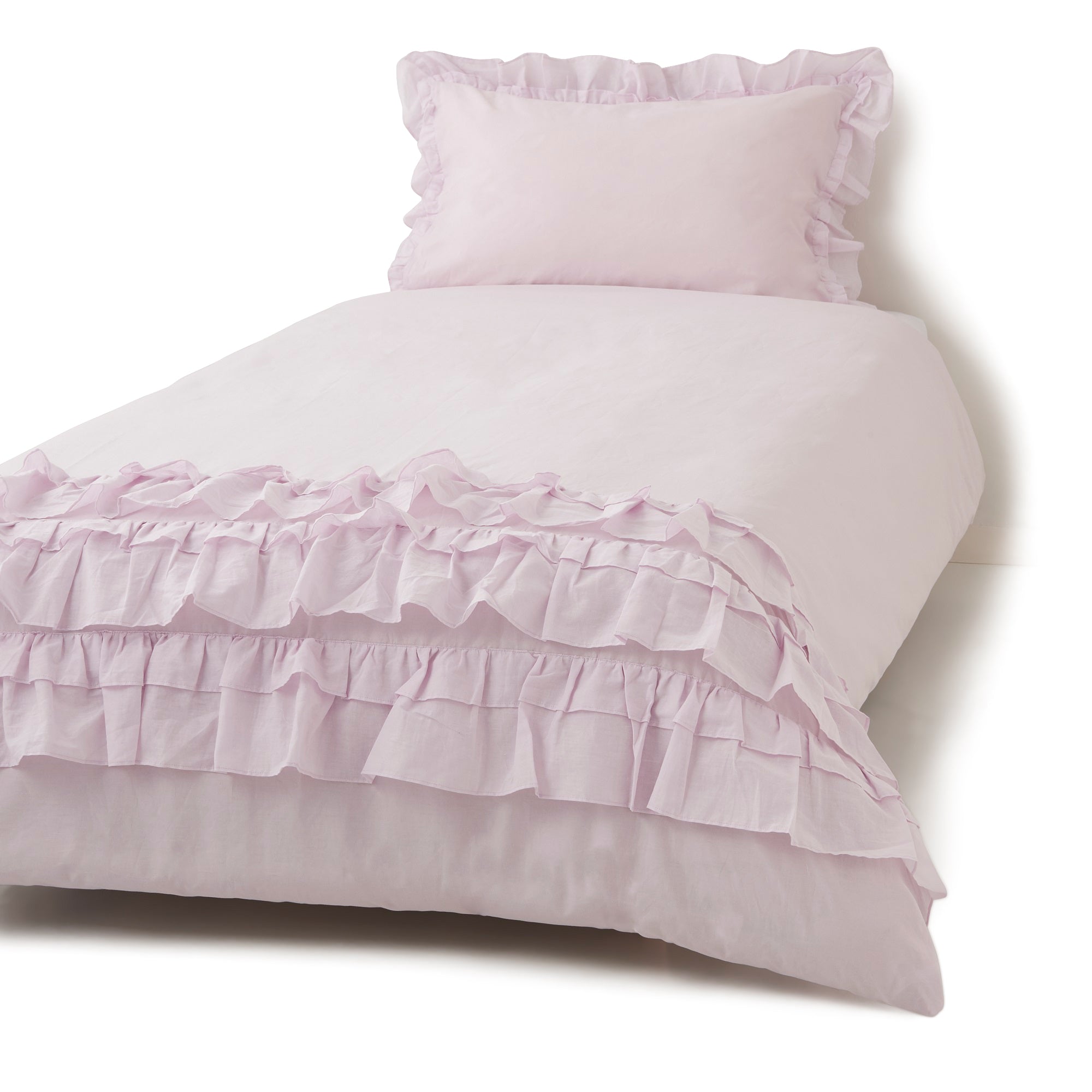 透け感があるフリルをあしらったフェミニンな掛け布団カバーです。シンプルだけどかわいいお部屋がお好みの方に。
