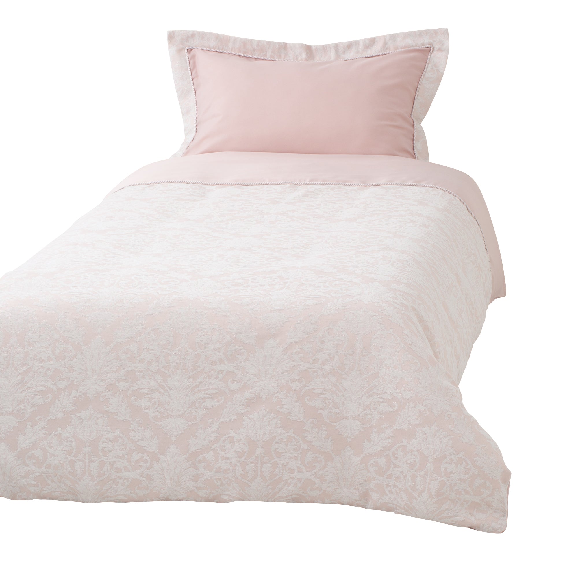ジャガード織りでオーナメント柄をあしらった高級感のあるデザインの掛け布団カバーです。モール糸とメタリック糸を織り込んでいるので、生地に奥行き感が生まれ、高級感のある仕上がりです。素肌にあたる部分は滑らかな肌触りなので、心地よく眠りにつくことができます。