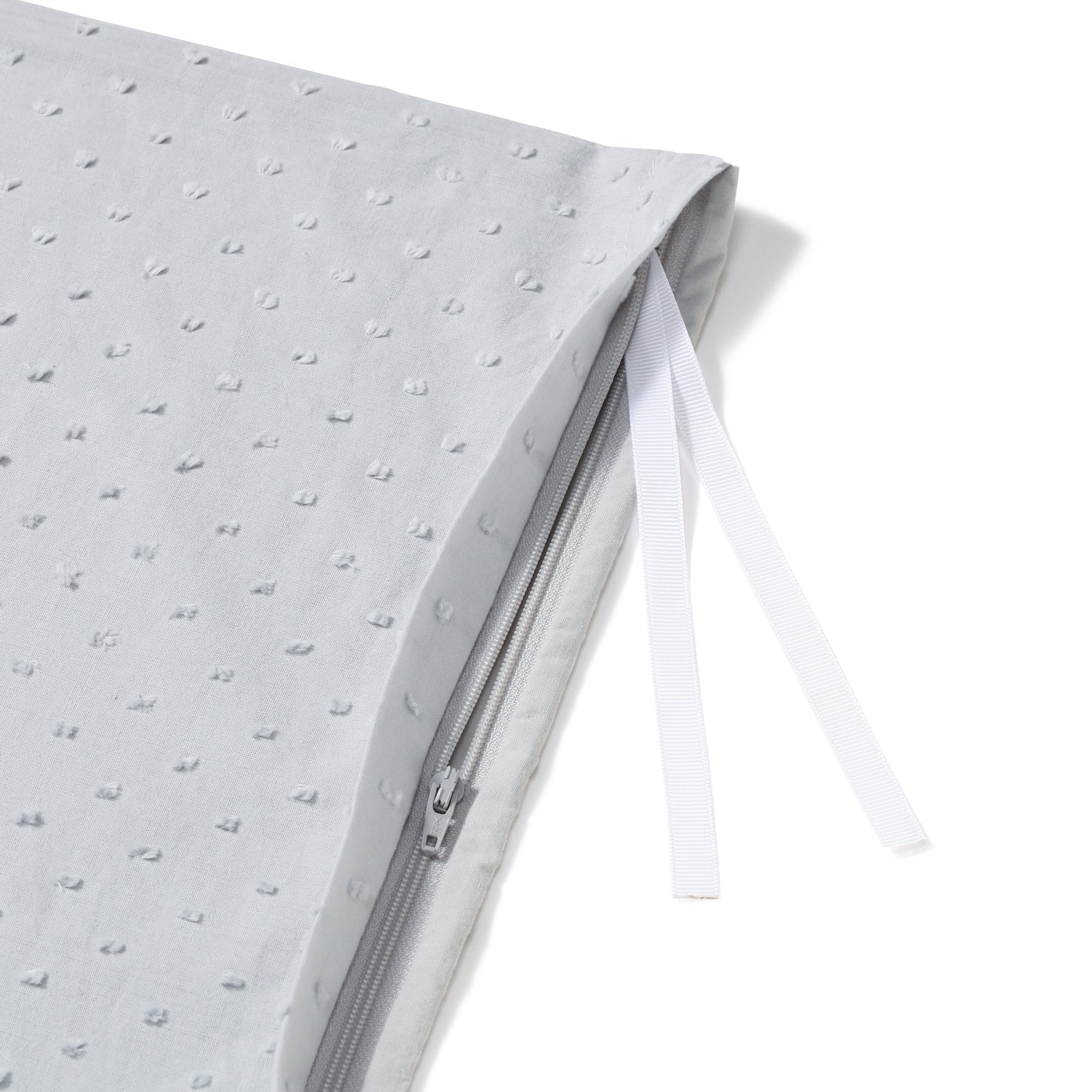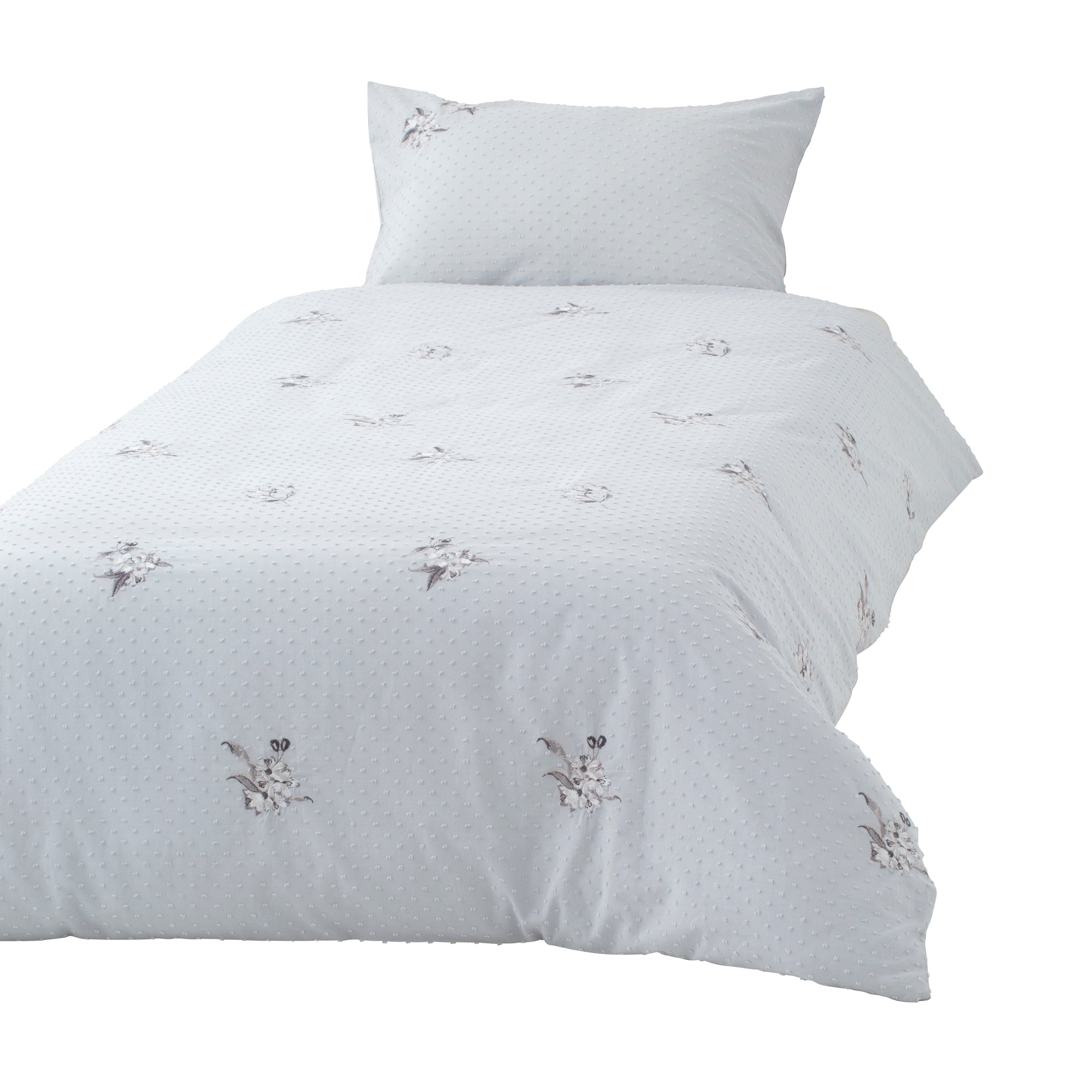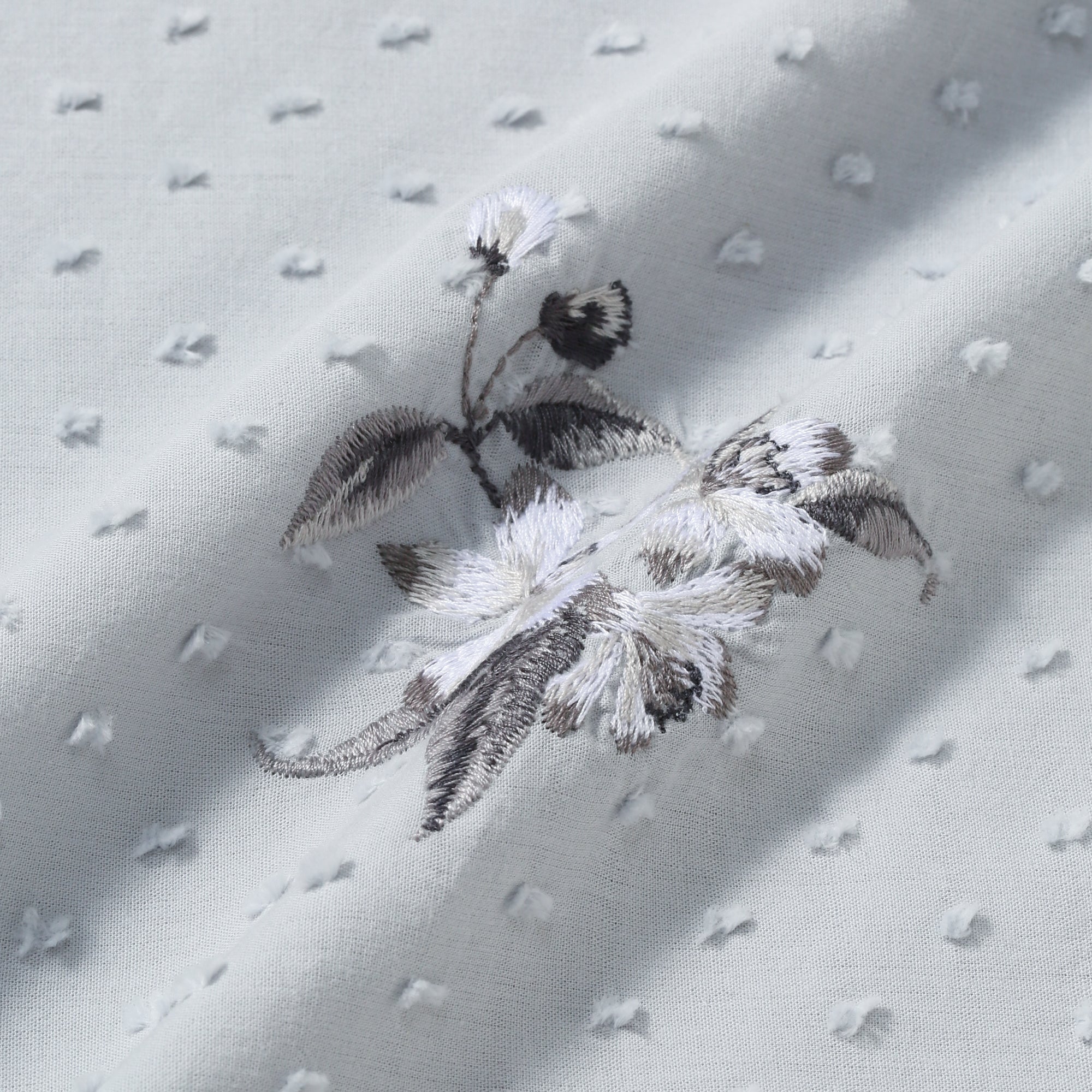 ジャカード織りでドットを表現した生地に、かわいらしいお花の刺繍をあしらった、掛け布団カバーです。凹凸があり、プリントでは表現できない高級感があります。シンプルだけど、女性らしいお部屋がお好きな方にお勧めです。