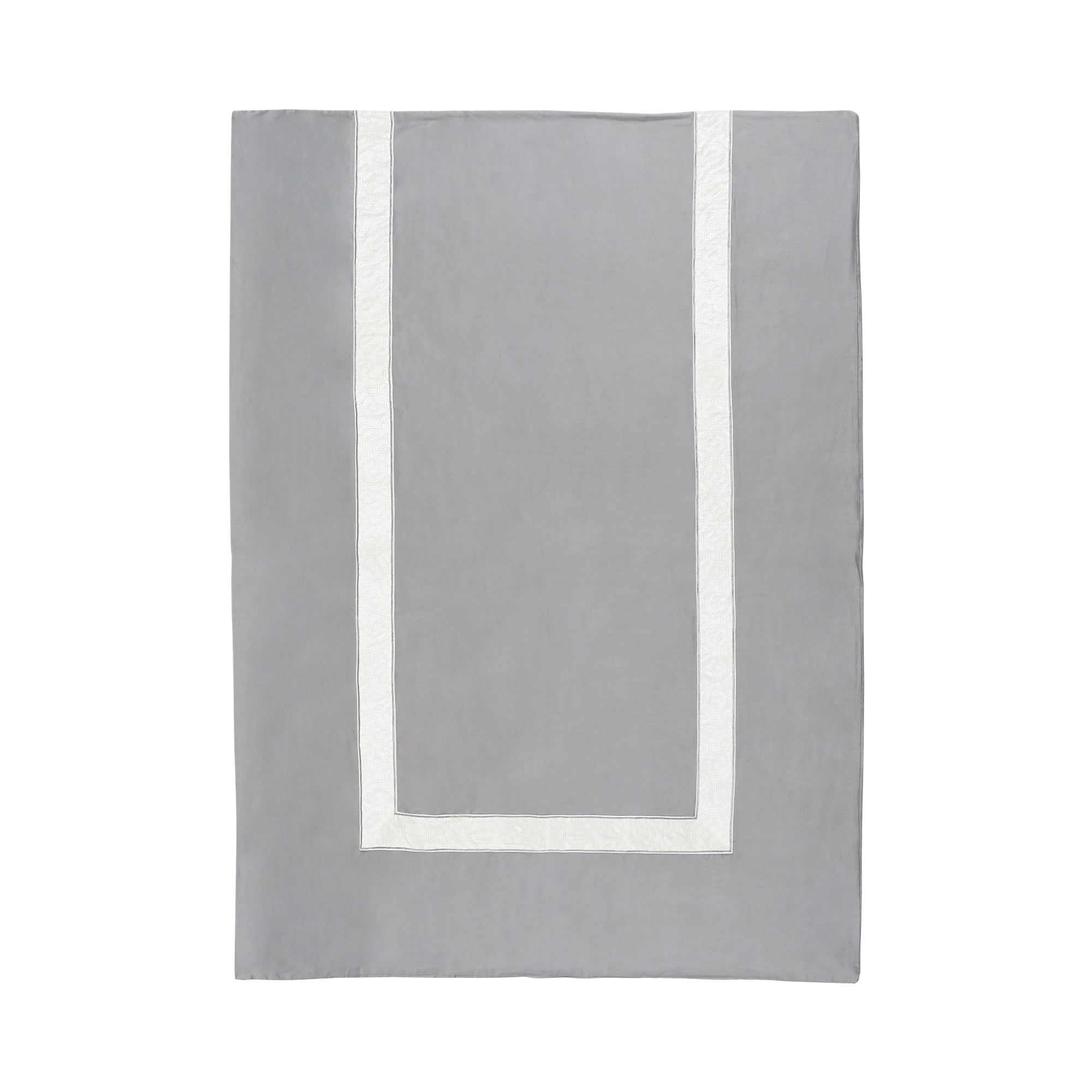 つややかなコットンの手触りが心地よい、高級感あふれる掛け布団カバーです。光沢のあるコットンヴィスコースのテープをあしらい、異国情緒あふれる繊細な刺繍を施しました。シンプルなデザインが素材の上質感をより一層引き立て、モダンでラグジュアリーな空間を生み出します。ホテルのベッドルームのような極上のリラックスタイムをお楽しみください。