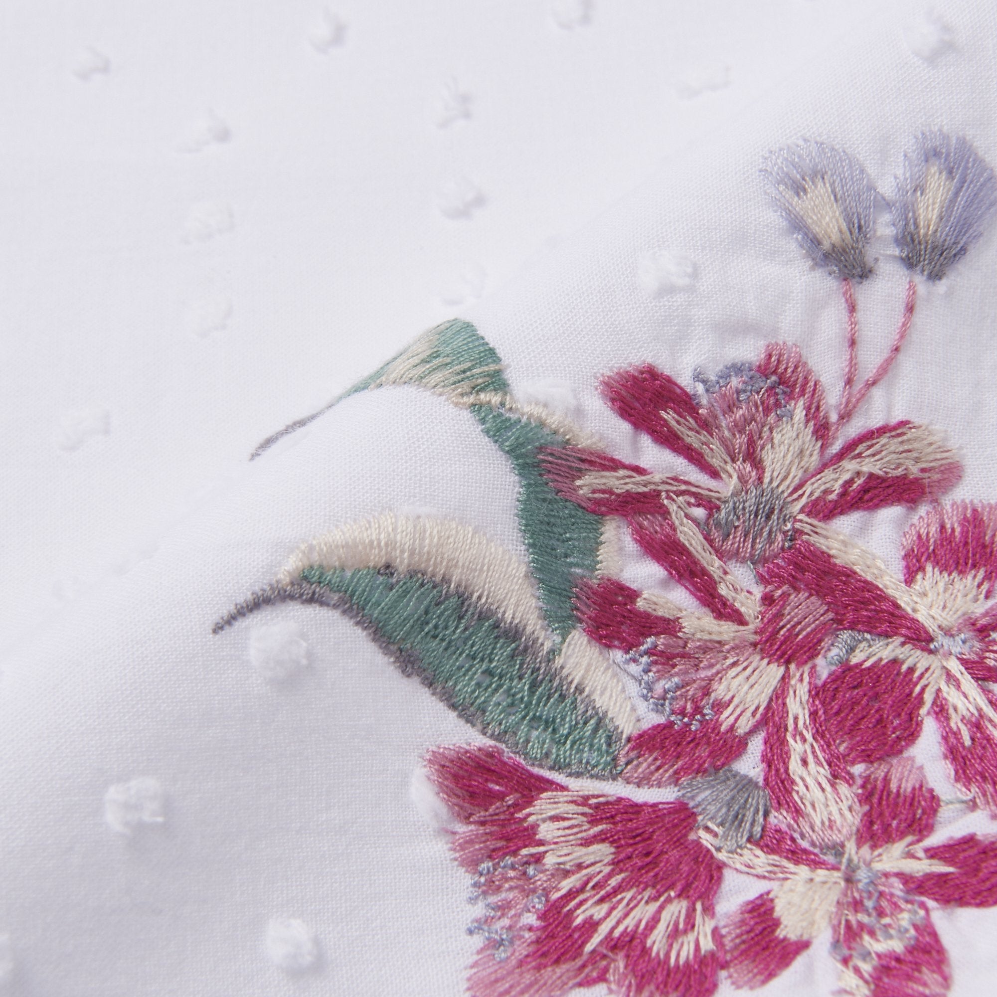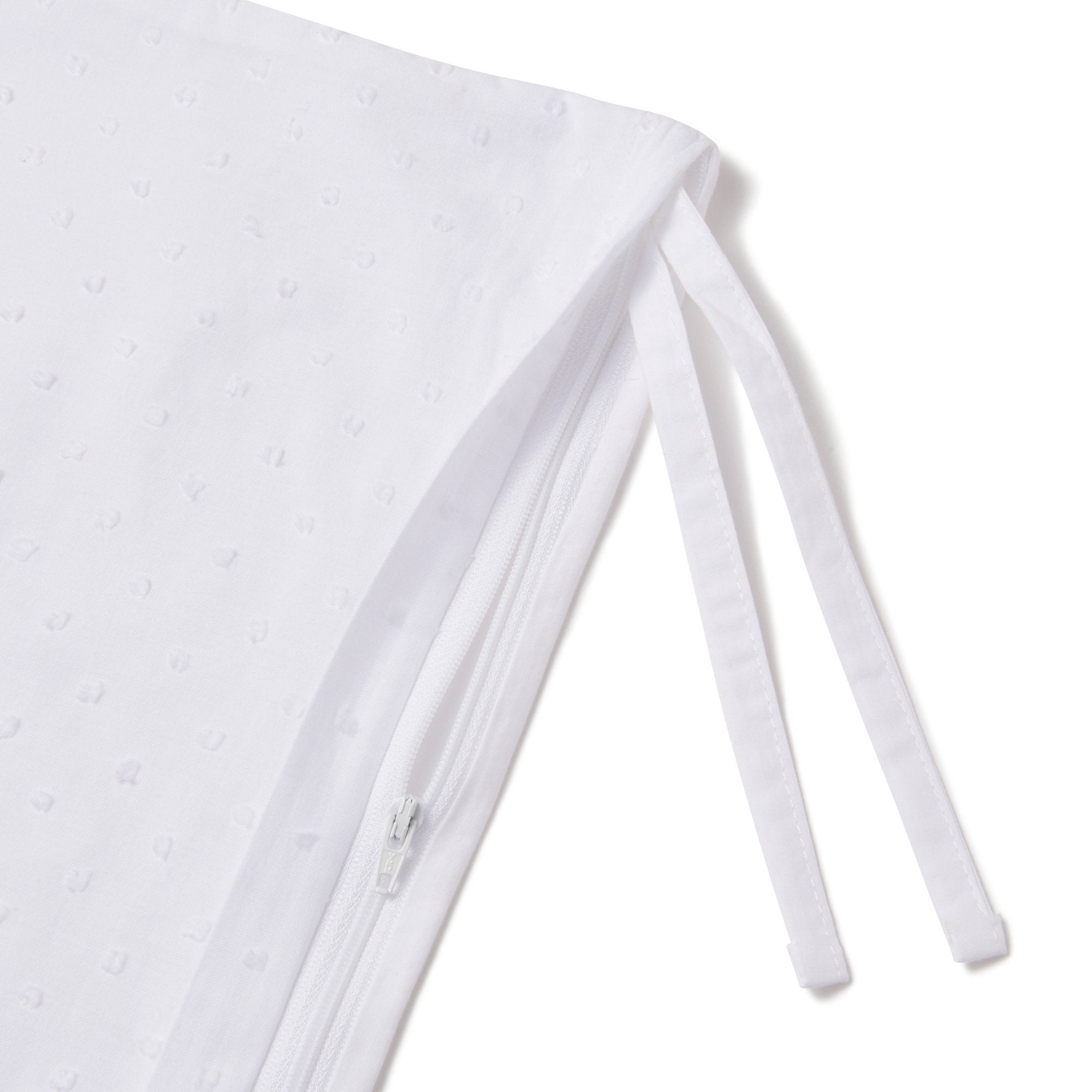 ジャカード織りでドット柄を表現したコットン素材の掛け布団カバーです。ベッドルームにスウィートなテイストを取り入れたい方におすすめです。幅広い年代の方に長く愛用いただけるナチュラルなデザインです。プリントでは表現できない独特な高級感はジャカード織りならでは。かわいらしいお花の刺繍がチャーミングなアクセントです。