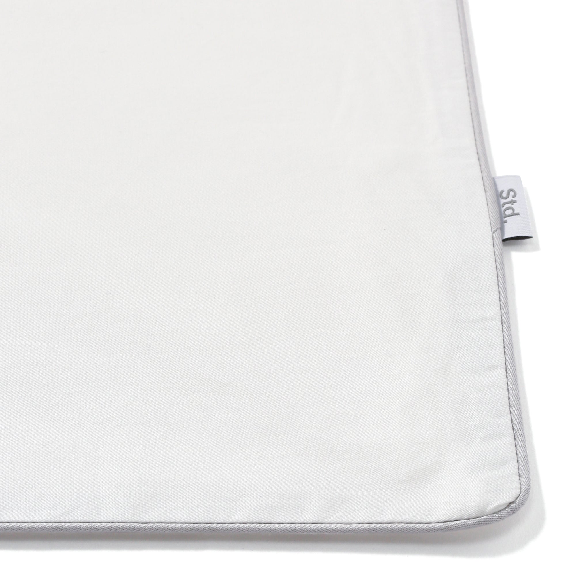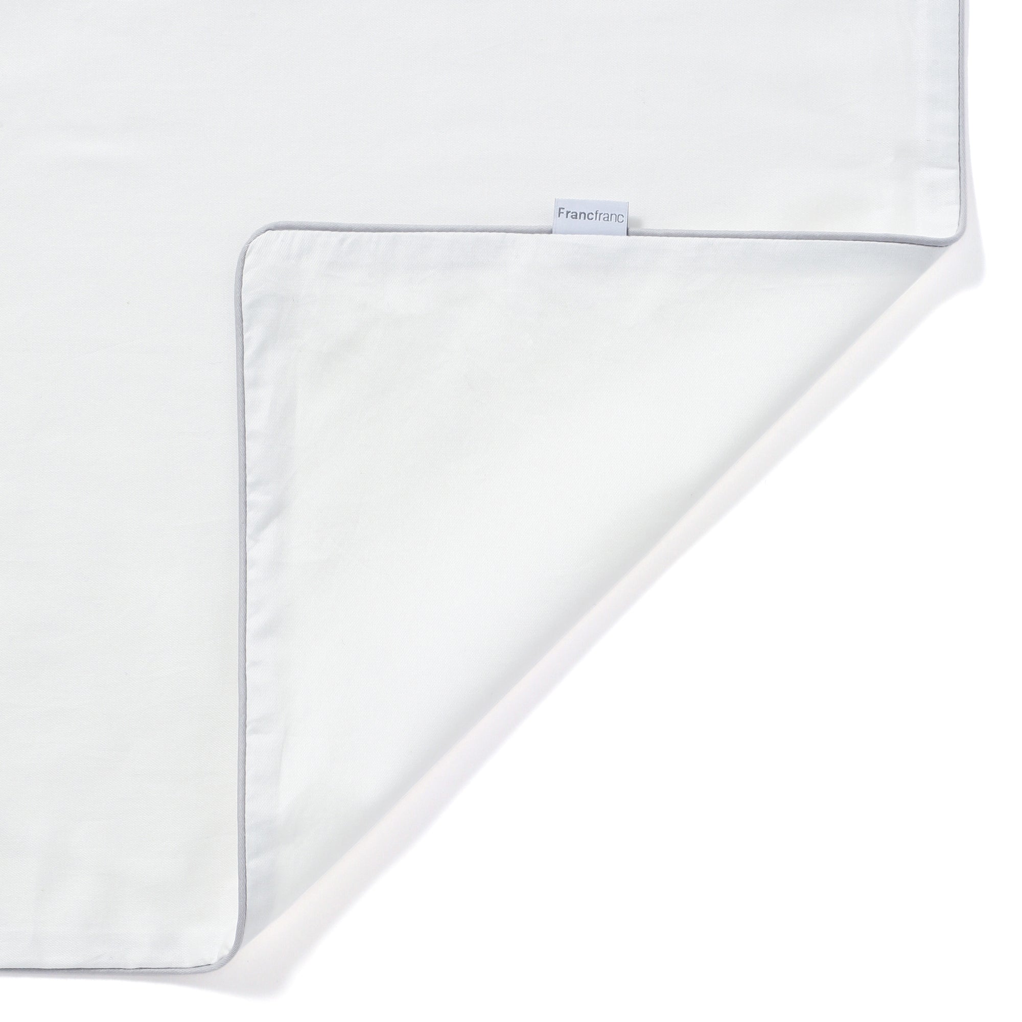 目の細かいコットンを贅沢に使用した、ホテルライクな清潔感あふれる掛け布団カバーです。お手持ちの寝装品にも合わせやすいデザインです。通常はポリエステル素材が使われることの多いパイピング部分にも同素材のコットンを採用しました。柔らかな感触はコットン100%だからこそ感じられる特別なものです。シンプルだからこそ際立つ上品な光沢感がすっきりと洗練された上質な安らぎ空間を演出します。カバーの内側にはずれ防止のための紐が付いています。カバーの中で掛け布団がずれたりせず、朝まで快適にお休みいただけます。