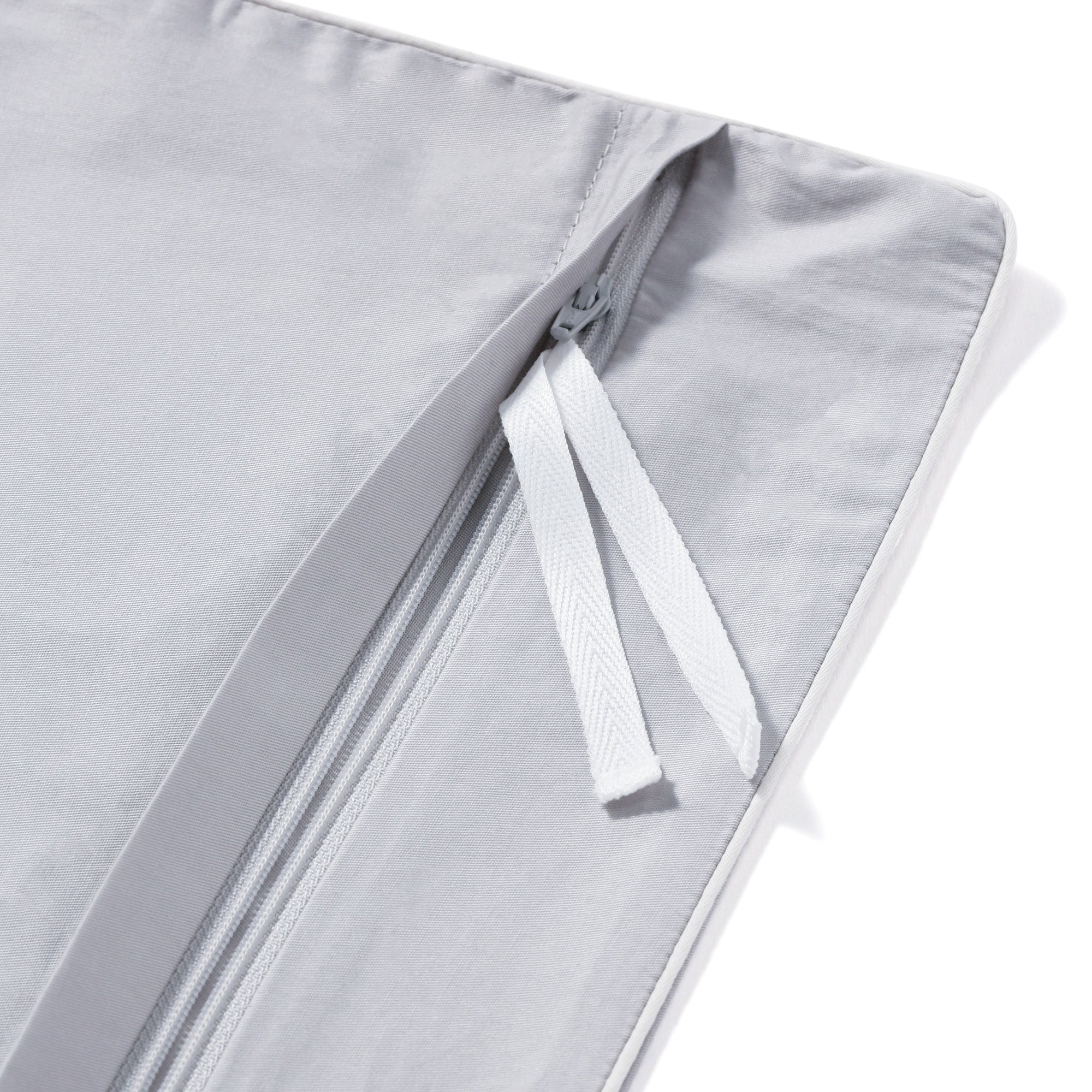 目の細かいコットンを贅沢に使用した、ホテルライクな清潔感あふれる掛け布団カバーです。お手持ちの寝装品にも合わせやすいデザインです。通常はポリエステル素材が使われることの多いパイピング部分にも同素材のコットンを採用しました。柔らかな感触はコットン100%だからこそ感じられる特別なものです。シンプルだからこそ際立つ上品な光沢感がすっきりと洗練された上質な安らぎ空間を演出します。カバーの内側にはずれ防止のための紐が付いています。カバーの中で掛け布団がずれたりせず、朝まで快適にお休みいただけます。