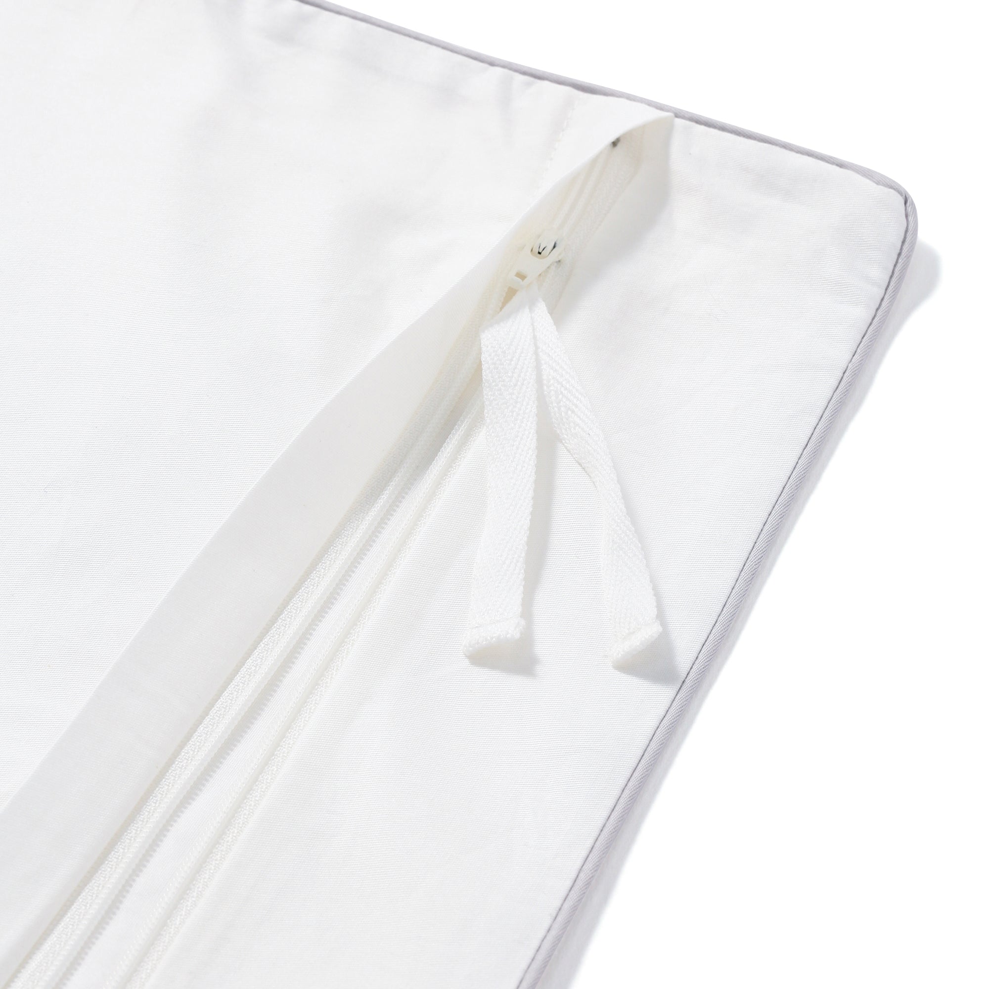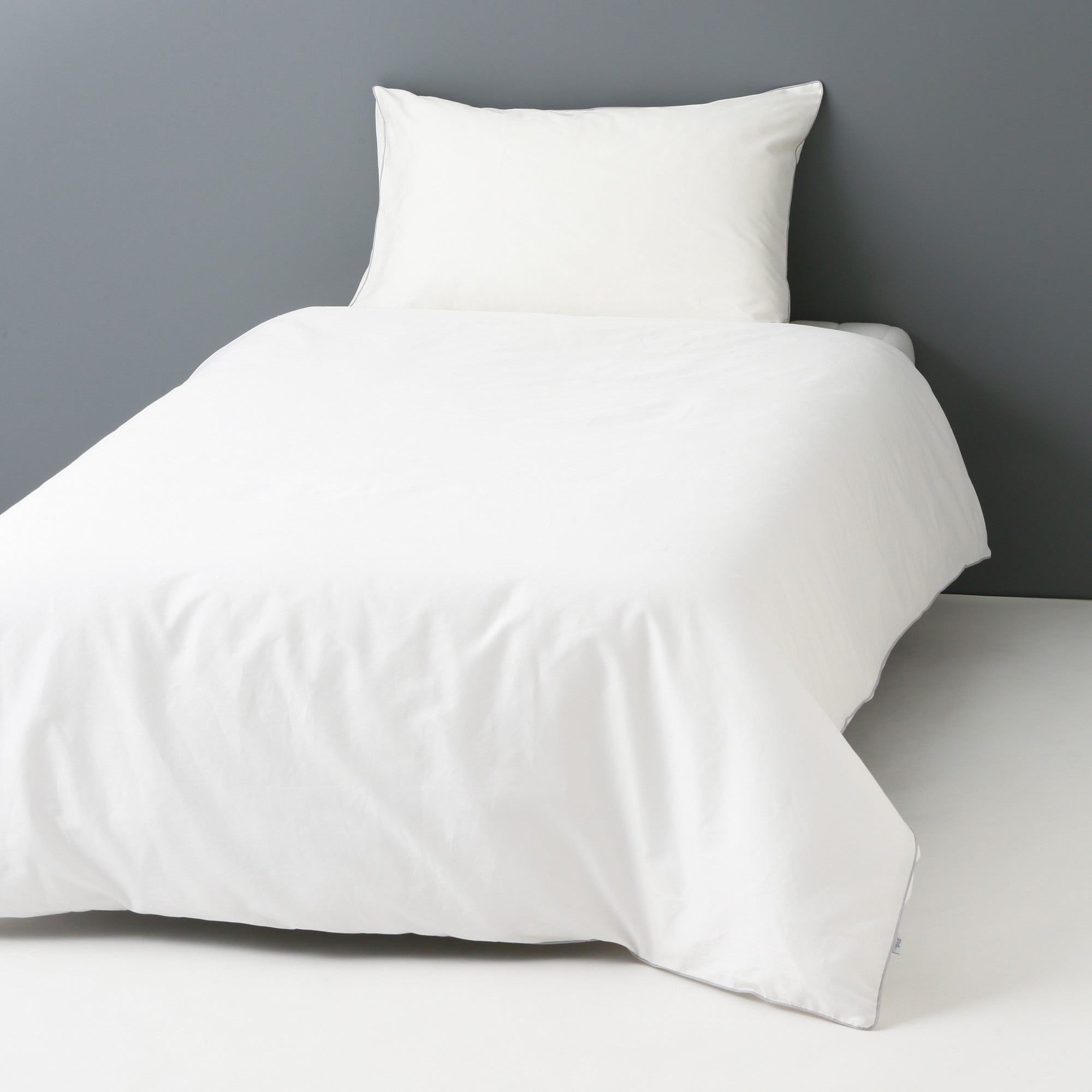 目の細かいコットンを贅沢に使用した、ホテルライクな清潔感あふれる掛け布団カバーです。お手持ちの寝装品にも合わせやすいデザインです。通常はポリエステル素材が使われることの多いパイピング部分にも同素材のコットンを採用しました。柔らかな感触はコットン100%だからこそ感じられる特別なものです。シンプルだからこそ際立つ上品な光沢感がすっきりと洗練された上質な安らぎ空間を演出します。カバーの内側にはずれ防止のための紐が付いています。カバーの中で掛け布団がずれたりせず、朝まで快適にお休みいただけます。
