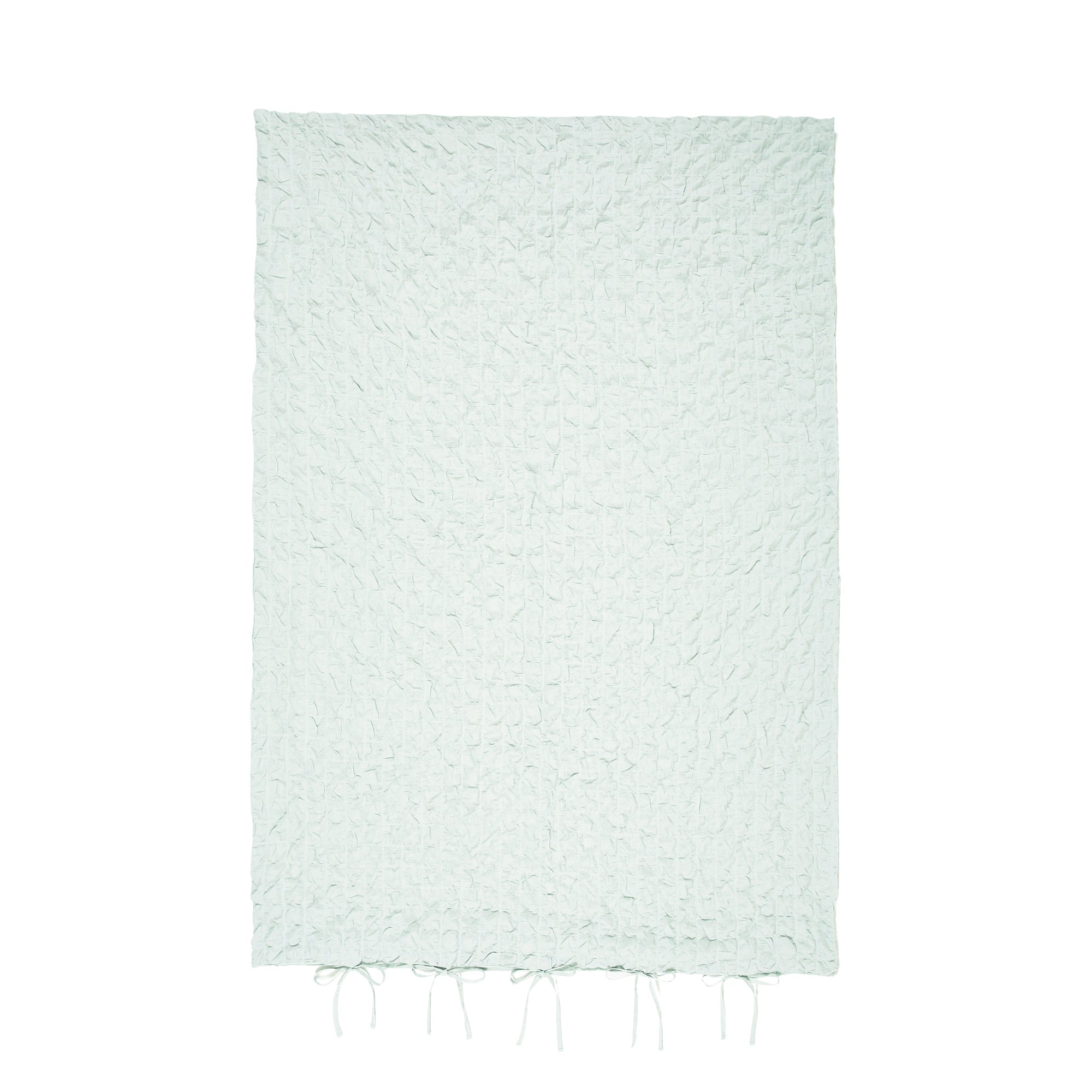 収縮度の異なる糸を用いて織り上げることで立体感のある格子柄を表現した掛け布団カバーです。掛け布団カバーの裾部分にあしらったリボンがポイントのデザインです。ウッドの家具や、たくさんのグリーン等とコーディネートしてナチュラルフェミニンな雰囲気にするのがおすすめです。