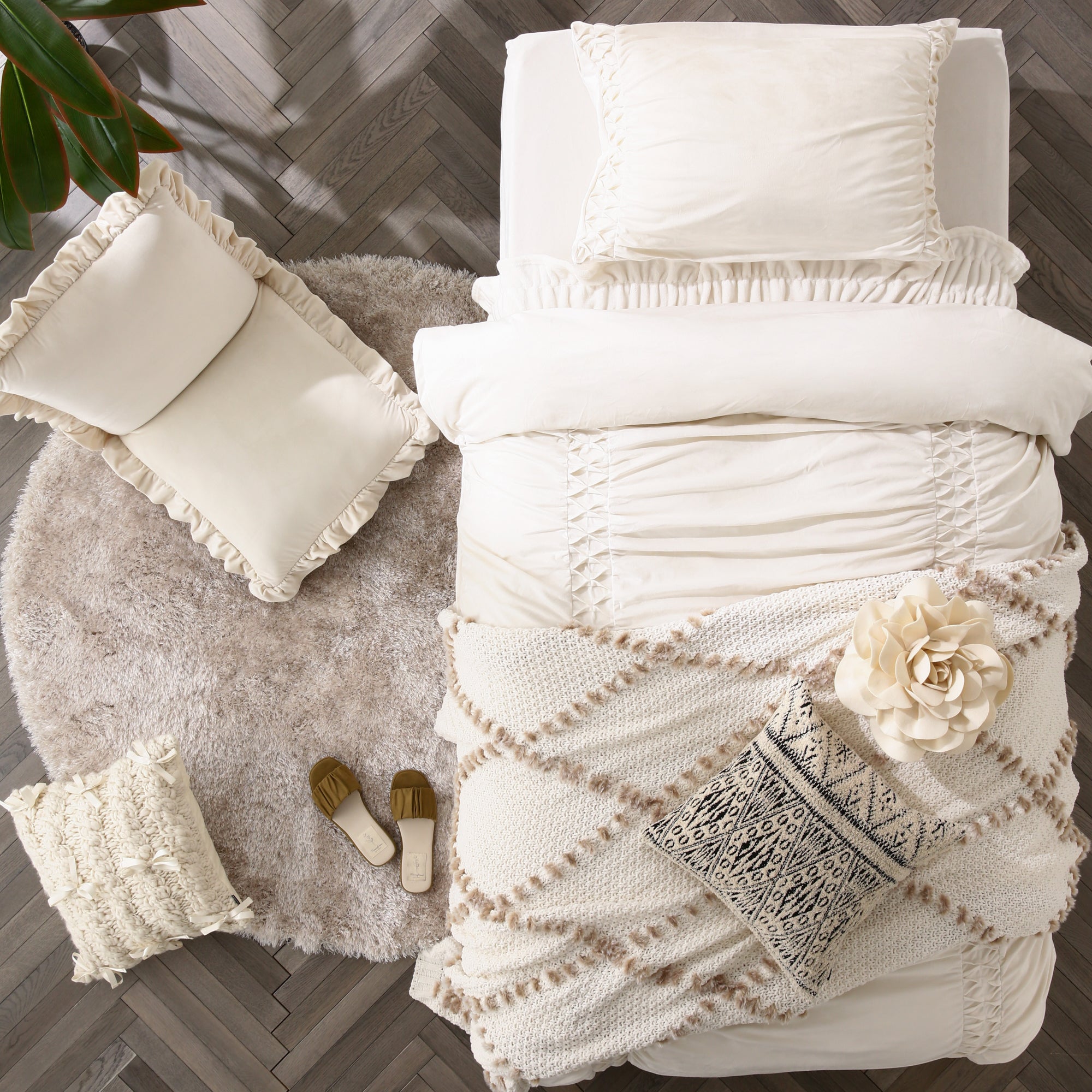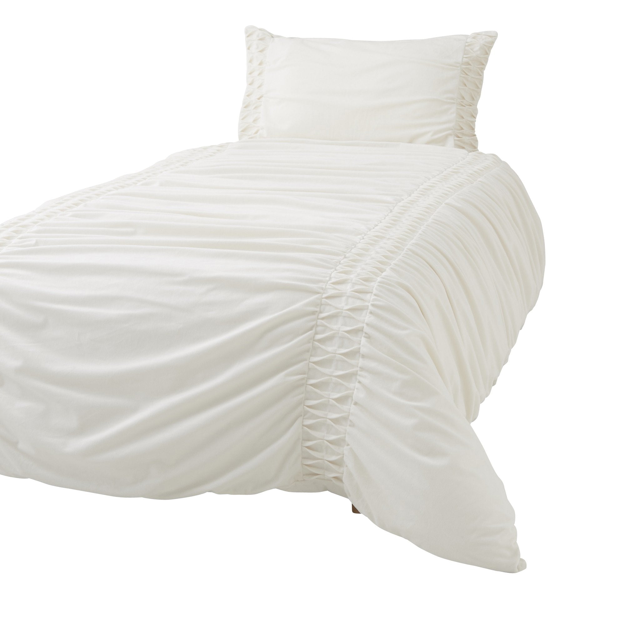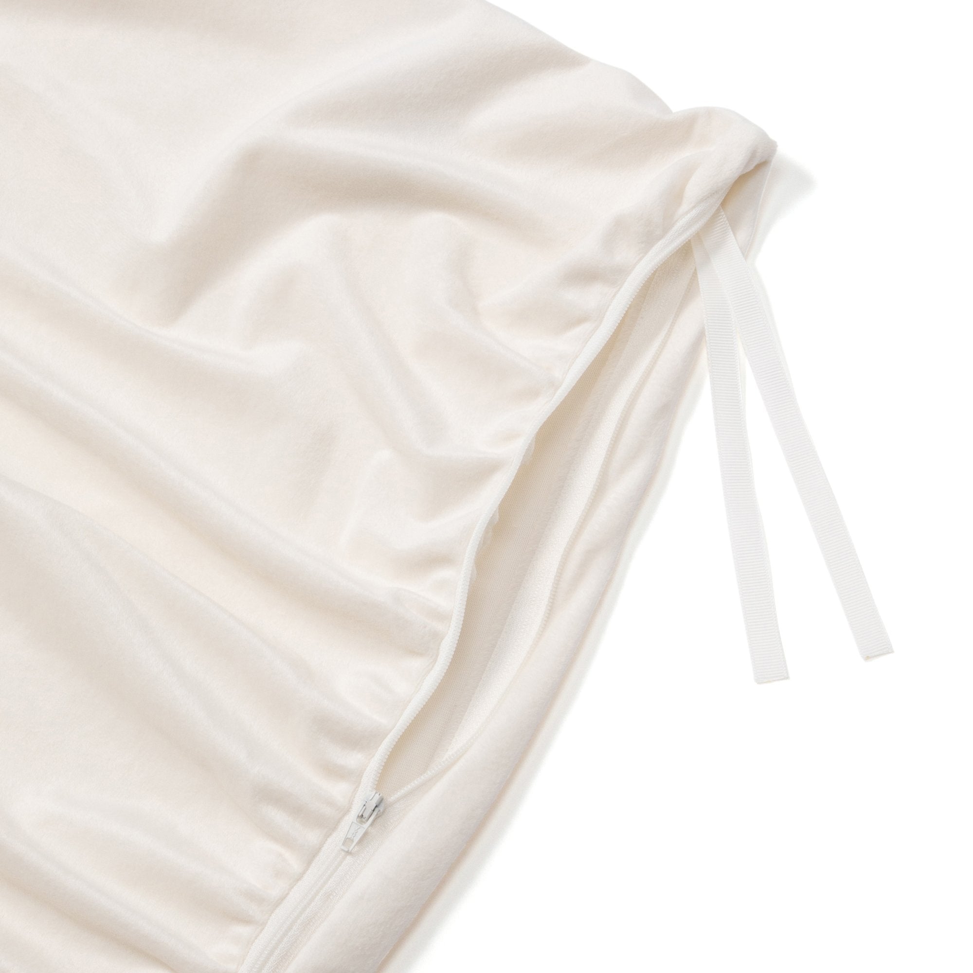 マイクロファイバー素材を使った、肌触りなめらかなあったか掛け布団カバーです。布団に入った瞬間から感じられるぬくもりとなめらかな触り心地。肌寒い季節にうれしい、癒しのアイテムです。立体感のあるデザインが華やかな雰囲気を漂わせ、シンプルなだけで終わらないエレガントなコーディネートが楽しめます。どんなお部屋にも取り入れやすい、清潔感のあるホワイトは定番人気のカラー。年代を問わずに使いやすい、マイクロファイバー寝具の中でもシンプルなデザインのシリーズ。細かく生地にタックを寄せて、ワンポイントになるラインが両サイドに入っています。そこから生まれるひだが流れるようなデザインが綺麗な、贅沢に生地を使用したデザインです。ふんわり軽くて暖かい。マイクロファイバー寝具で快適な寝心地。Francfrancのマイクロファイバー寝具は、超極細繊維できめが細かく、ソフトで滑らかな肌触り。繊維と繊維の間に空気を溜め込み、体温を逃がさず暖かさを保ちます。保湿性にも優れた生地は布団に入った時のヒヤっと感を軽減させ、快適な入眠をサポートします。