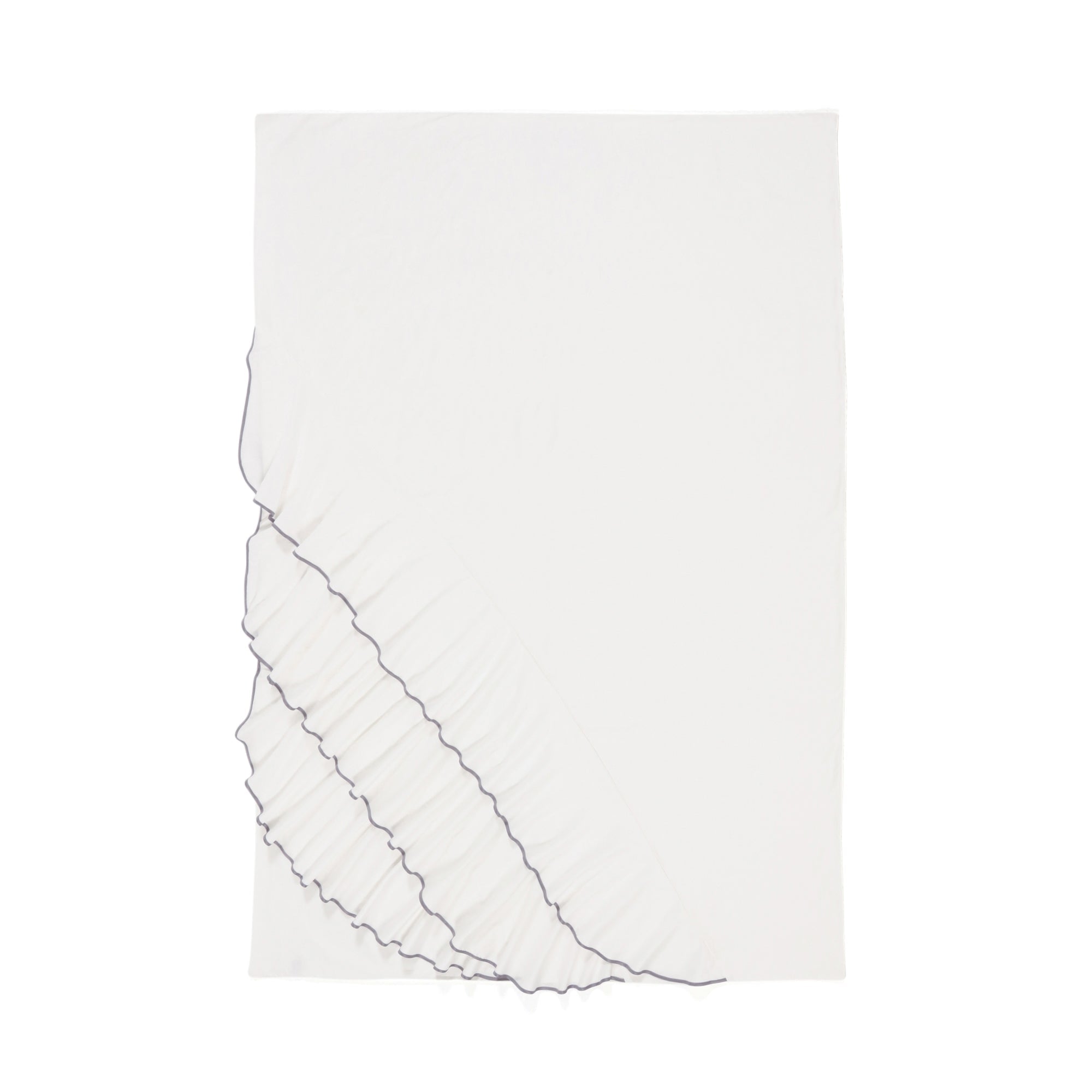 ボリュームのあるフリルをたっぷりとあしらった掛け布団カバーです。フリルのエッジに施したパイピングがエレガントなデザインを端正に引き締めます。本体部分はコットン100%を使用。優しい肌触りが心地よい睡眠をサポートします。同じシリーズの枕カバーとあわせて大人っぽくドラマチックなベッドコーディネートをお楽しみください。
