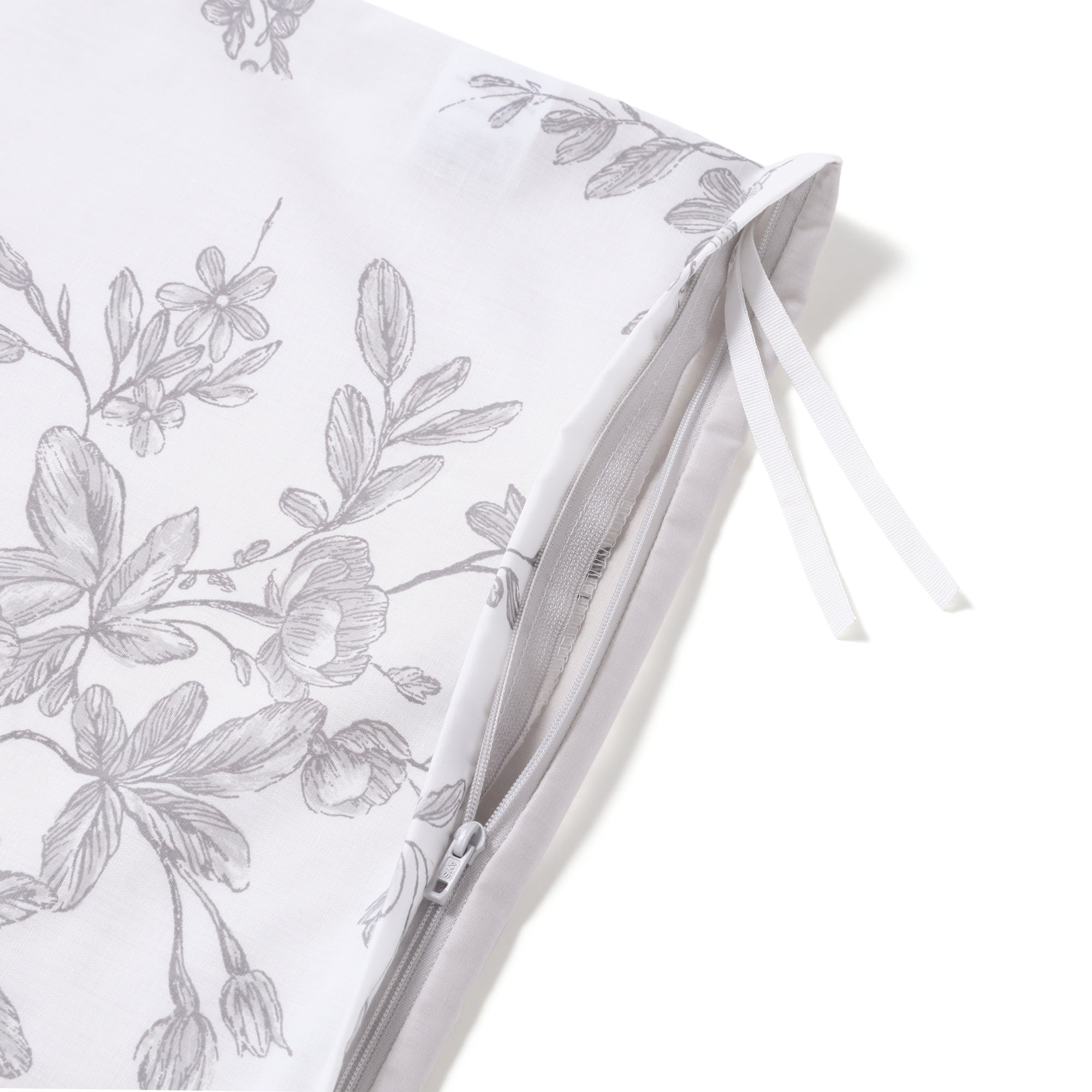 ふわろシリーズで人気のクラシックフラワー柄が、通年使用できる掛け布団カバーになりました。繊細な線で表現された花柄が美しく、モノトーンなのでお部屋のコーディネートに取り入れやすいデザインです。合わせるアイテムによってシンプルにも、華やかにも、表情を変えてお部屋にマッチします。