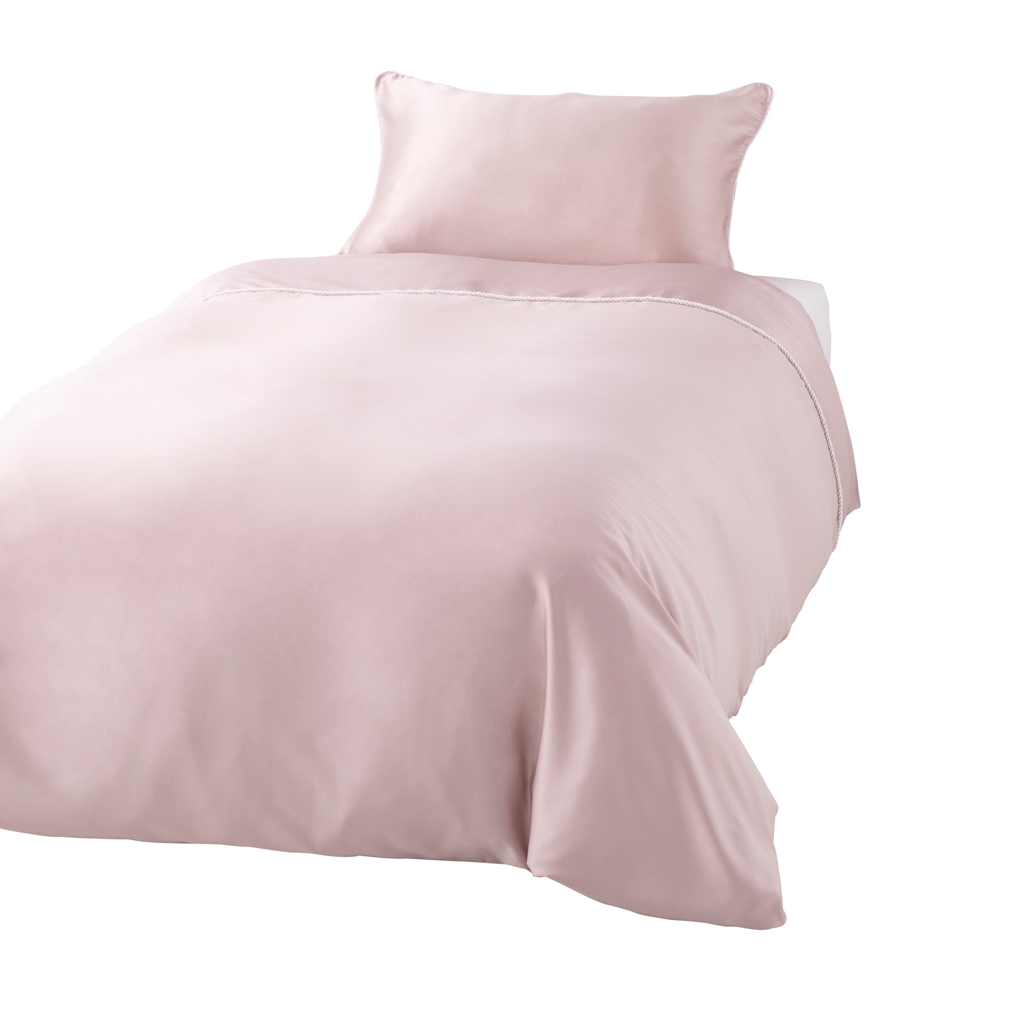 艶感の美しく、滑らかな手触りがお楽しみいただける掛け布団カバーです。肌に当たる顔近くの生地と裏面にレーヨンコットンシルクを混紡した生地を使用しているため、滑らかな肌触りに包まれる感触がお楽しみいただけます。色味を揃えているので、シルクまくらカバーと組み合わせてご使用いただけます。艶感のあるロープがデザインのポイントです。