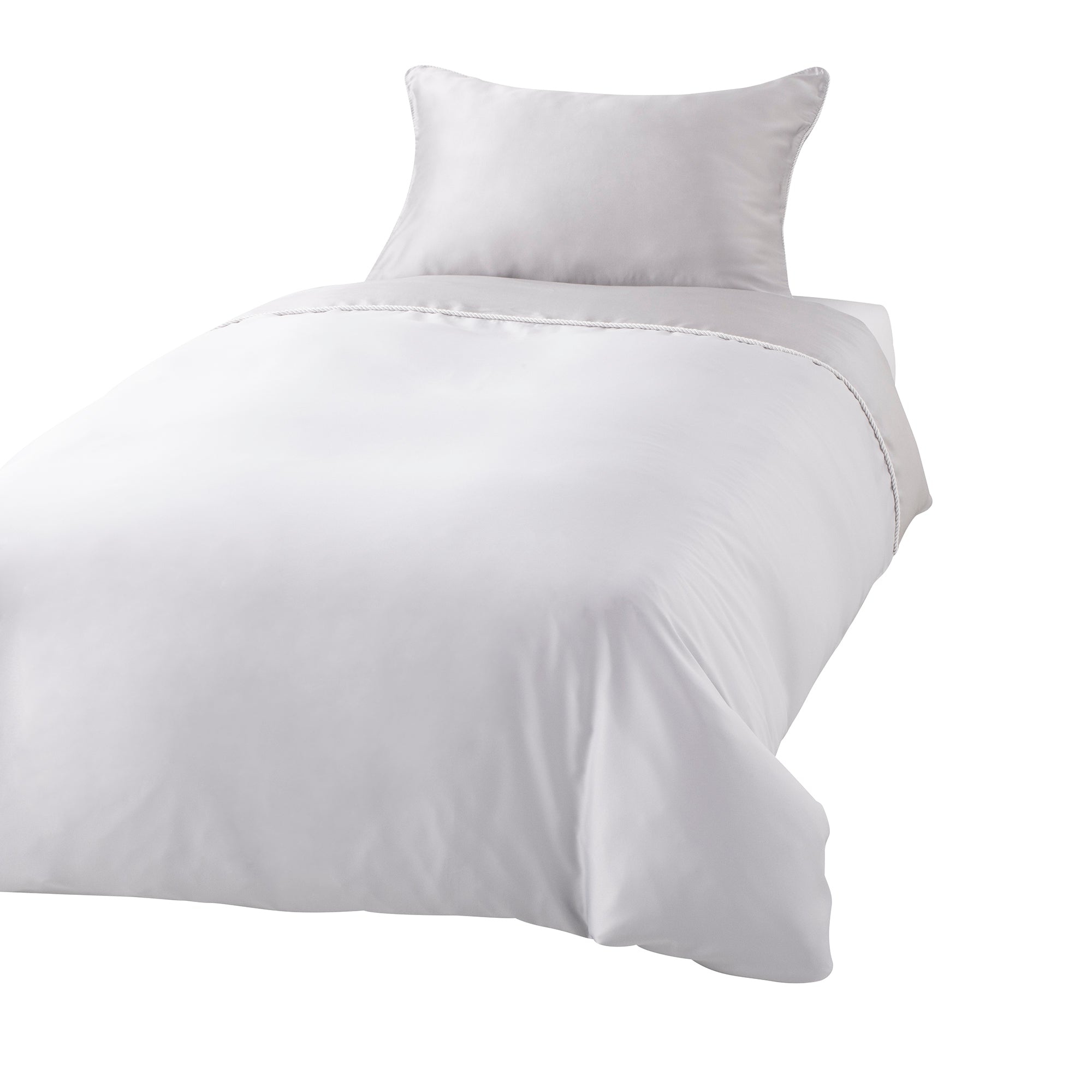 艶感の美しく、滑らかな手触りがお楽しみいただける掛け布団カバーです。肌に当たる顔近くの生地と裏面にレーヨンコットンシルクを混紡した生地を使用しているため、滑らかな肌触りに包まれる感触がお楽しみいただけます。色味を揃えているので、シルクまくらカバーと組み合わせてご使用いただけます。艶感のあるロープがデザインのポイントです。