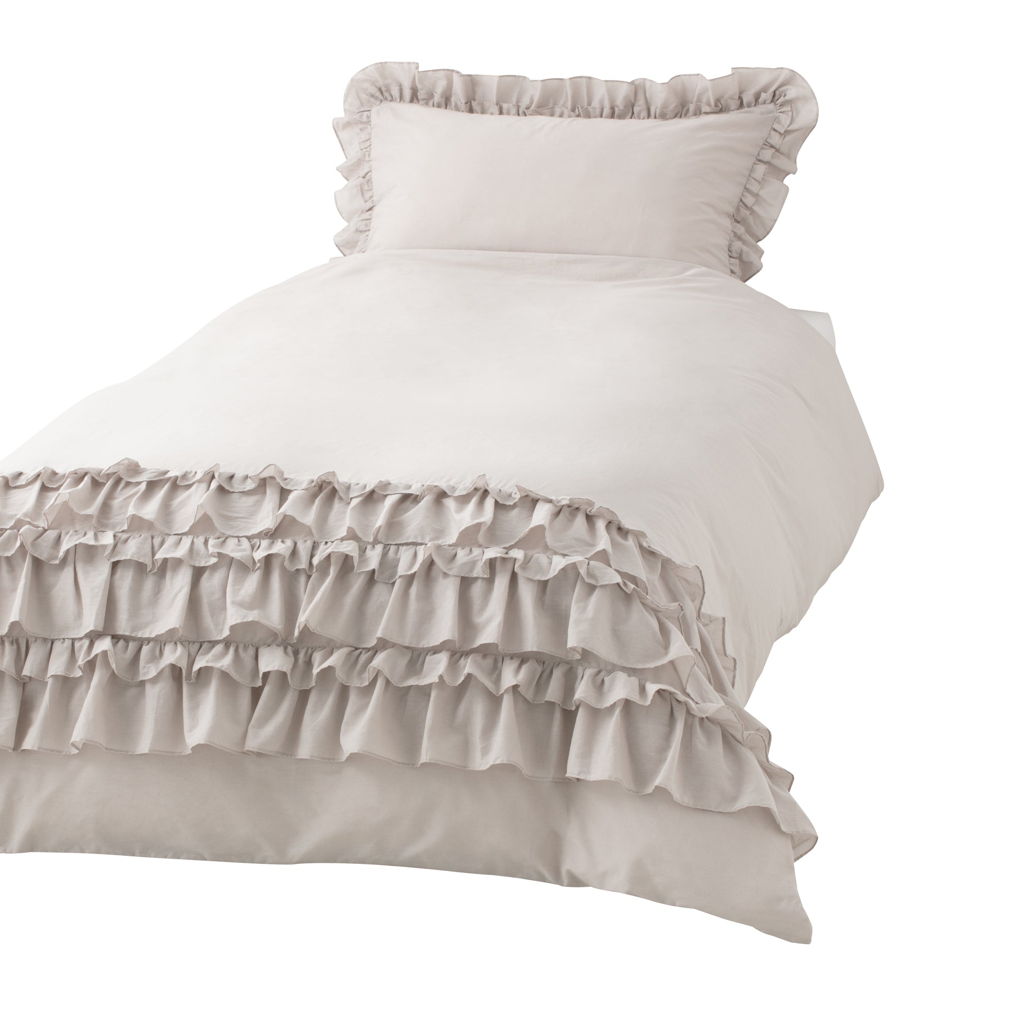 人気のパッフル シリーズにベージュが仲間入り。透け感のあるフリルを贅沢にあしらったまくらカバーです。シンプルなお部屋が好きだけれど華やかさも大切にしたい方にぜひおすすめしたいアイテムです。ボリュームたっぷりのフリルで華やかに。シンプルな無地なのでどんなインテリアにもすんなりなじみます。内側に中材を固定する紐がついているので、取り付けもスムーズ。おやすみ中もカバーと中材のずれを防いですっきり快適です。コットン100%のさらりとした風合いが心地よい眠りに誘います。