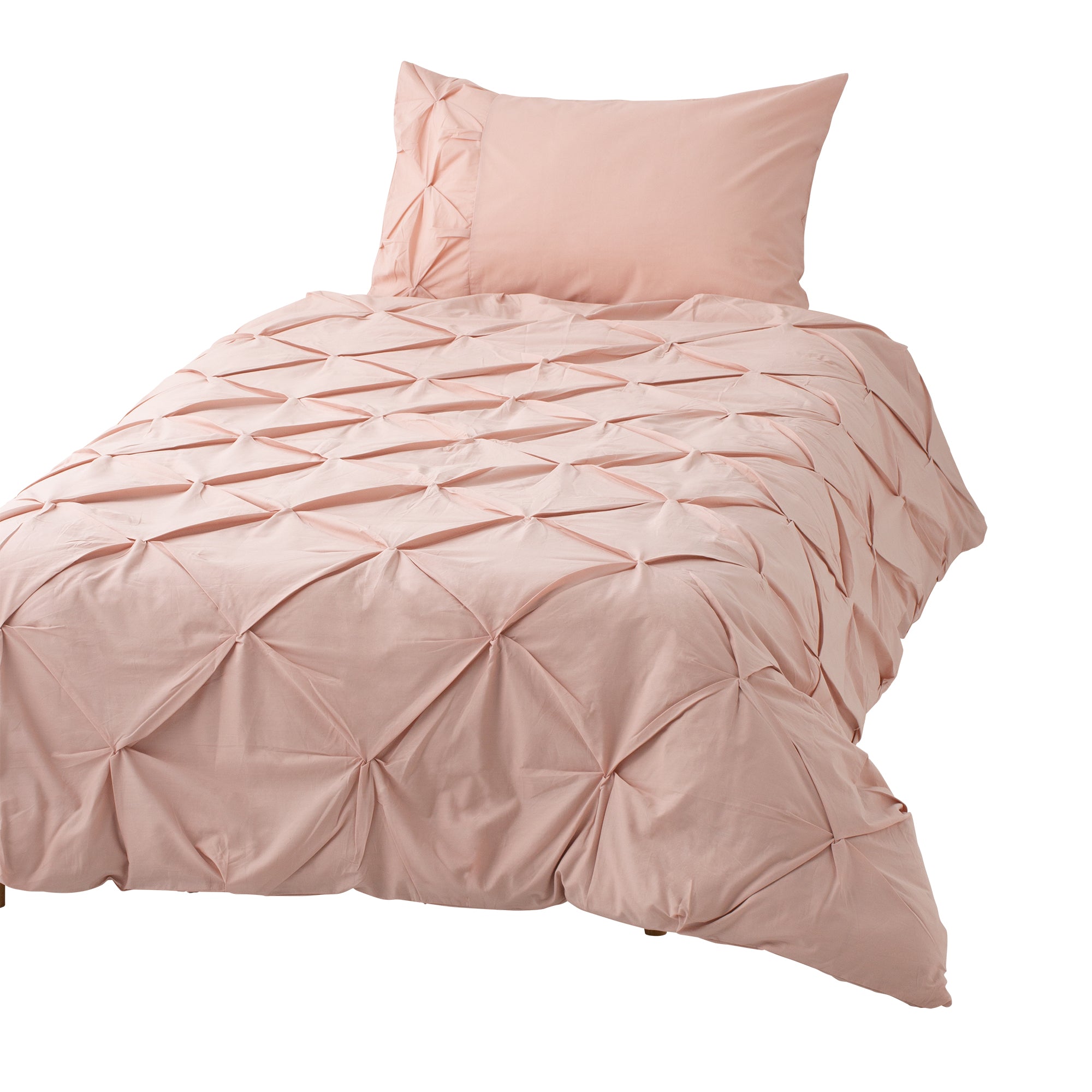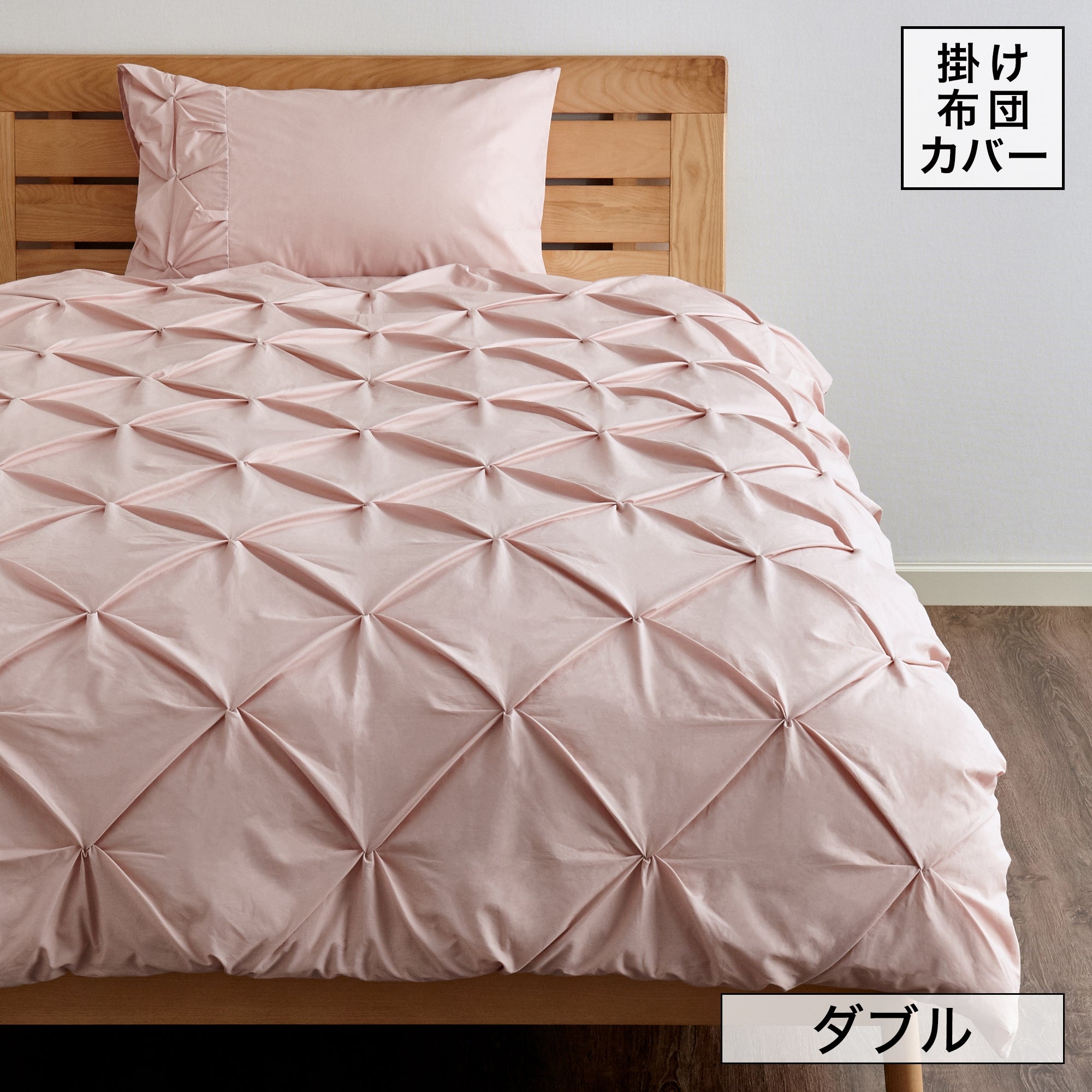 全体に縫製のテクニックを入れた、今までに無いデザインの掛け布団カバーです。単色無地の生地ですが、ダイヤ型にタックを入れることで、立体的でモダンなデザインに仕上がりました。モダンなデザインと甘すぎないピンクが、大人っぽさと可愛さの両方を叶えてくれます。同シリーズの枕カバーと合わせてお使い頂けます。コットンでさらりとした肌触りです。中材を紐で留めるタイプです。カバーと中材がずれることなくお使い頂けます。