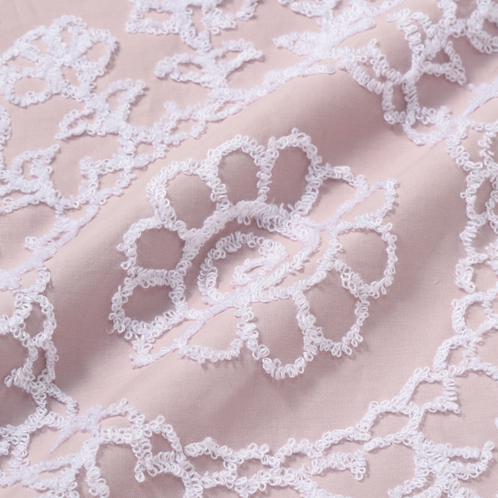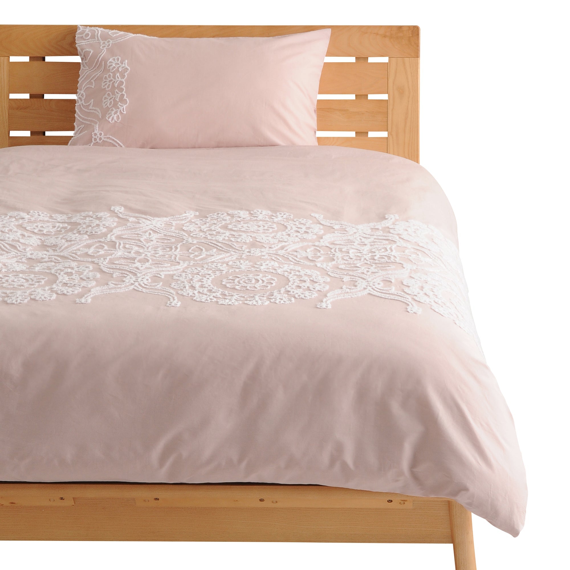 表面にパイル刺繍を施し、刺繍のポコポコ感がおもしろいデザインの掛け布団カバーです。シンプルなカラーですが、フェミニンな雰囲気とこだわりのデザインをお楽しみいただけます。空間を壊さずコーディネイトしたい方や主張しすぎないけどおしゃれを楽しみたい方へおすすめです。また、シンプルな刺繍なので、今お手持ちのアイテムともあわせやすくなっています。