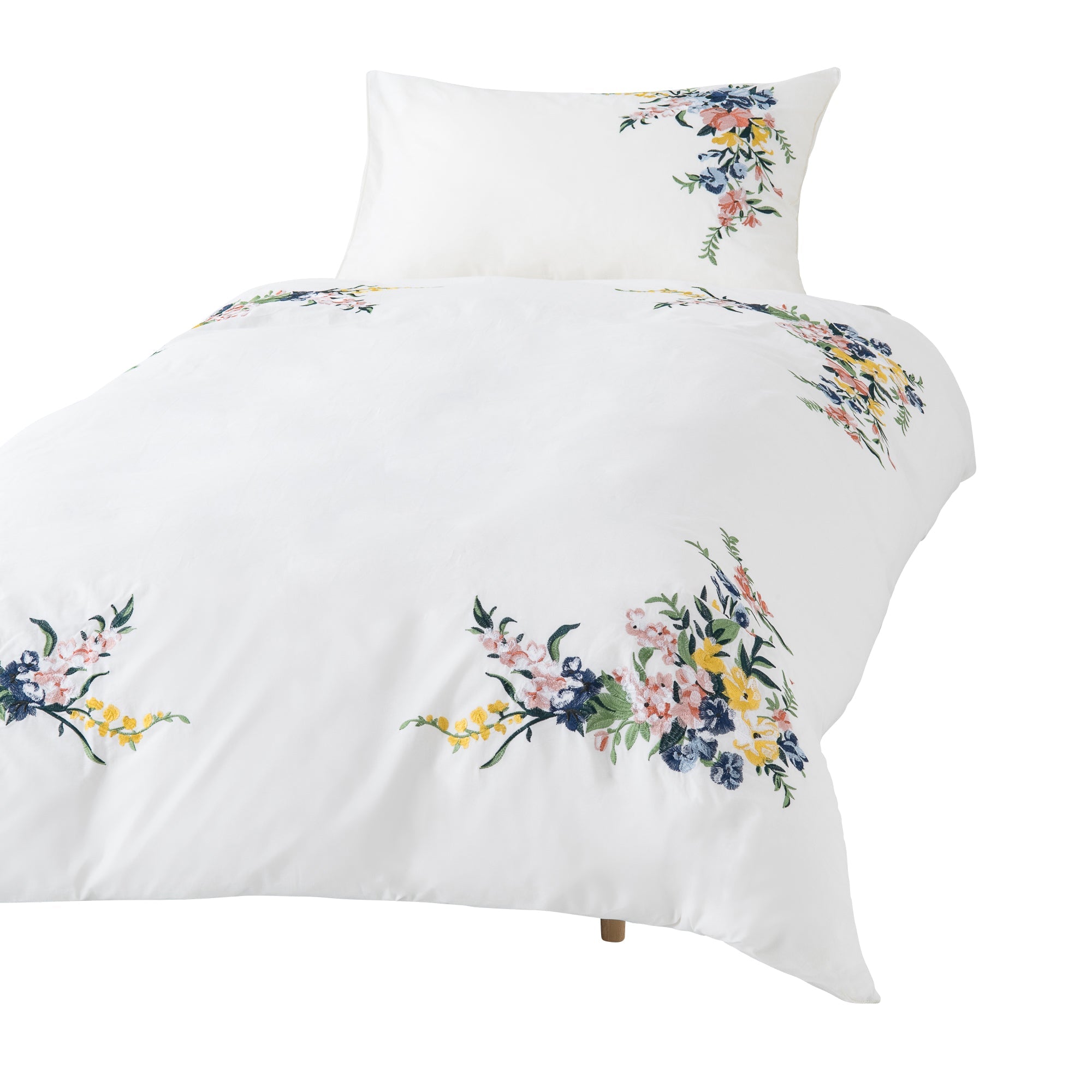 エレガントな花柄を刺繍で表現し、トレンドを取り入れた上品で華やかな掛け布団カバーです。密度の高い刺繍を施し高級感のある仕上がりです。ざっくりした生地感のため肌触りはマットな質感でさらっとしており、暖かくなる季節にぴったりです。ウッド系家具などと合わせて、スローやクッションカバーで差し色を入れるとコーディネートがまとまります。