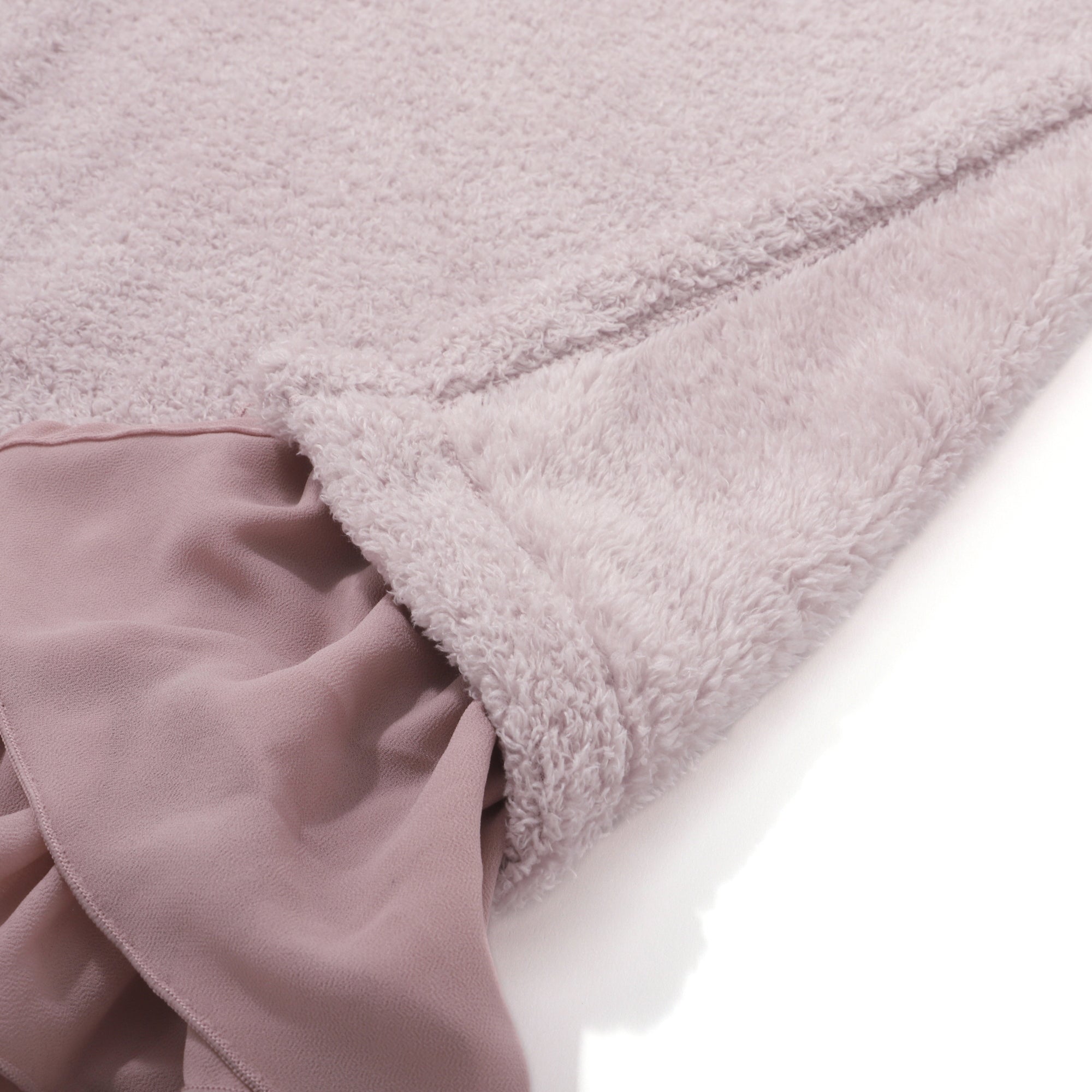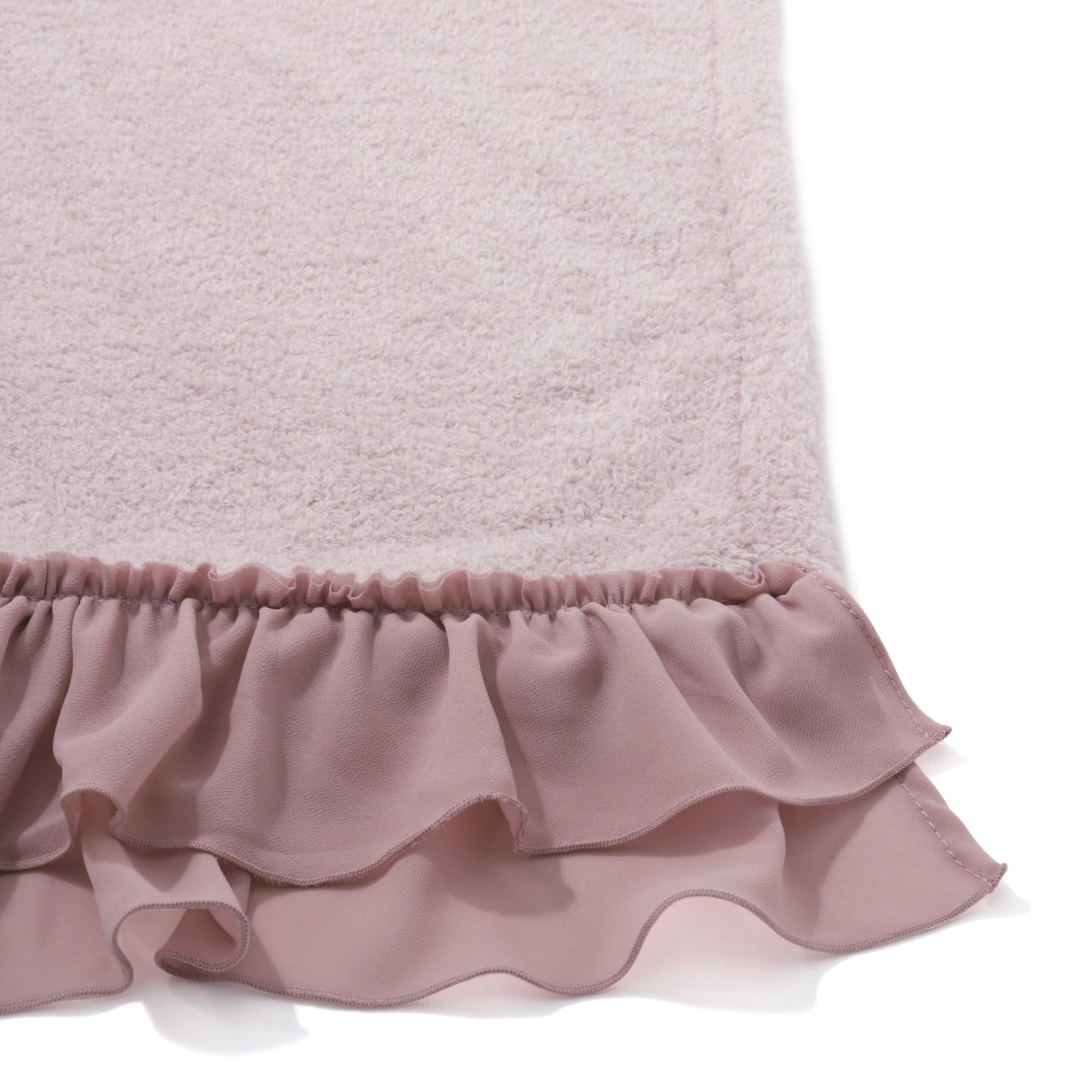 伸び縮みするモコモコ素材に柔らかなシフォン生地のフリルをあしらったスロー(ひざ掛け)です。 ふわふわでやわらかな素材感とフリルの組み合わせがキュート。ずっと触れていたくなる肌触りです。 ソファやベッド周りでのコーディネートはもちろん、オフィスや外出先でも活躍します。