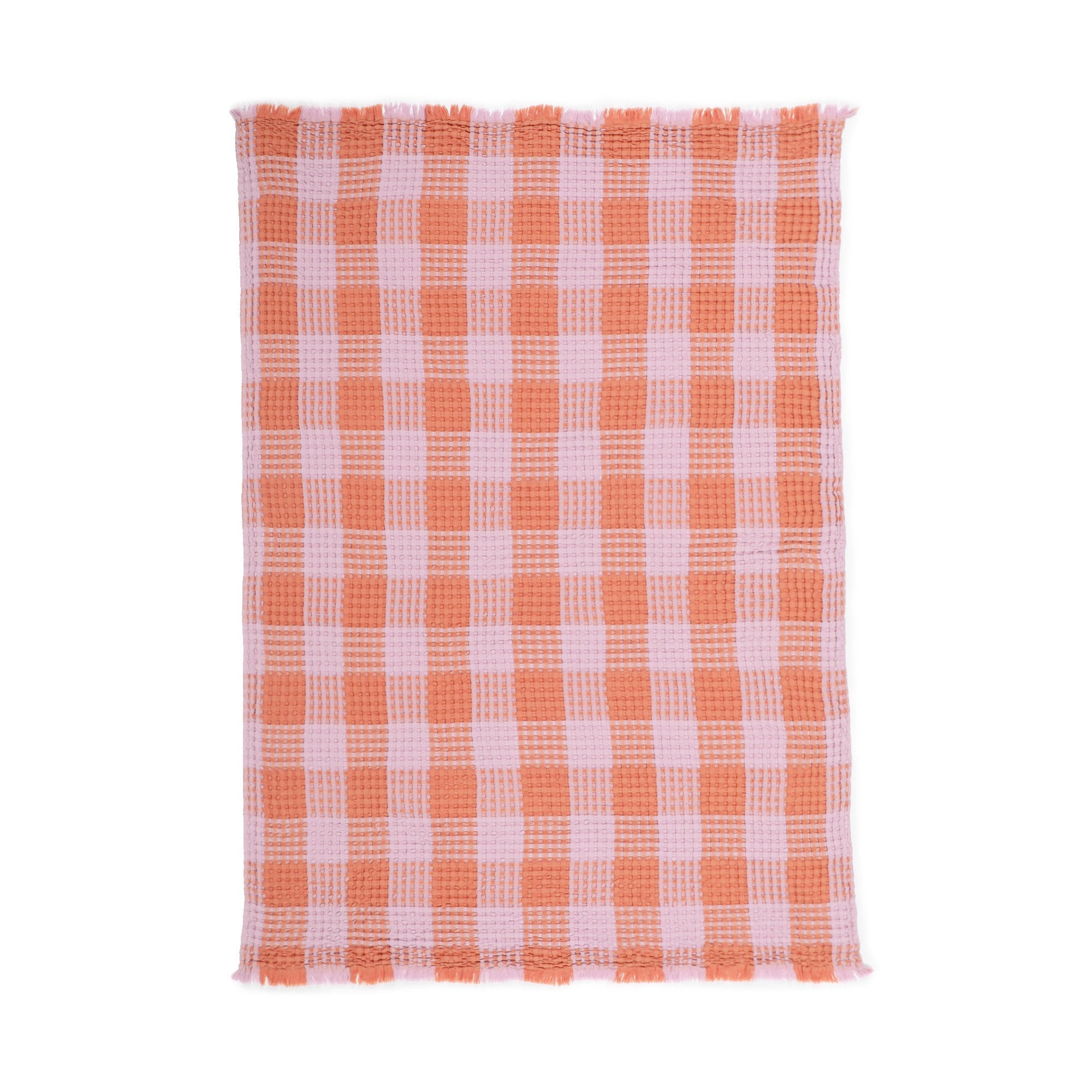 なめらかワッフルチェック スロー(ひざ掛け)1700×1300 ピンク×オレンジ