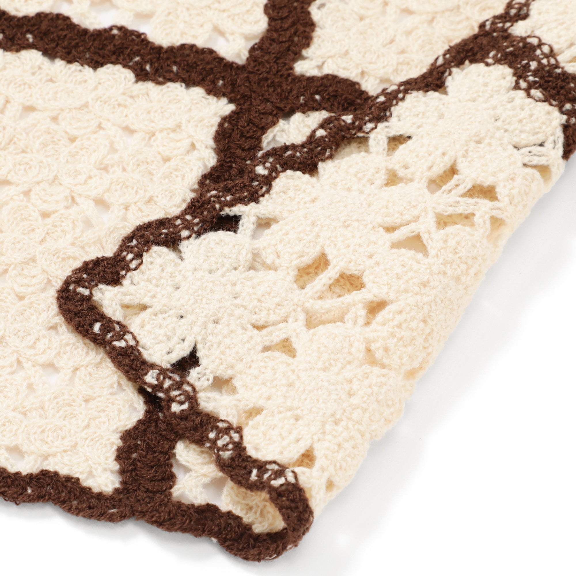 花柄のクロシェ編みを落ち着いた秋色で仕上げたスローです。お花のサイズが大小交互になっているデザイン性の高さがポイントです。ソファやベッドに1枚さっとかけるだけで、まだ暑い季節でも、秋を先取りした素敵なインテリアコーディネートが可能です。