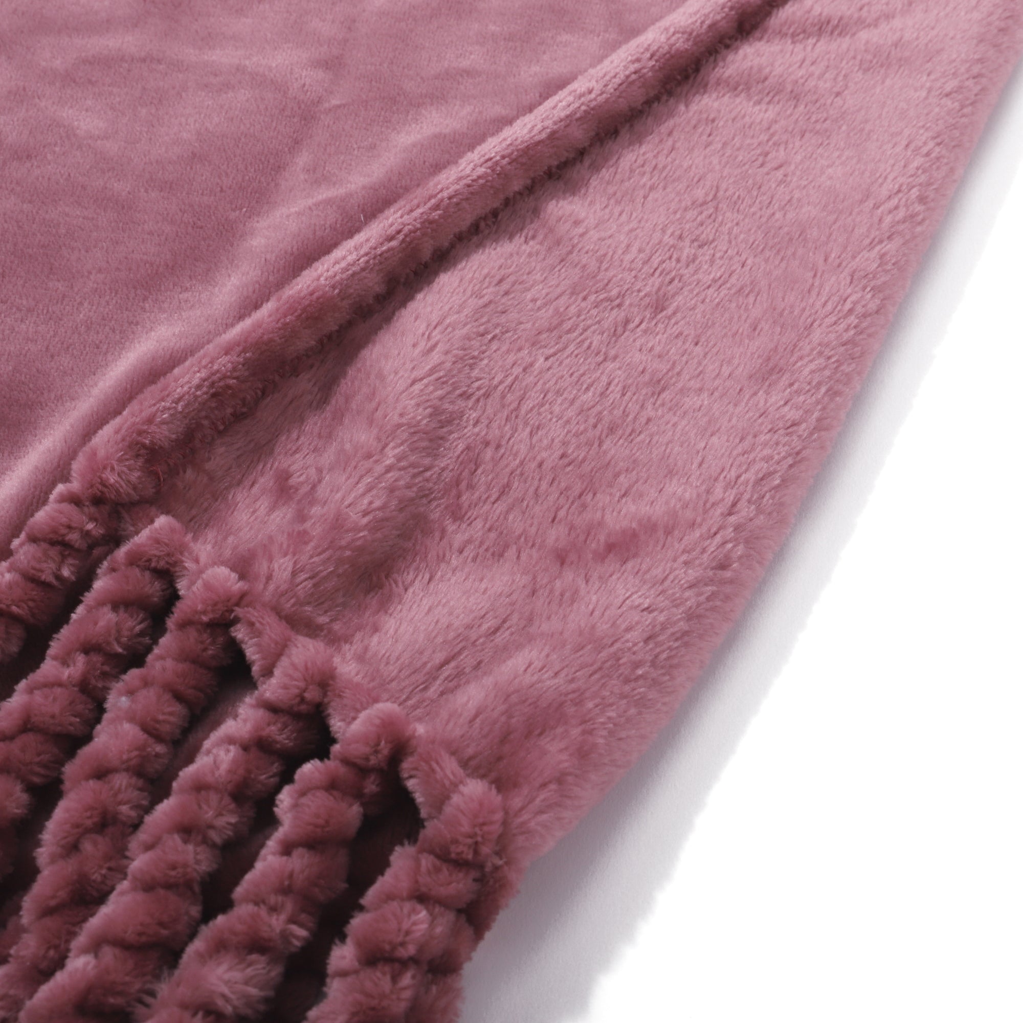ふわふわ、なめらかな触り心地のスロー(ひざ掛け)です。シーンを選ばず使えるカラーで、両端の大きなフリンジがアクセントになっています。