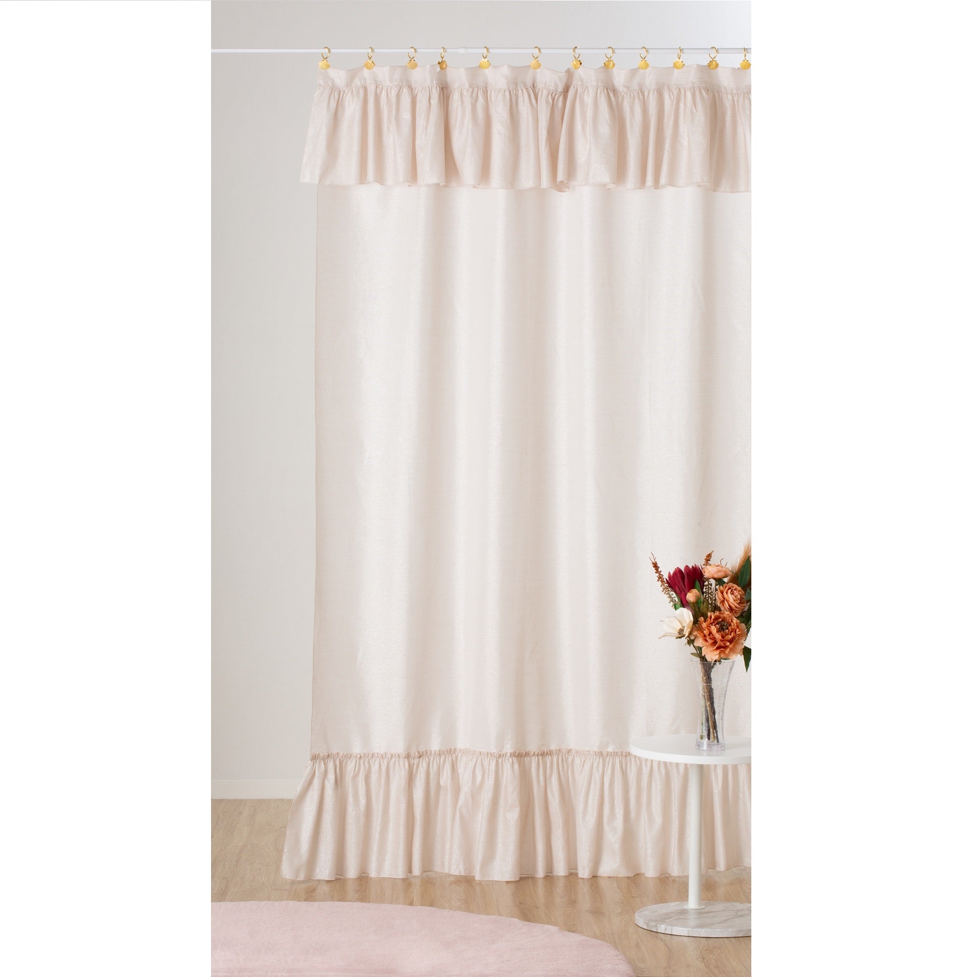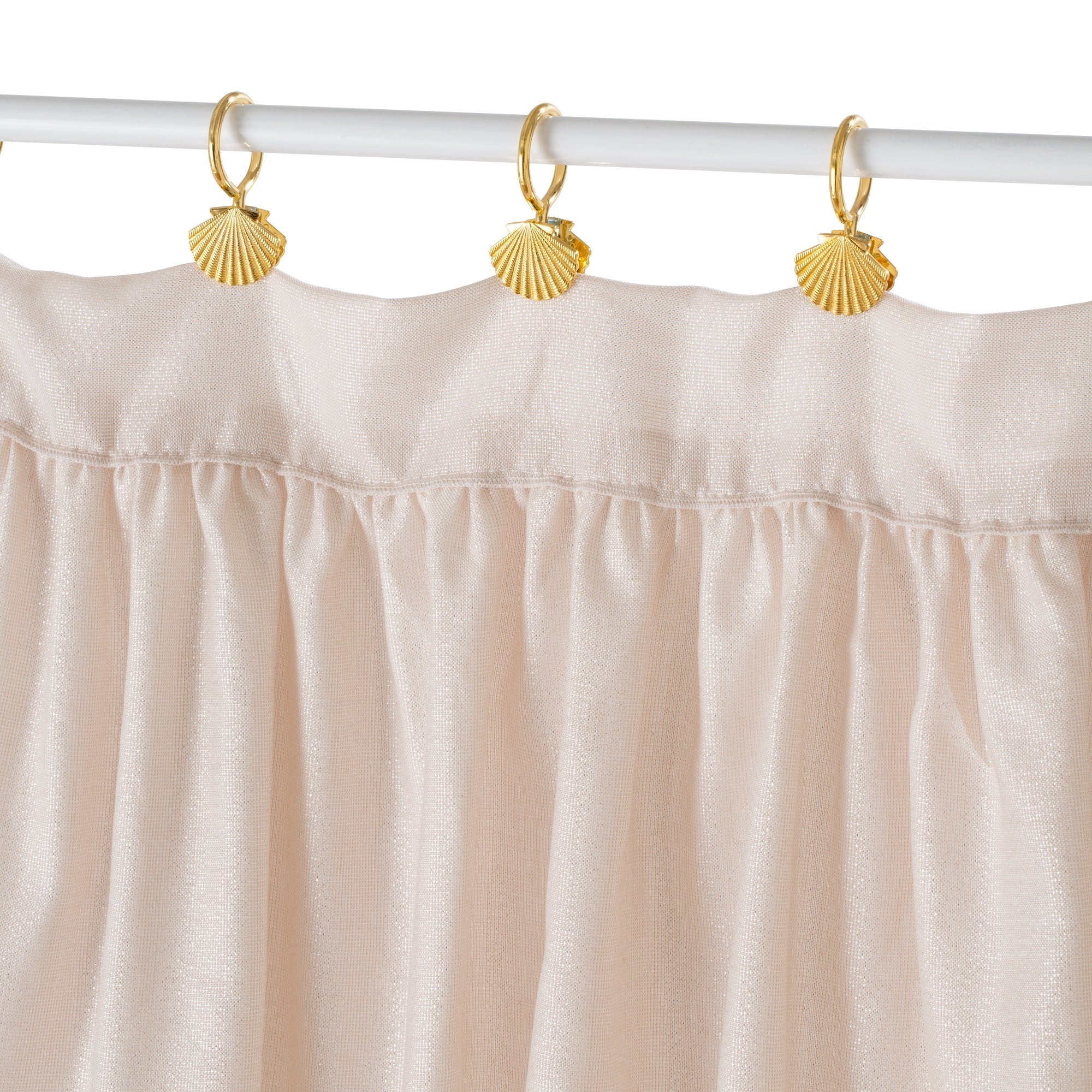 お好きな長さに調整できるアジャスタブルなカーテンです。 ラメを散りばめた生地とフリルがエレガント。 端を折り返してクリップで留めることで自由に長さを変えられるから、お引越しで窓の高さが変わっても安心です。 カーテンレールや突っ張り棒と組み合わせてお使いください。 大きな1枚の布状なので、アイデア次第でソファカバーやベッドカバーにも活用できます。 ※カーテンは全て1枚での販売です。2枚入りではございません。 ▼吊り下げに使用しているクリップはこちら シェル クリップランナー リング 50×30 ゴールド(3個セット)