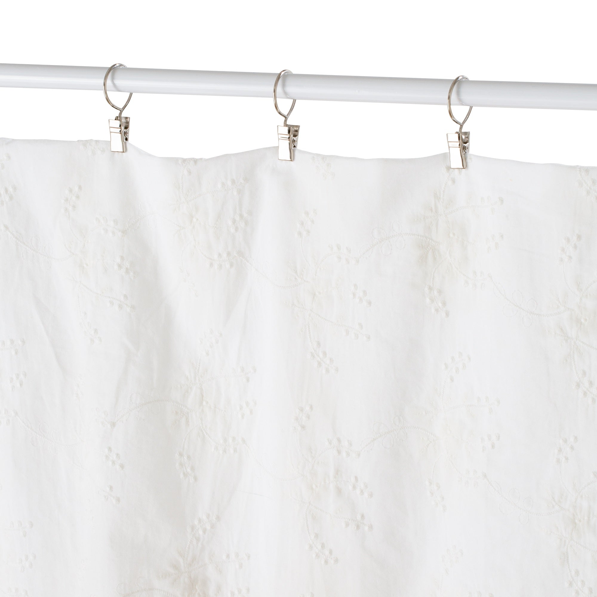 折り返してクリップで留めて使用することで、お好きな高さに調整できるアジャスタブルカーテンです。 大きな1枚布形状なので、ソファカバーやベッドカバーにもご利用いただけます。 立体的なお花刺繍が特徴の、デザインにこだわったアイテムです。 ※カーテンは全て1枚での販売です。2枚入りではございません。 ▼吊り下げに使用しているクリップはこちら シンプル クリップランナー リング 50×8 シルバー(6個セット)