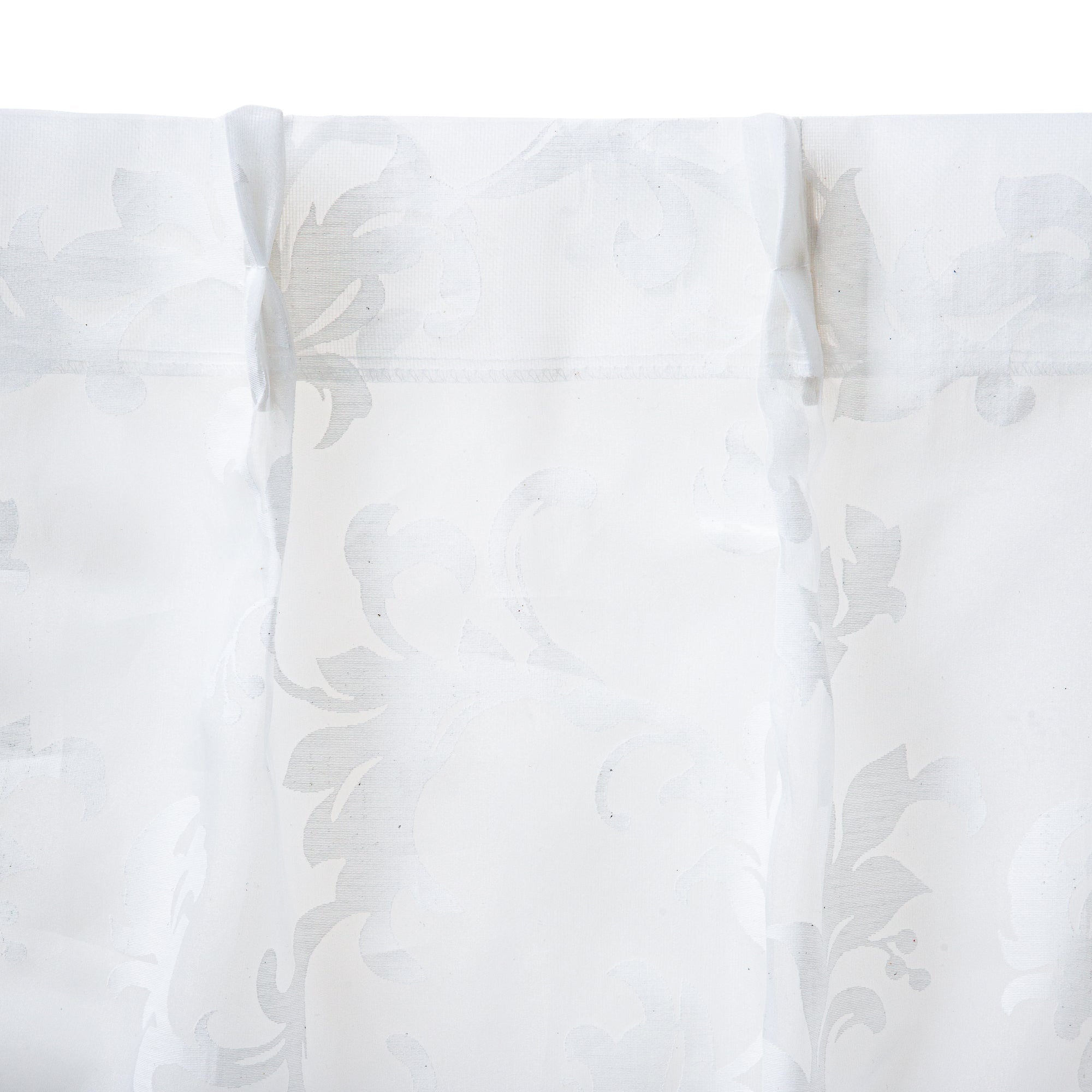 唐草模様のオパールプリントが美しいレースカーテンです。 主張しすぎない上品なレースカーテンなので、どんなインテリアとも相性抜群。また、無地・柄物どちらのドレープカーテンと組み合わせてもお洒落に決まるため、お持ちのドレープカーテンと合わせても素敵に。日光の入り方によって、唐草模様のデザインの雰囲気が変わるため、季節問わずお部屋を彩ります。さらに繊細なデザインが施されているレースカーテンでありながら、単独であれば洗濯できる点も魅力です。カーテンのサイズは幅1m✕丈1.33m、幅1m✕丈1.76m、幅1m✕1.98mの3種類展開のため、お部屋の窓に合わせて選ぶことが可能です。この商品は幅1m✕丈1.33mのものになります。 カーテンフックはアジャスタータイプで、ご自宅のカーテンレールの高さに合わせて調節可能。 カーテンをまとめることができるタッセル付き。レースカーテンと同様に上品な唐草模様のデザインなので、無地・柄どちらのドレープカーテンに合わせてもお洒落です。 アジャスタータイプのフックを取り付けられるレースカーテンのため、賃貸物件でもご使用可能です。 程よい透け感のあるレースカーテンに仕上がっています。
