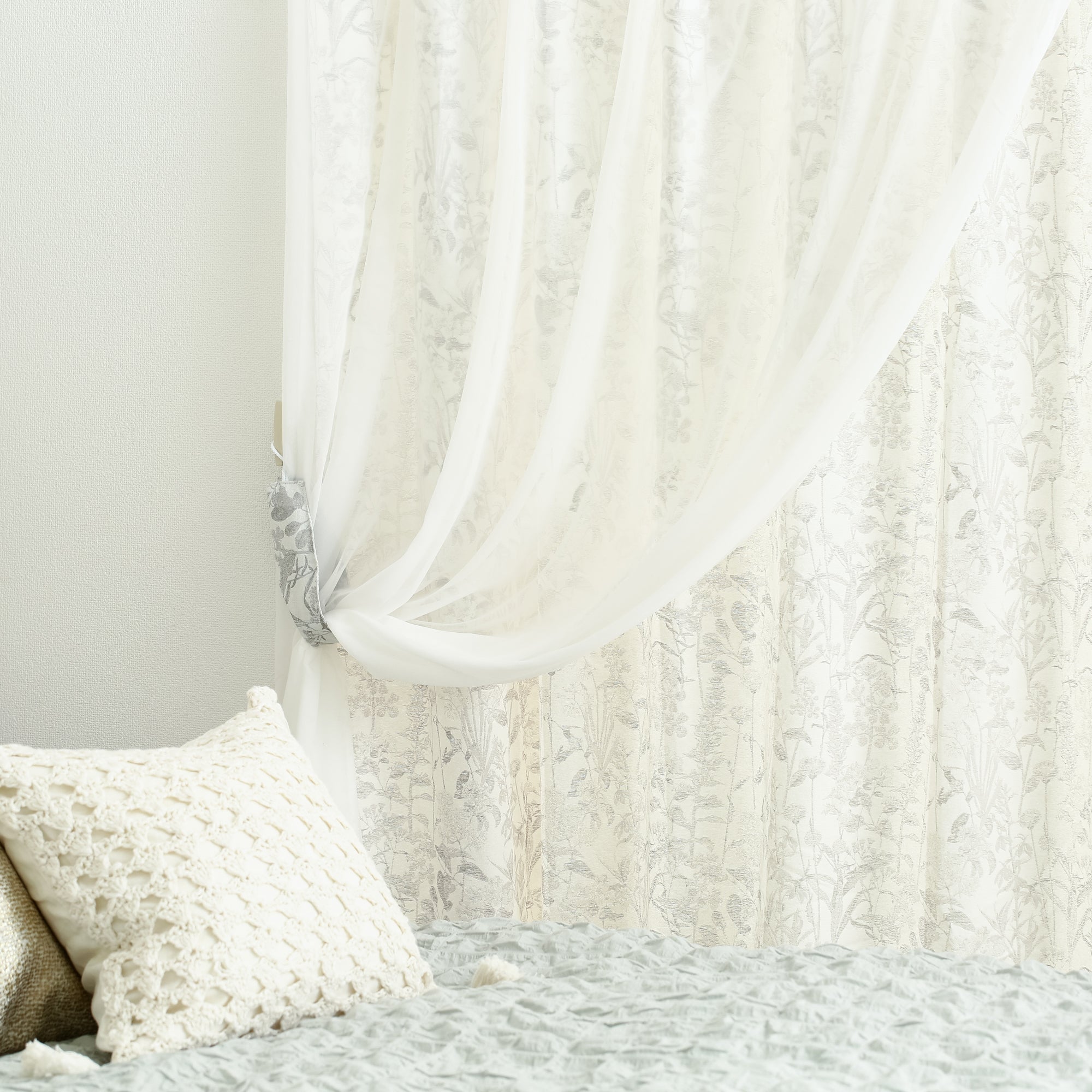 柄物ドレープ×無地レースを組み合わせたダブルカーテンです。 美しいボタニカル柄をジャガードで織り上げたドレープ生地が特徴です。 レース生地は独特のとろみがある、美しい落ち感の生地を使用しています。 ナチュラルテイストなインテリアのポイントとして取り入れて頂けます。 ※カーテンは全て1枚での販売です。2枚入りではございません。 ※こちらの商品は店舗でのイージーオーダー対象外です。