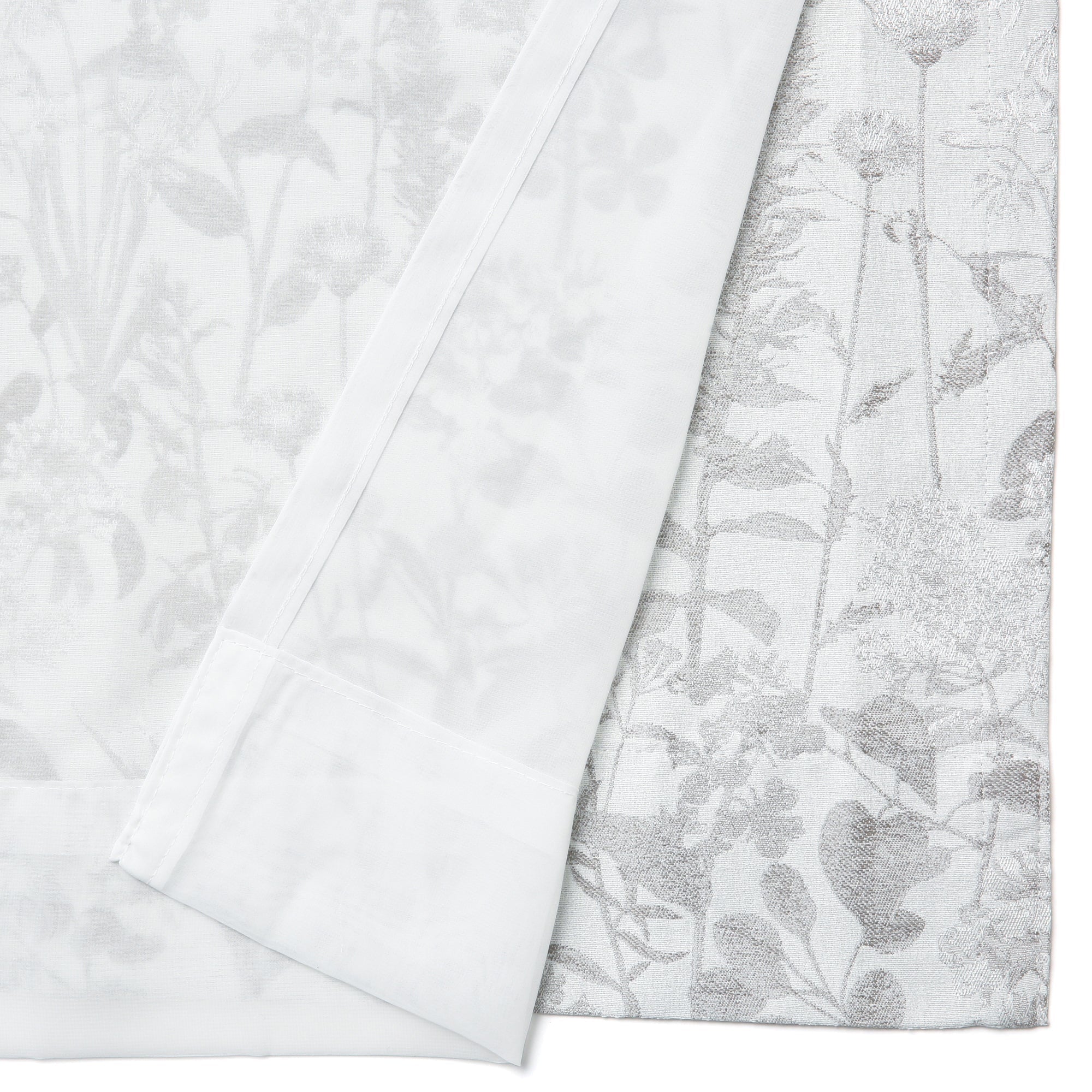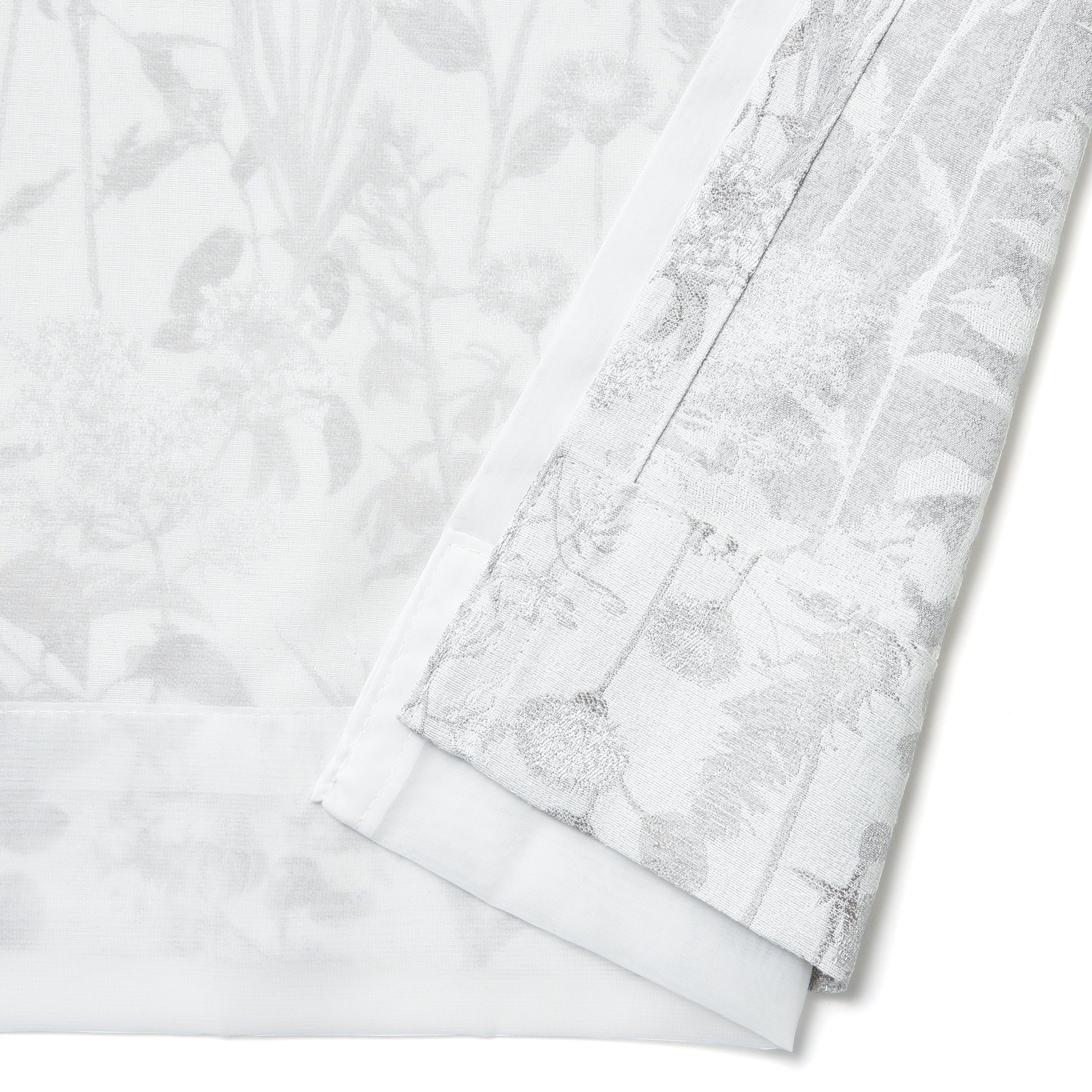 シフォン×ボタニカル ダブルカーテン H1780×W1000 ライトグレー(レース&ドレープ/既製)