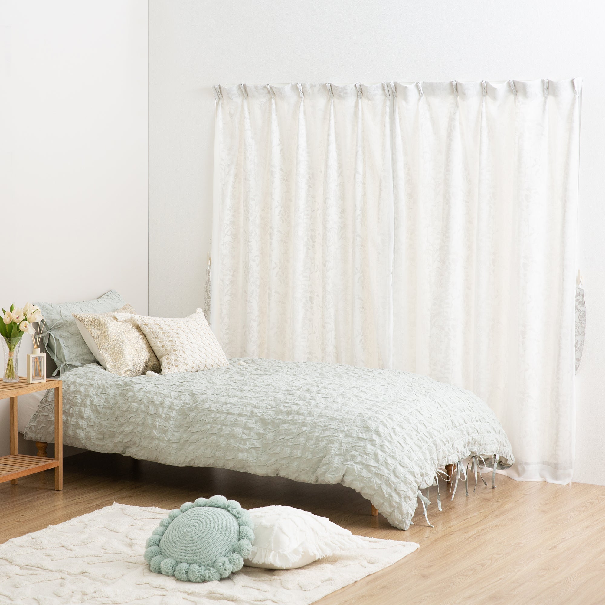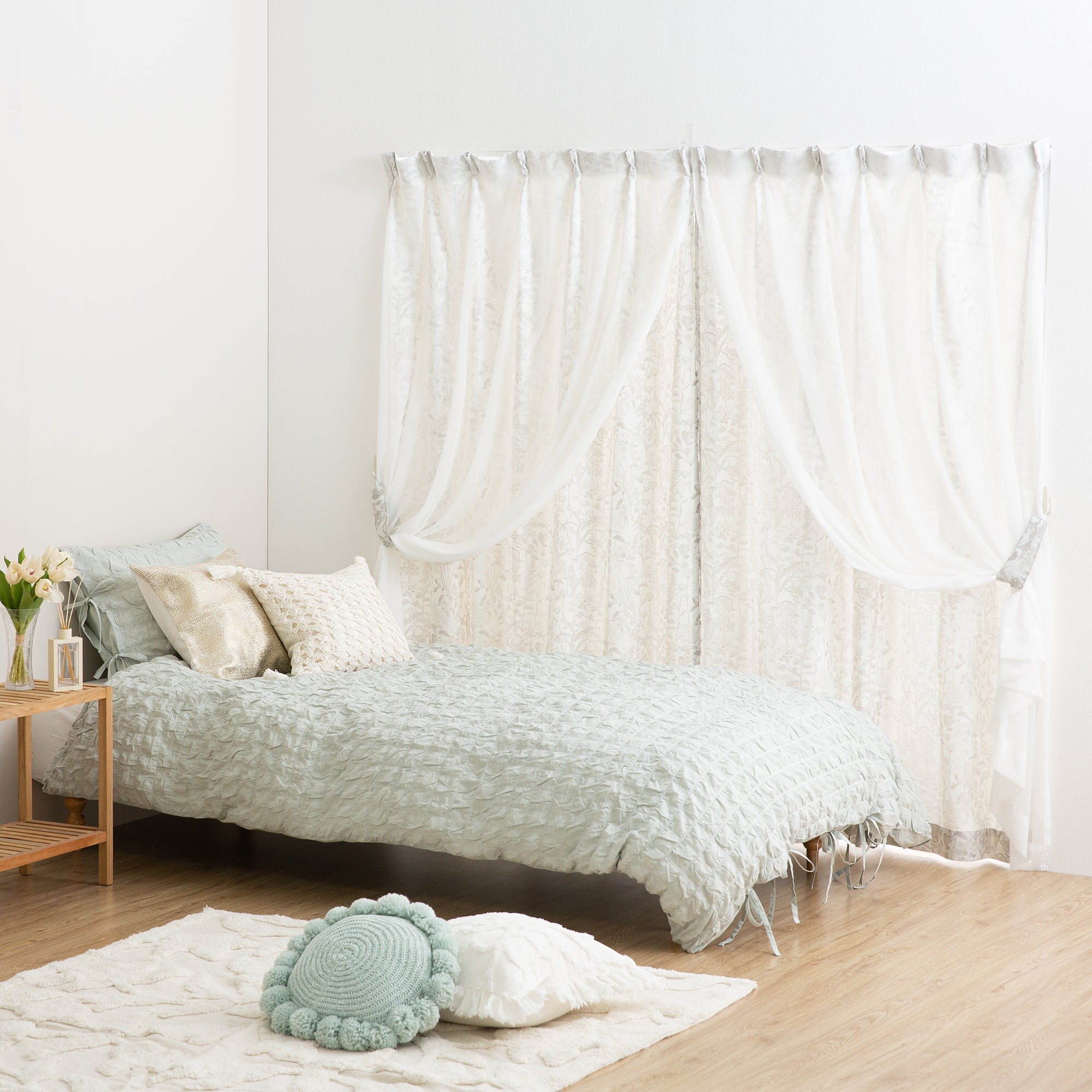柄物ドレープ×無地レースを組み合わせたダブルカーテンです。 美しいボタニカル柄をジャガードで織り上げたドレープ生地が特徴です。 レース生地は独特のとろみがある、美しい落ち感の生地を使用しています。 ナチュラルテイストなインテリアのポイントとして取り入れて頂けます。 ※カーテンは全て1枚での販売です。2枚入りではございません。 ※こちらの商品は店舗でのイージーオーダー対象外です。