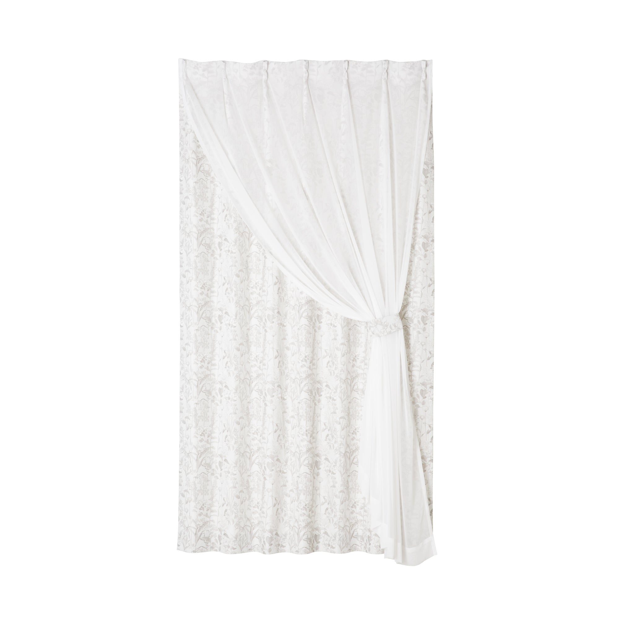 シフォン×ボタニカル ダブルカーテン H2000×W1000 ライトグレー(レース&ドレープ/既製)