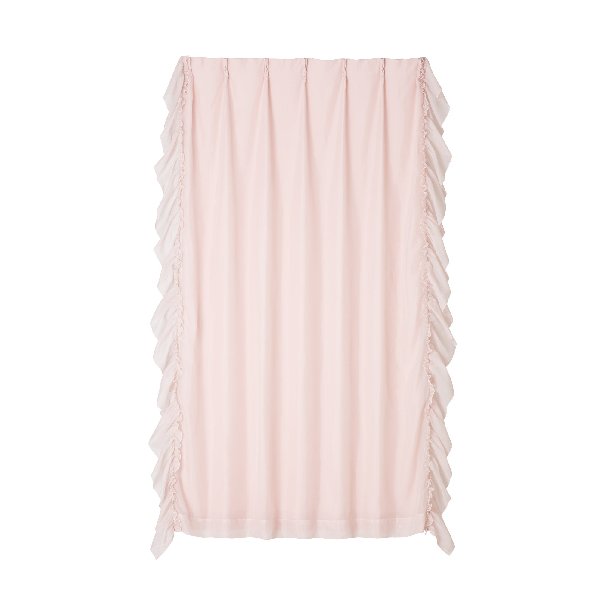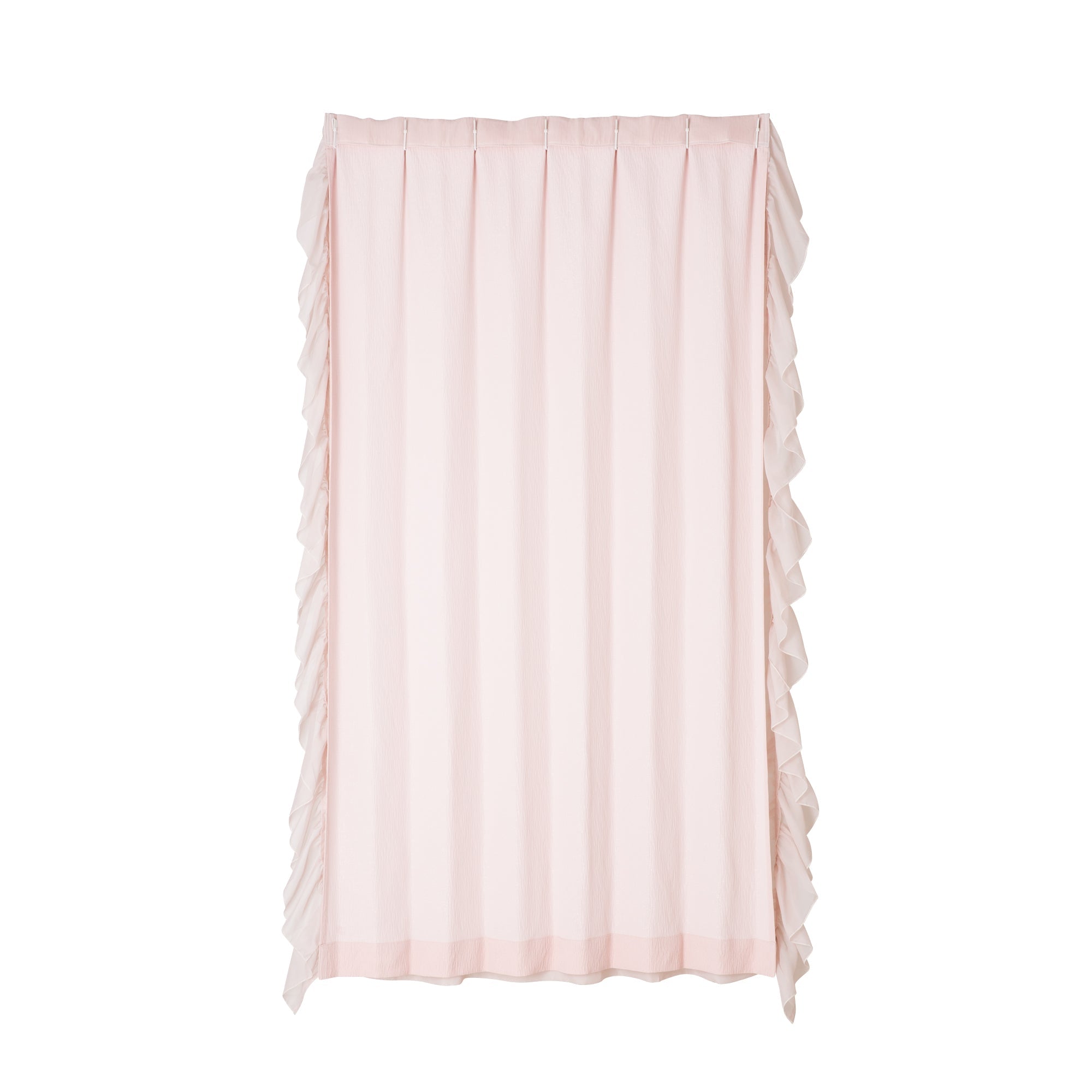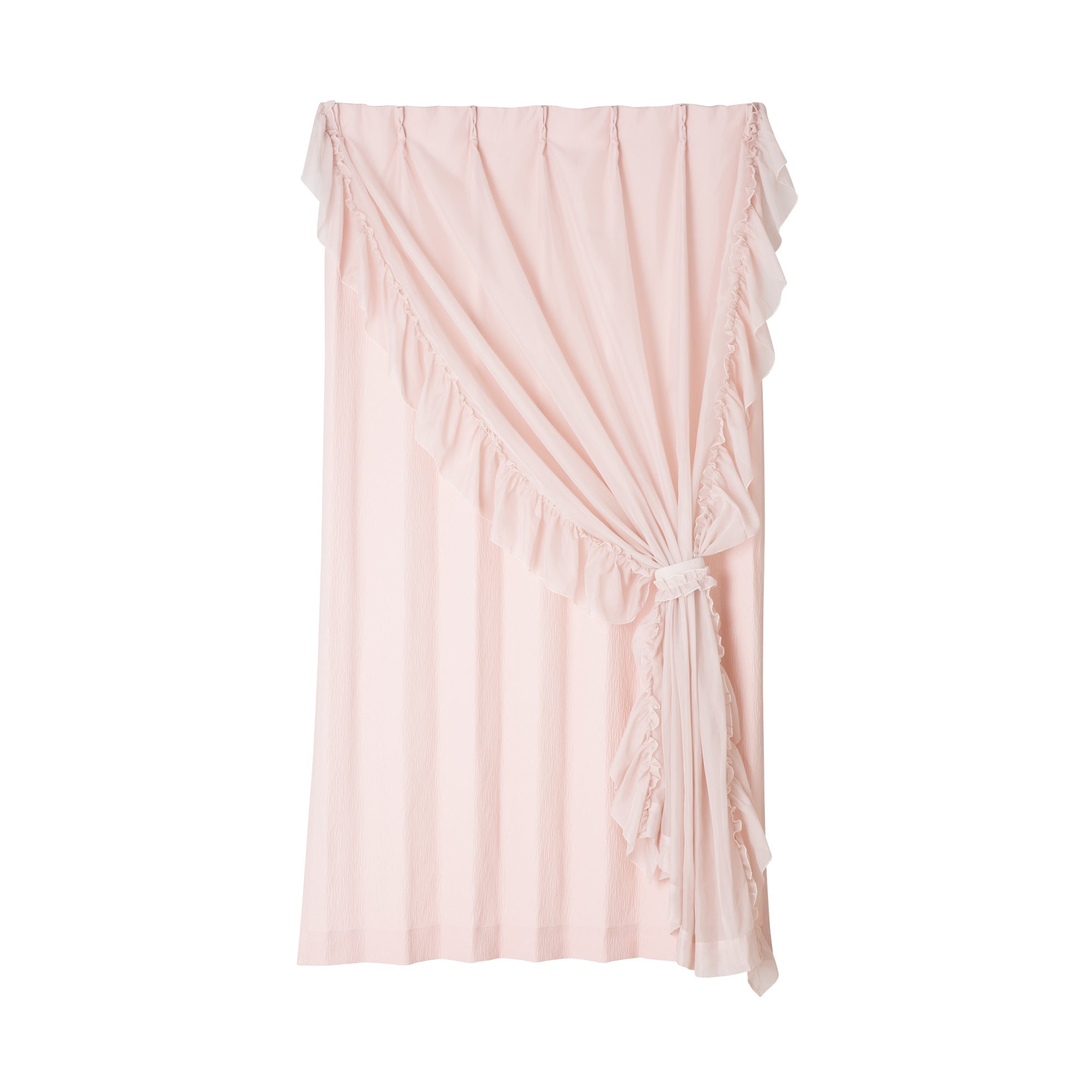 レースの両サイドにフリルをあしらったスイートなデザインのダブルカーテンです。 サイドのフリルを長めにとることで、たっぷりとした生地の落ち感が楽しめます。 タッセルにもフリルをあしらい、細部まで抜かりなくスイートに仕上げています。 ドレープ生地には上品に輝くラメとシボ加工を施しており、無地ながらもこだわりのある生地感になっています。 フリルの小物などと合わせると一層スイートで華やかな印象になるのでおすすめです。 ※カーテンは全て1枚での販売です。2枚入りではございません。 ※こちらの商品は店舗でのイージーオーダー対象外です。