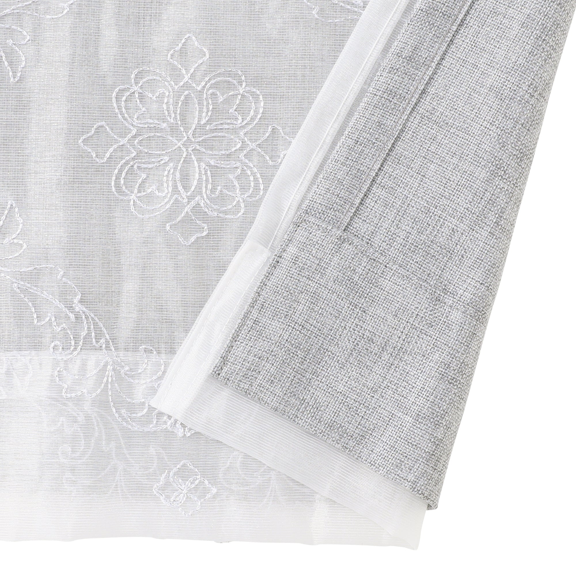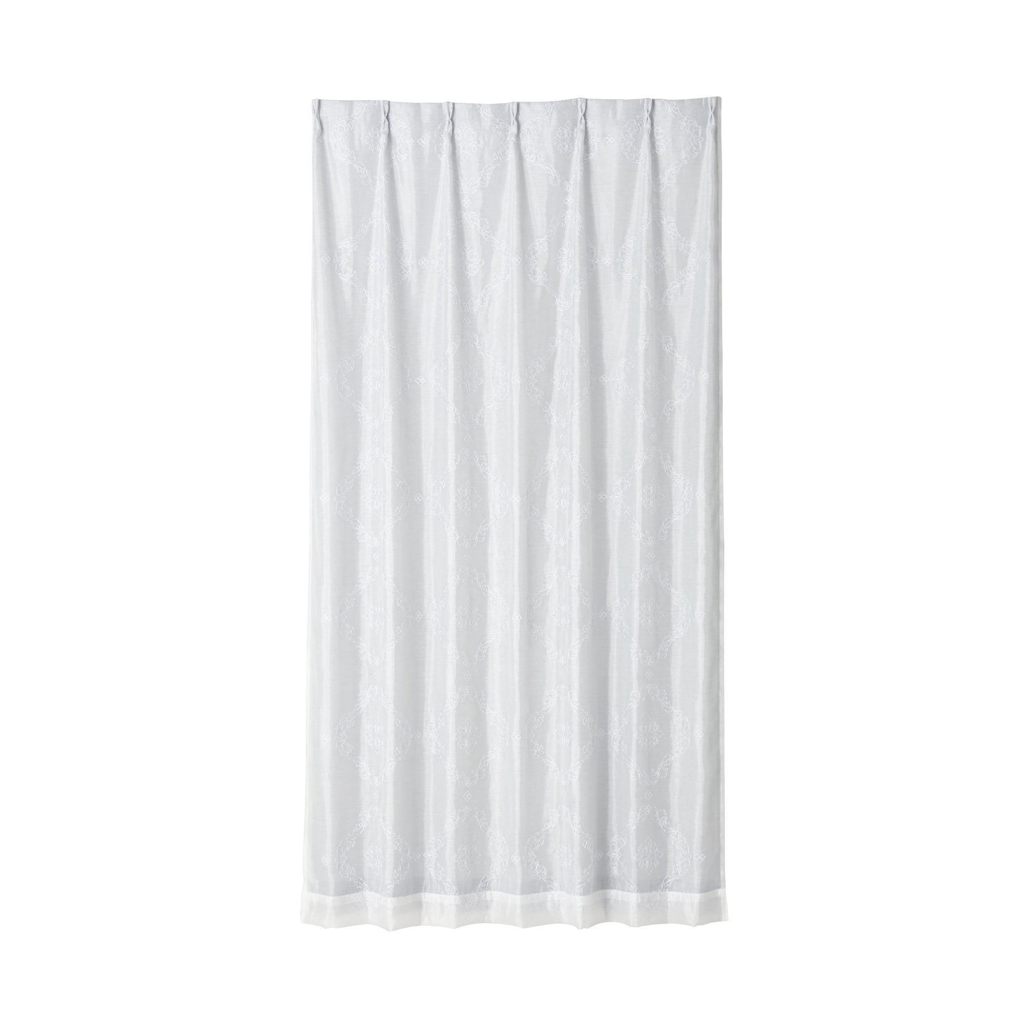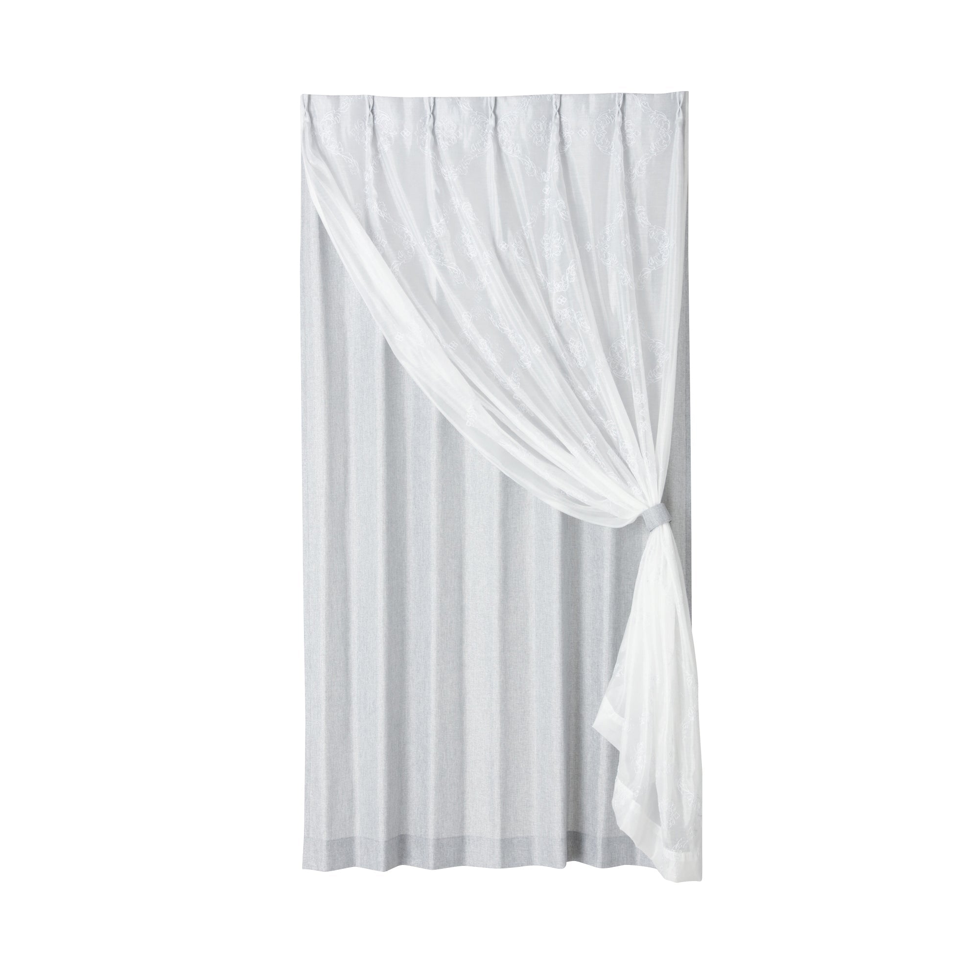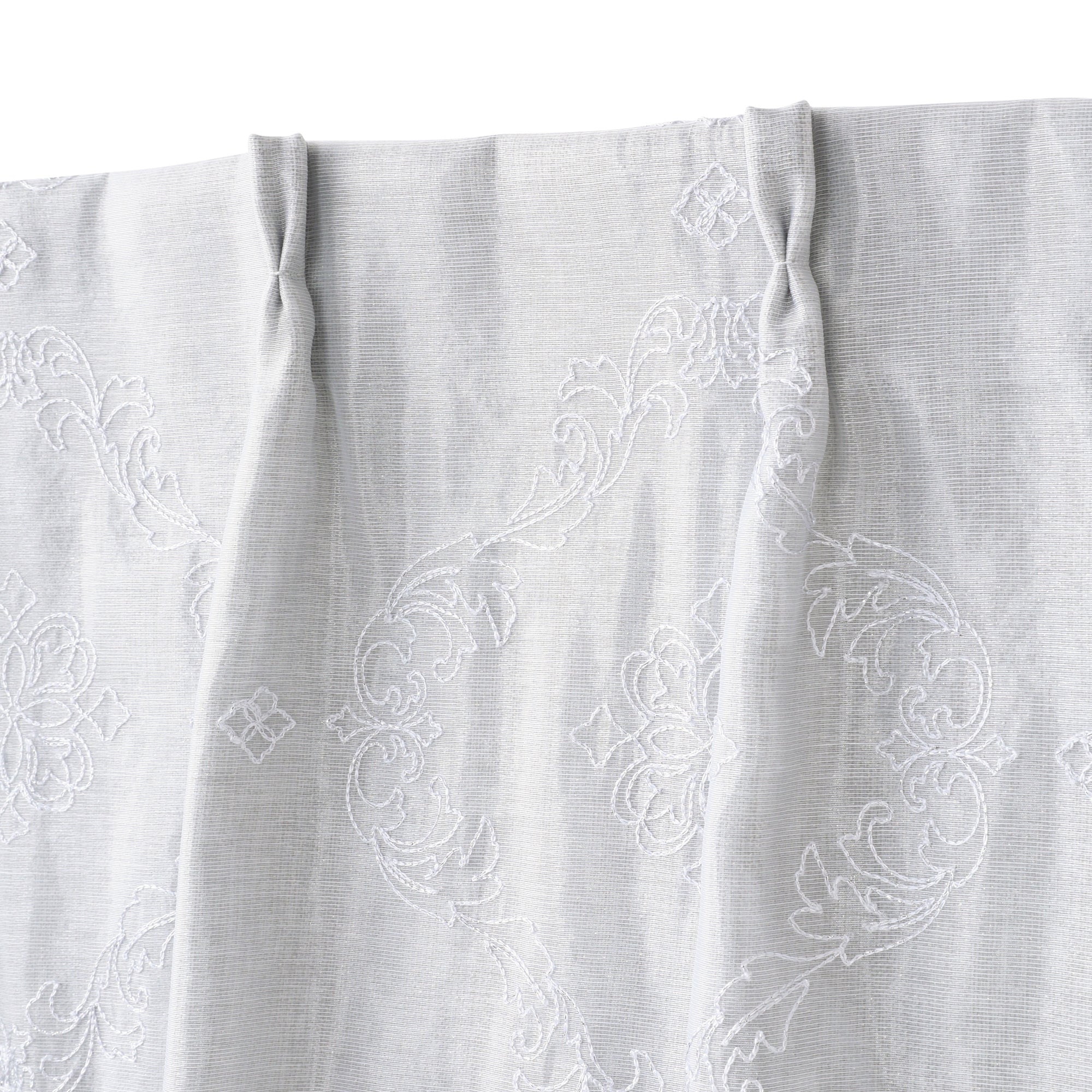 刺繍入りのレースをシンプルなドレープ生地に重ねたダブルカーテンです。 レースは光沢感のある生地にラメ糸でオーナメントの刺繍を施した高級感のあるデザイン。 どんなお部屋にも合わせやすい、アイボリーとグレーの2色展開です。 ※カーテンは全て1枚での販売です。2枚入りではございません。