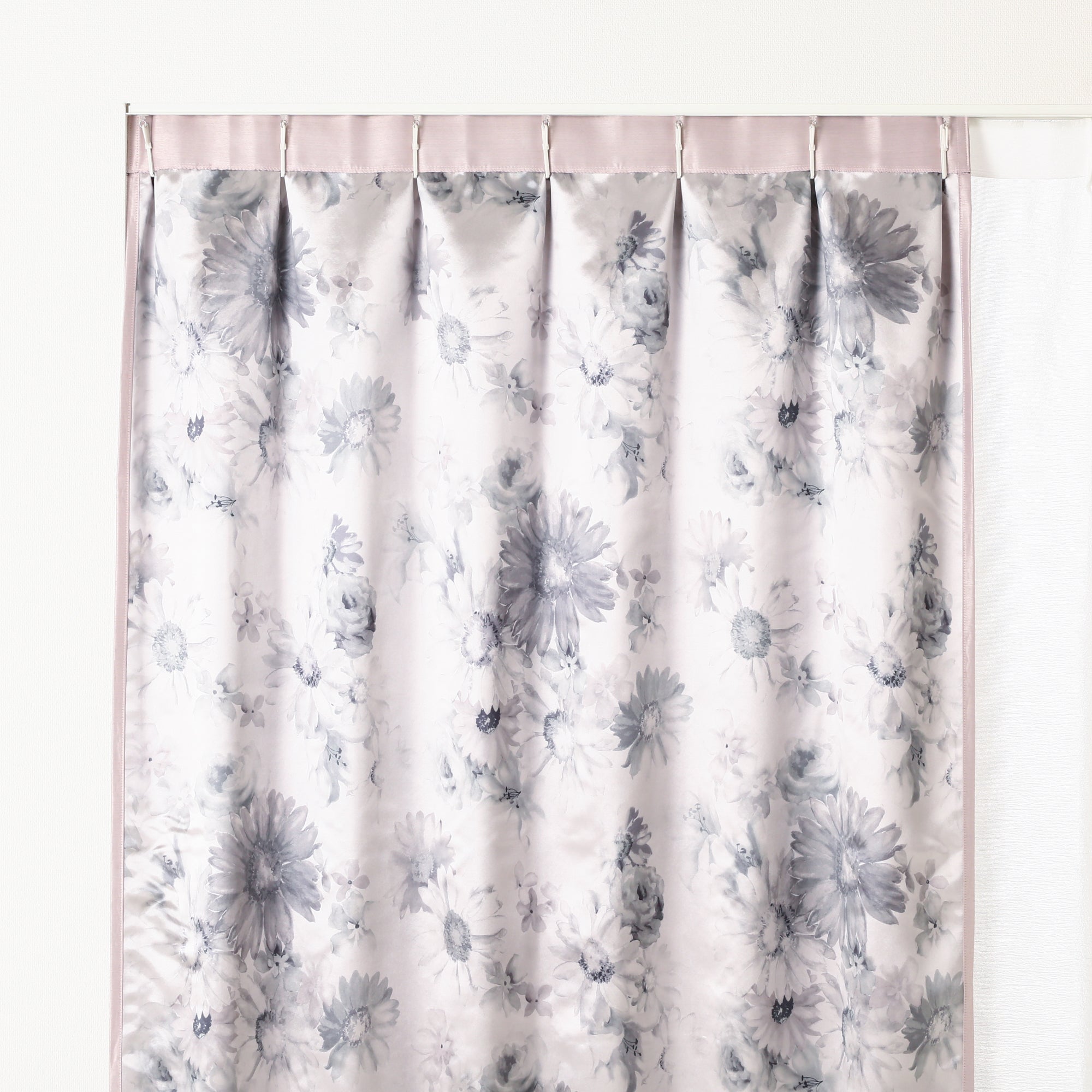 生地の裏側(お部屋の外側)にお花柄をプリントした、デザイン性の高い遮光カーテンです。 光沢のある素材感で洗練された印象です。 ※光の当たり方によって色味が異なります。様々な表情をお楽しみください。 ※カーテンは全て1枚での販売です。2枚入りではございません。 ▼オーダーカーテンはこちら スペイシアオーダーカーテン ライトピンク