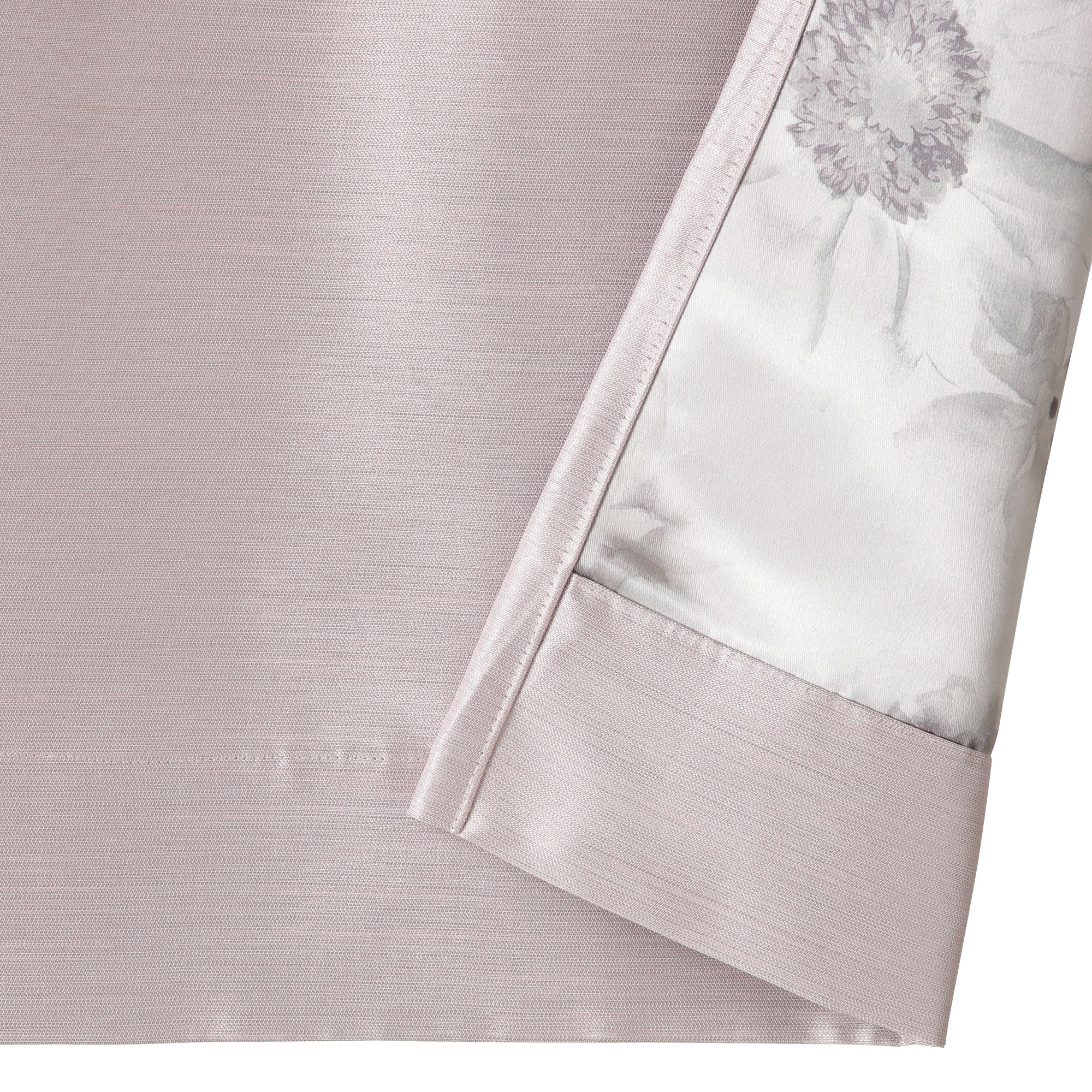 表のシャンタンの上品な無地と裏面の光沢感のある花柄プリント地の2つのデザインが楽しめる、贅沢なカーテンです。 お部屋側は落ち着いたピンクで大人可愛い、洗練された印象に。 お部屋の外側がお花柄なので、外から見た際もおしゃれです。 遮光2級・遮熱効果があるので西日の強いお部屋や寝室にもおすすめ。冷暖房の省エネにつながります。 おうちで洗濯できるのも嬉しいポイント。いつも清潔にお使いいただけます。 美しいラインを描くドレープやアジャスター付きのフックなど、細かい部分までこだわりました。 同色のタッセルもついているのですぐお使いいただけます。 おしゃれで機能的なカーテンをお探しの際は、ぜひ手に取っていただきたいアイテムです。 ※光の当たり方によって色味が異なります。様々な表情をお楽しみください。 ※カーテンは全て1枚での販売です。2枚入りではございません。 ▼オーダーカーテンはこちら スペイシアオーダーカーテン ライトピンク