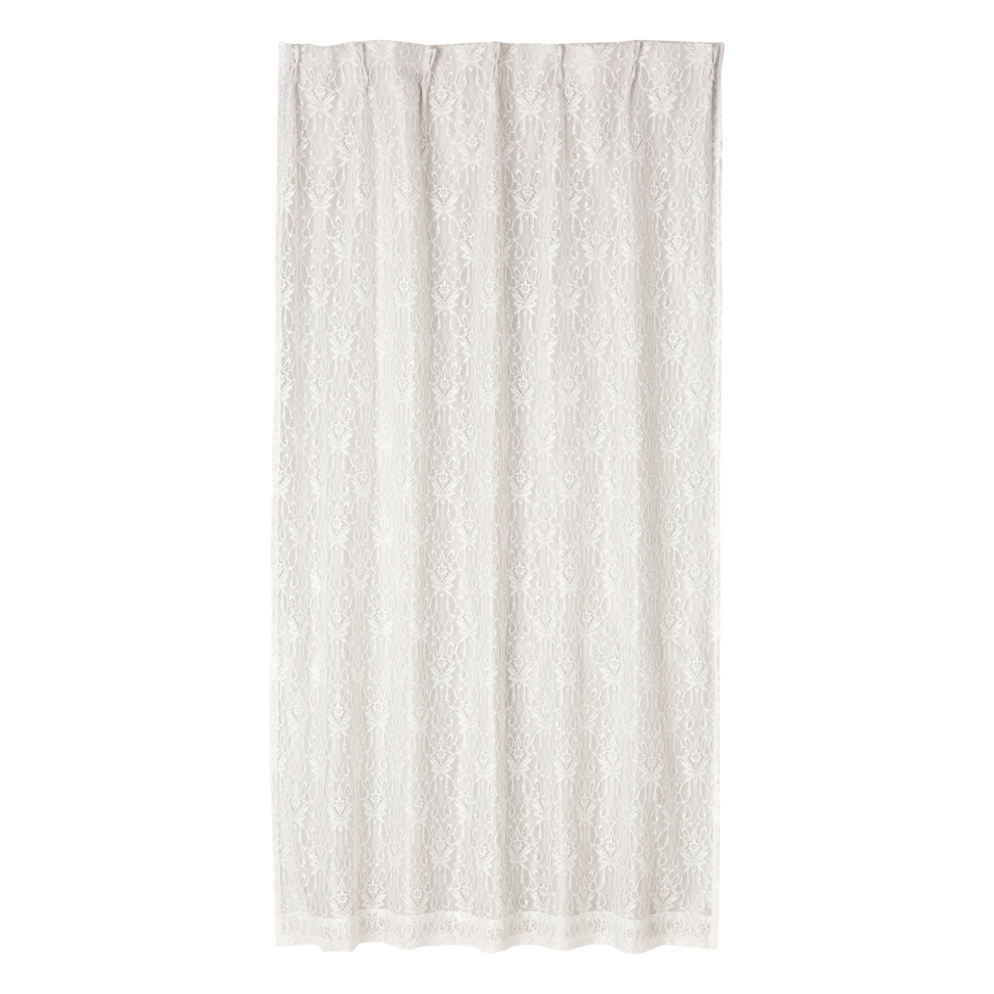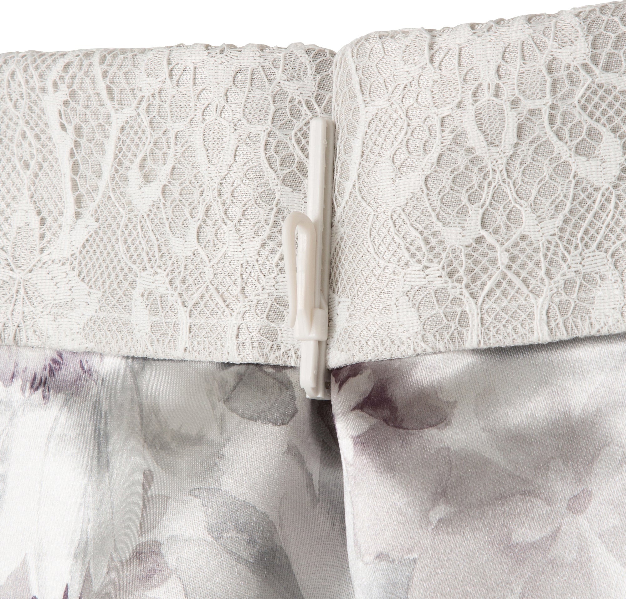 レースとドレープがもともと2重になっている、新しいタイプのカーテンです。 フェミニンなレースと光沢のあるドレープを重ねる事で、ドレスのような女性らしいデザインとなっています。 レースのみをまとめればドレープとして、ドレープのみをまとめればレースとしてご使用いただけます。 ※カーテンは全て1枚での販売です。2枚入りではございません。 ※こちらの商品は店舗でのイージーオーダー対象外です。 ドレープの裏面にはシックな花柄がプリントされております。 カーテンをまとめたときや風が吹いたときにチラッと見える花柄がまた違った印象を与えてくれます。 一枚で、様々な表情が楽しめるカーテンです。 付属のフックで約5.5㎝長さの調節が可能です。