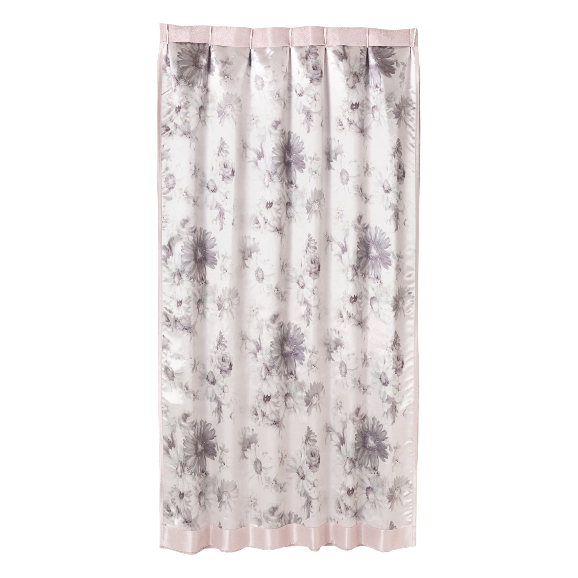 レースとドレープがもともと2重になっている、新しいタイプのカーテンです。 フェミニンなレースと光沢のあるドレープを重ねる事で、ドレスのような女性らしいデザインとなっています。 レースのみをまとめればドレープとして、ドレープのみをまとめればレースとしてご使用いただけます。 ※カーテンは全て1枚での販売です。2枚入りではございません。 ※こちらの商品は店舗でのイージーオーダー対象外です。 ドレープの裏面にはシックな花柄がプリントされております。 カーテンをまとめたときや風が吹いたときにチラッと見える花柄がまた違った印象を与えてくれます。 一枚で、様々な表情が楽しめるカーテンです。 付属のフックで約5.5㎝長さの調節が可能です。