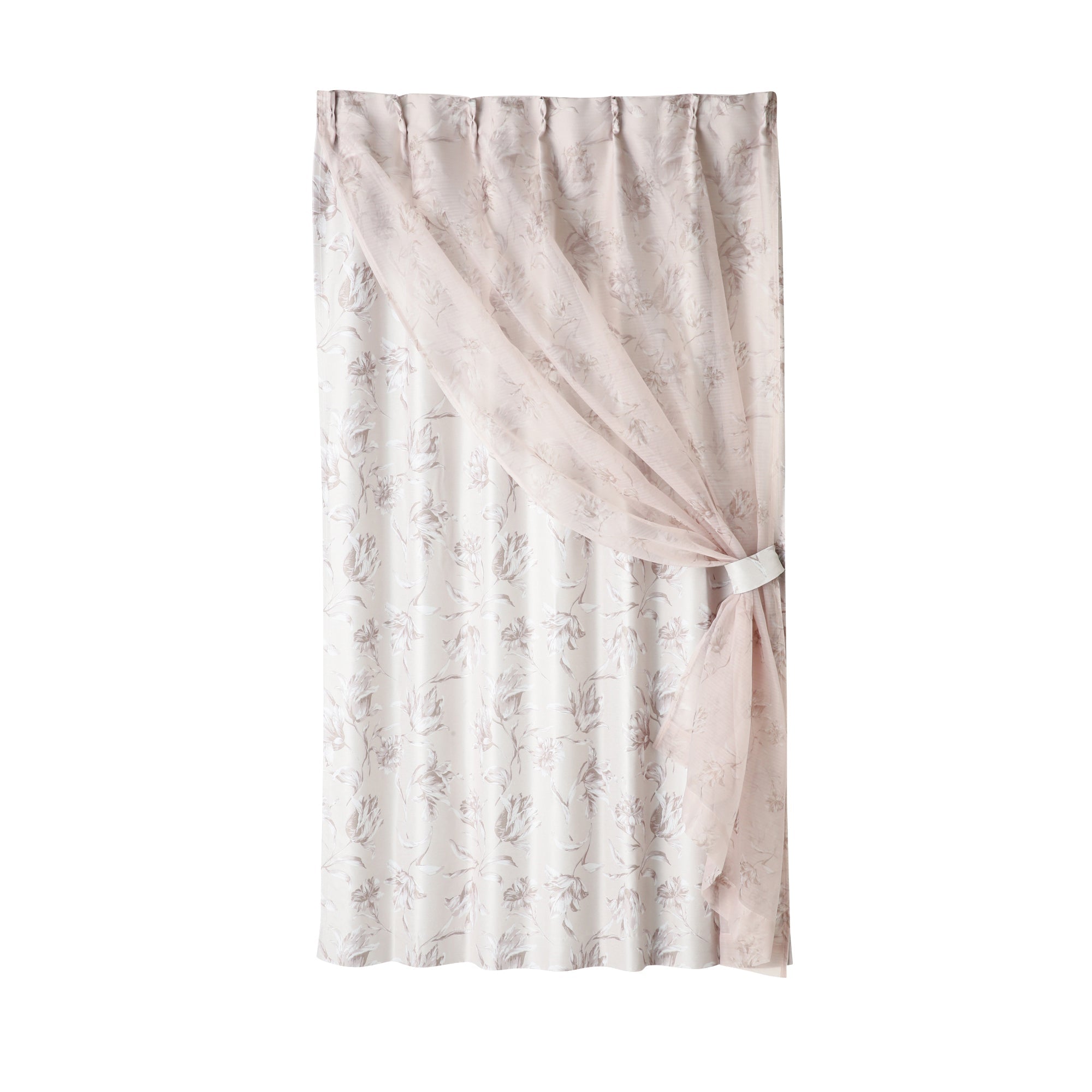 レースとドレープがもともと2重になっている、新しいタイプのカーテンです。 繊細に描かれた花柄がお部屋を上品でエレガントな雰囲気に包み込みます。 レースがお部屋側に付いていて、フェミニンなお部屋を演出できます。 レースのみをまとめればドレープとして、ドレープのみをまとめればレースとしてご使用いただけます。 ※カーテンは全て1枚での販売です。2枚入りではございません。 ※こちらの商品は店舗でのイージーオーダー対象外です。