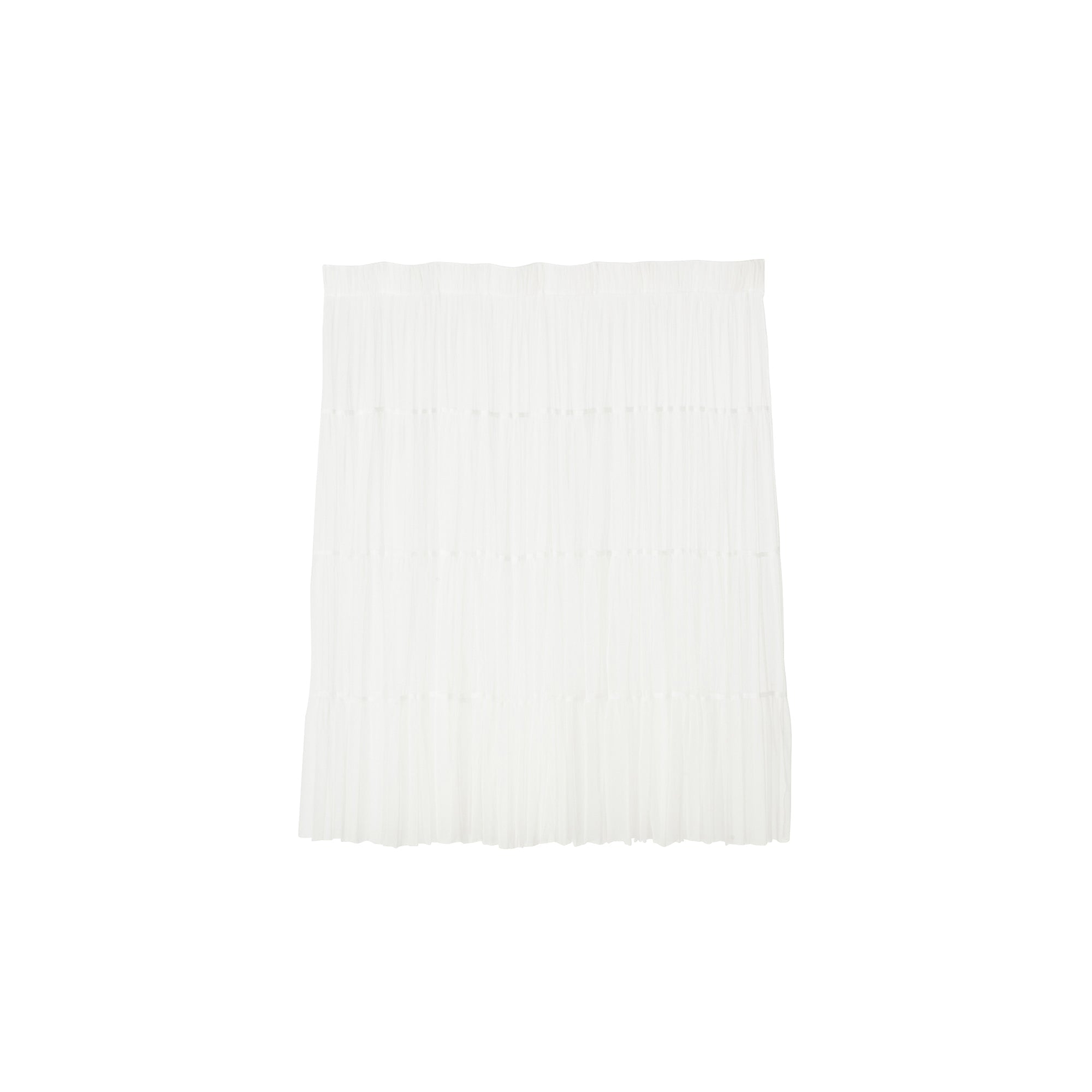 繊細に編まれたチュール生地をふんだんに使用したレースカーテンです。 4段に分かれたティアードがアクセントになっています。 裾部分を切りっぱなしにすることで、チュールの持つラフな雰囲気を表現しています。 お部屋の主役インテリアになれるカーテンです。