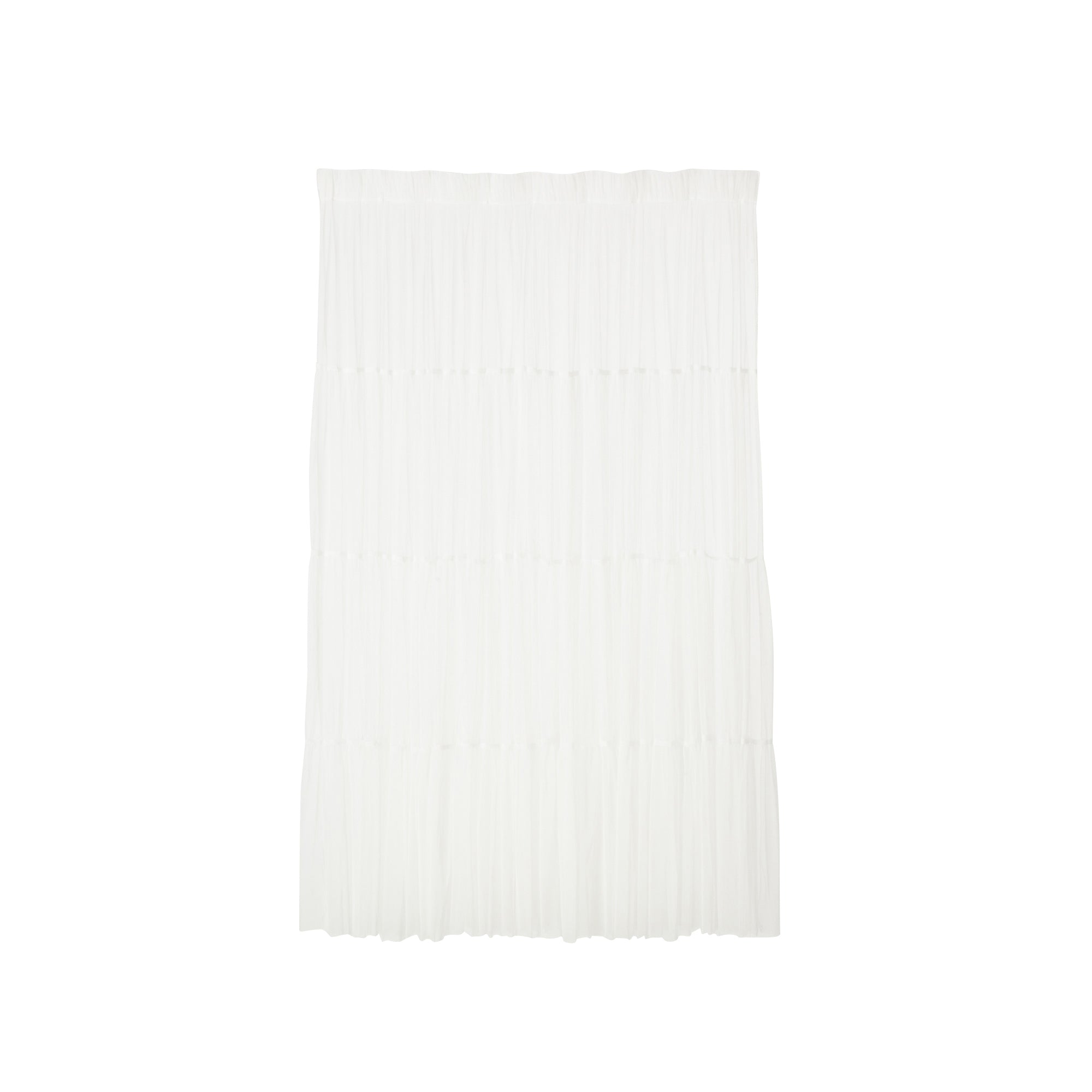 繊細に編まれたチュール生地をふんだんに使用したレースカーテンです。 4段に分かれたティアードがアクセントになっています。 裾部分を切りっぱなしにすることで、チュールの持つラフな雰囲気を表現しています。 お部屋の主役インテリアになれるカーテンです。